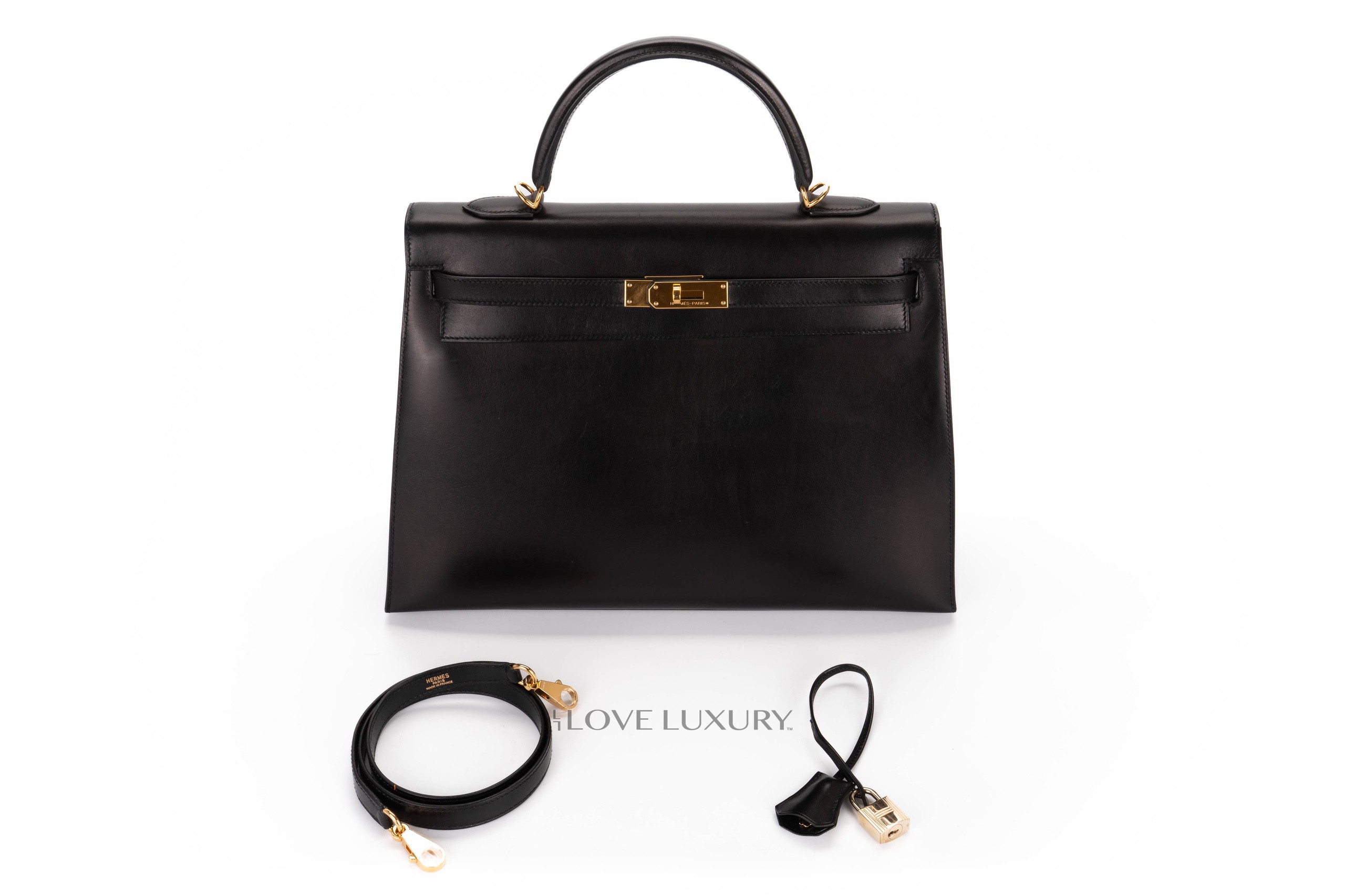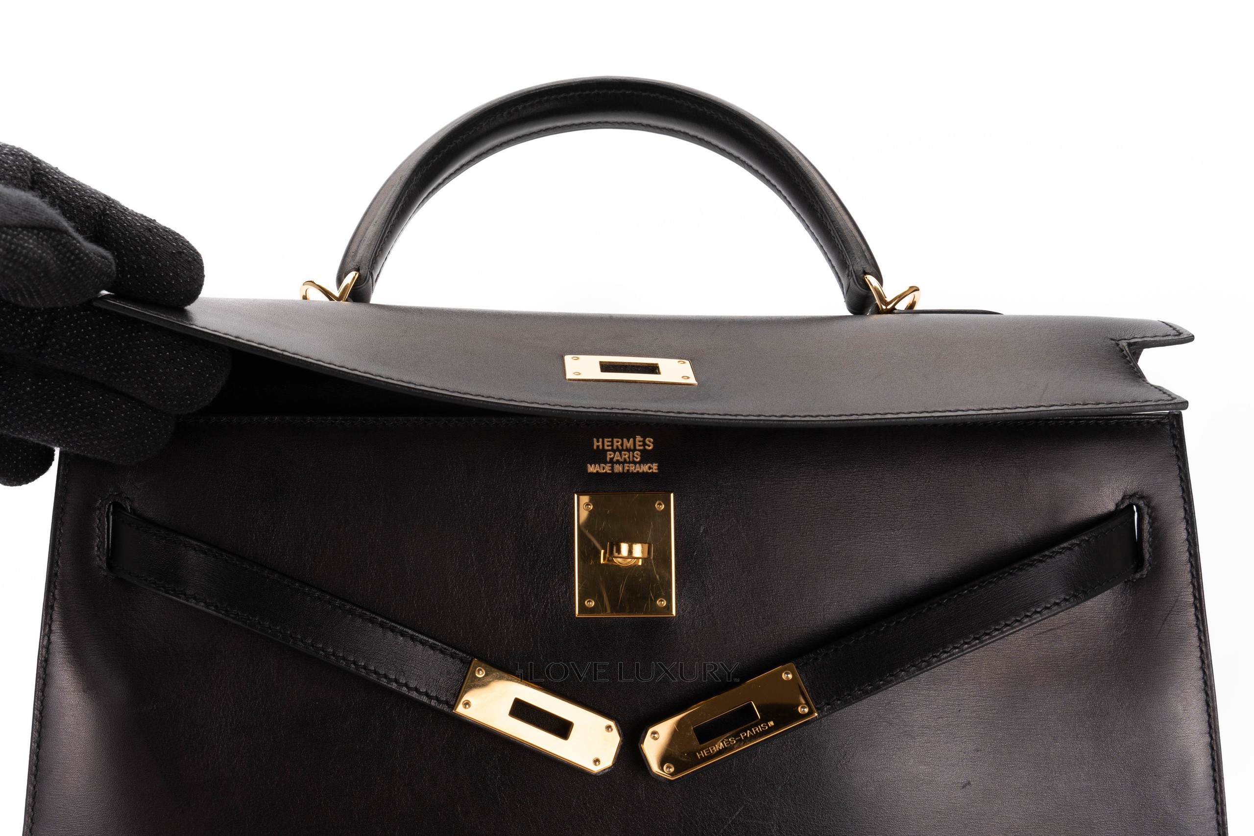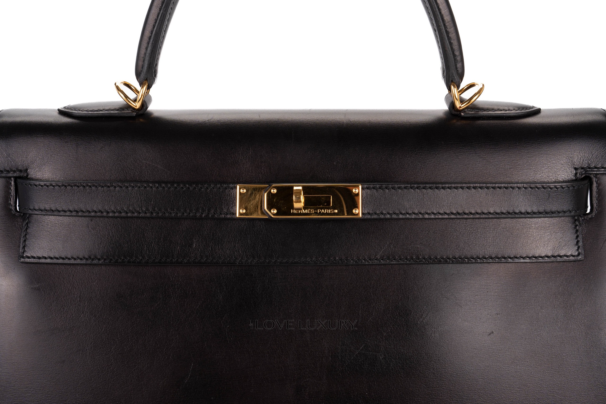 Hermès Vintage Kelly 35 Box Calf Leather Black Gold Hardware