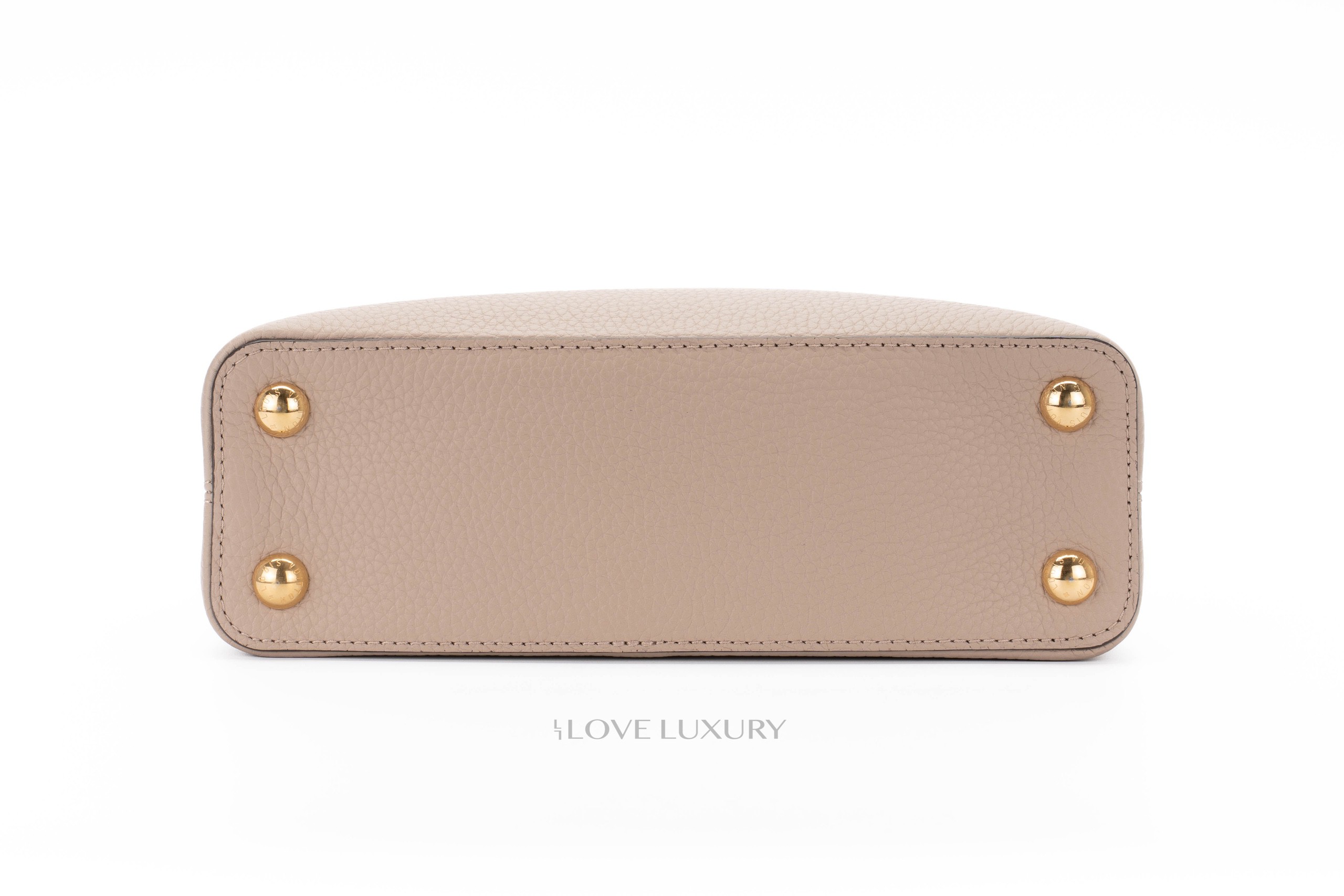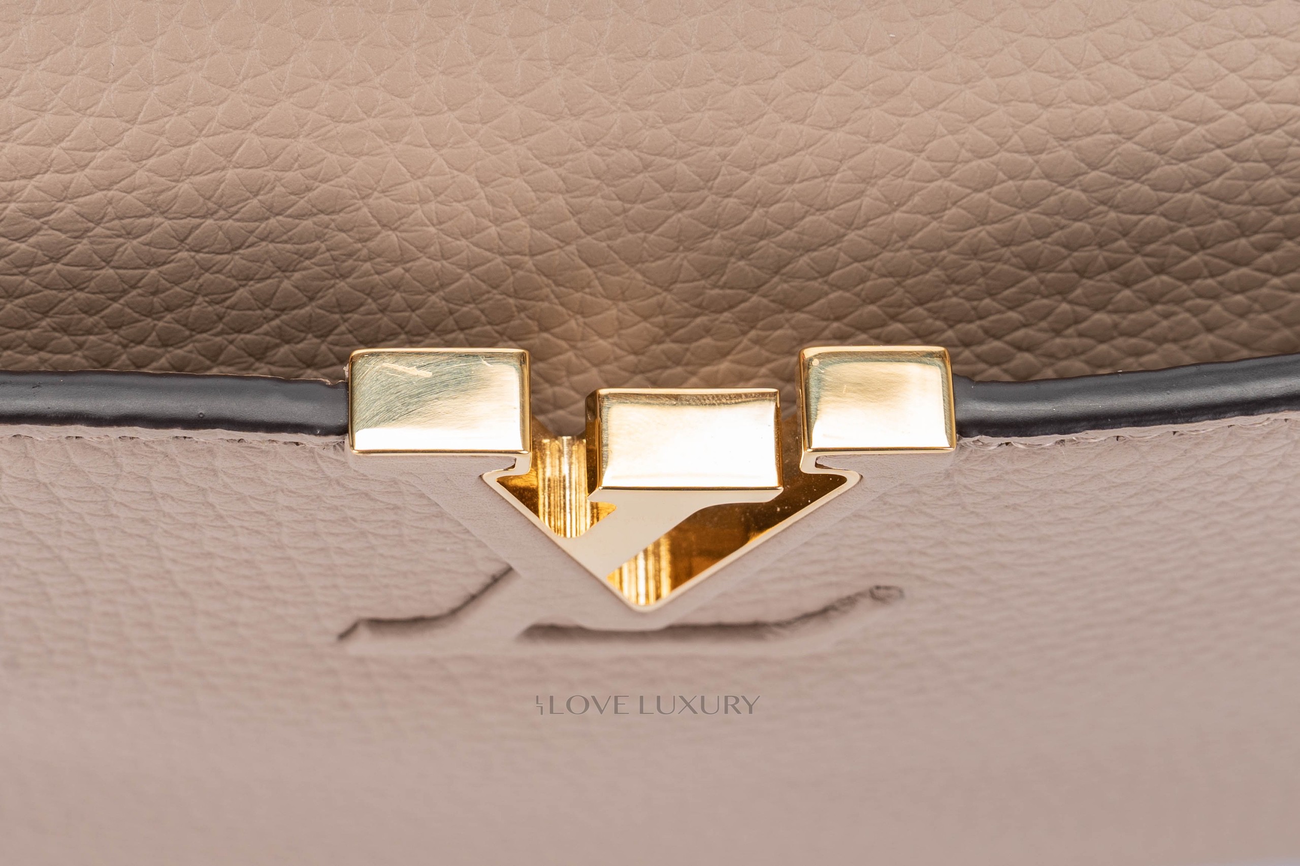 The Cappuchines has made a huge comeback in 2022. The bag itself features multiple internal sections and boasts a python top handle, but what is really fantastic about this bag is the removeable shoulder strap. This colour way is called Galet grey and is a beautifully neutral grey which can be worn with any outfit. The Galet grey is complimented with the light gold hardware. This is a medium size from the range and fits all of your daily essentials. This bag is lightly pre-loved but does show a scratch at the top of the LV logo this can be seen in the images, please take a close look.