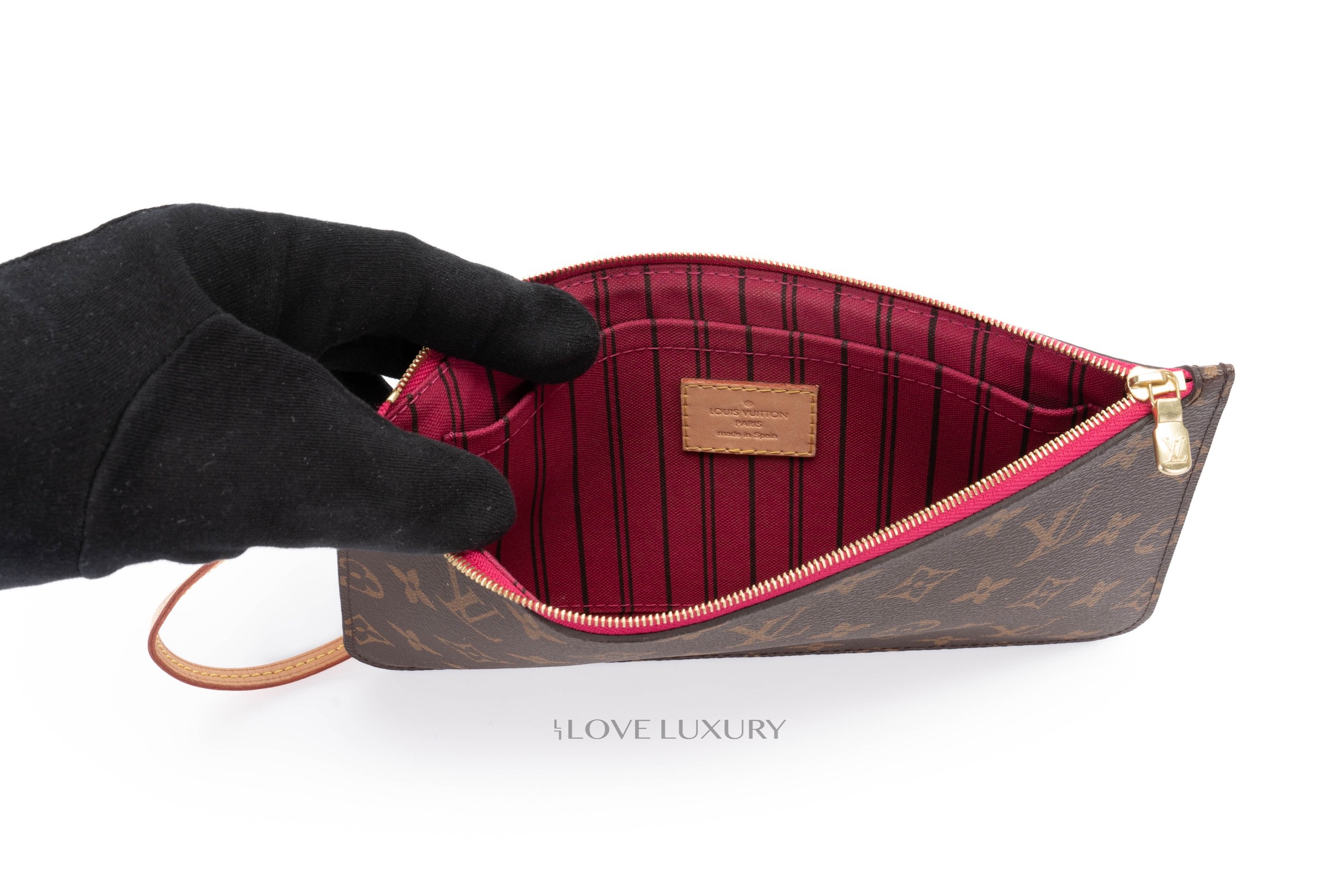 The Louis Vuitton Neverfull MM is a classic style produced by LV. An iconic bag instantly recogniseable as a strong and sturdy tote bag that is great for everyday wear as well as highly practical. The handle attachments were specifically designed to withstand large weights, making this the perfect work bag. It is even big enough to carry a 15 inch laptop. The LV monogram is a classic yet modern print offering a beautiful contrasting pink Pivoine lining and light tan vachette trim. This bag shows some signs of use especially on the vachette trim around the top. Please view images closely. The interior is immaculate. This bag comes with the wristlet, dustbag, receipt and authentication.