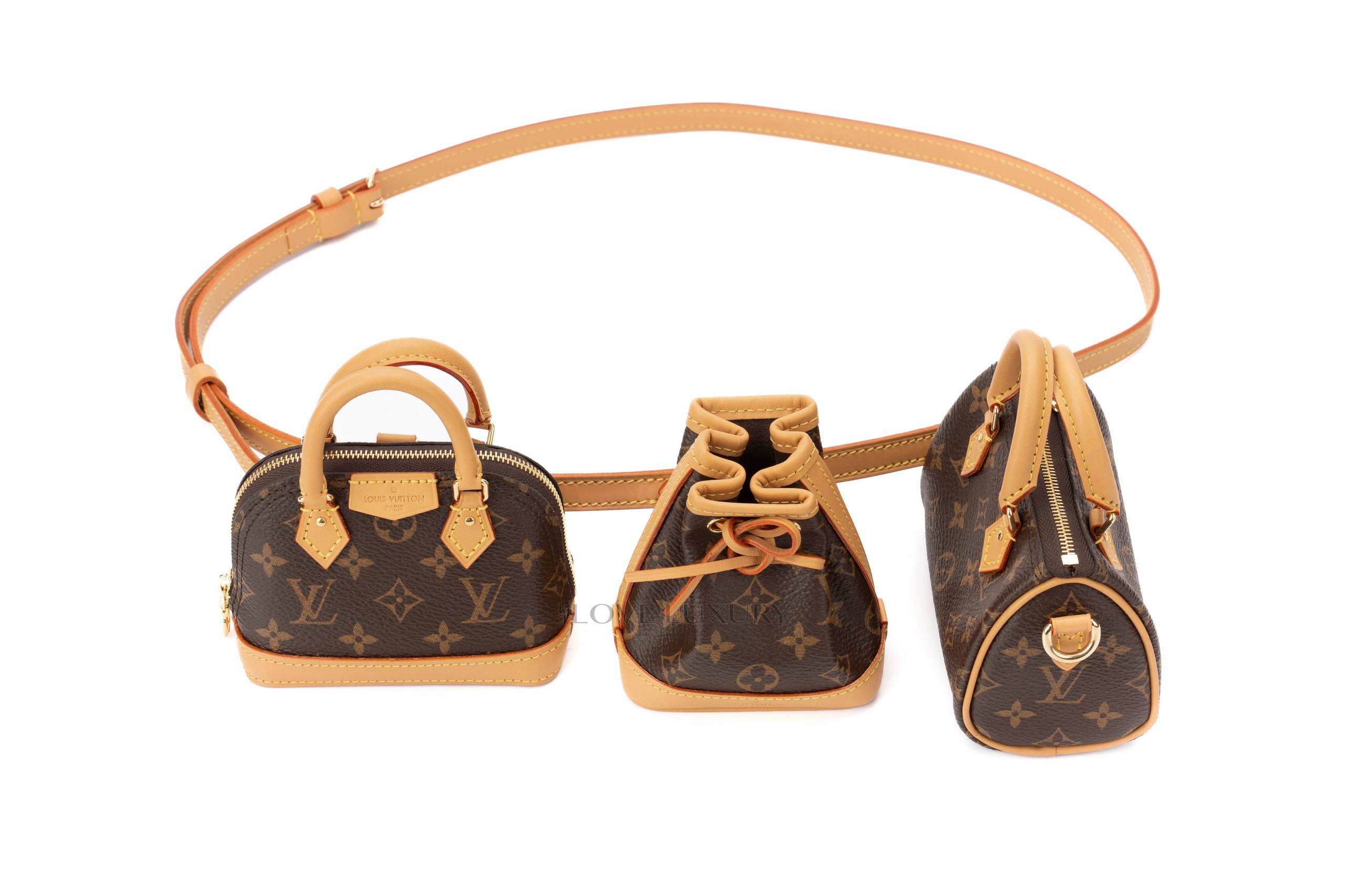 This is a very limited and highly sought-after LV set of mini bags. Originally seen on the LV runway models were worn in multiple ways. The strap is removable and adjustable and the drop is 48cm/18.9″ to 55cm/21.7″. This product is very rarely available. This Bag will reach you in brand new condition.