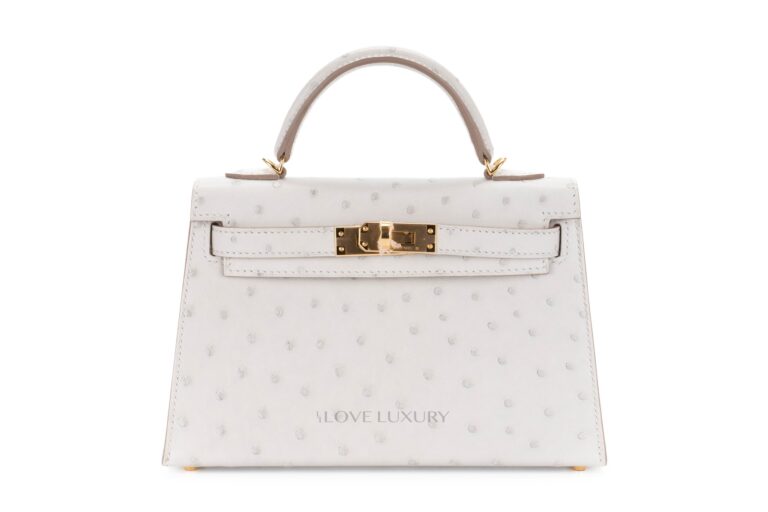 Hermès Mini Kelly ii Ostrich Gris Perle Gold Hardware