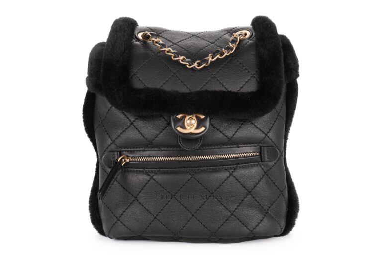 Chanel Shearling Lambskin Backpack Black Quilted CC
