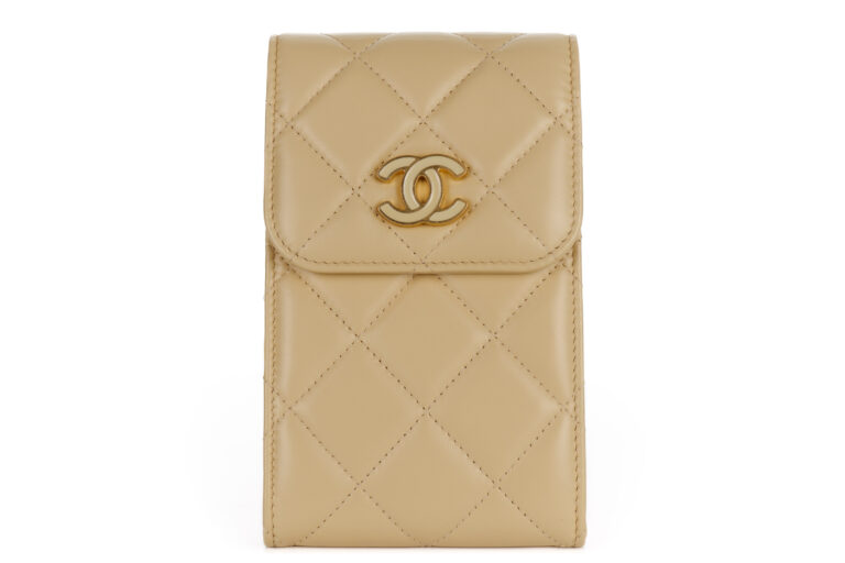 Chanel Phone Holder Chain Cream Lambskin Gold Hardware