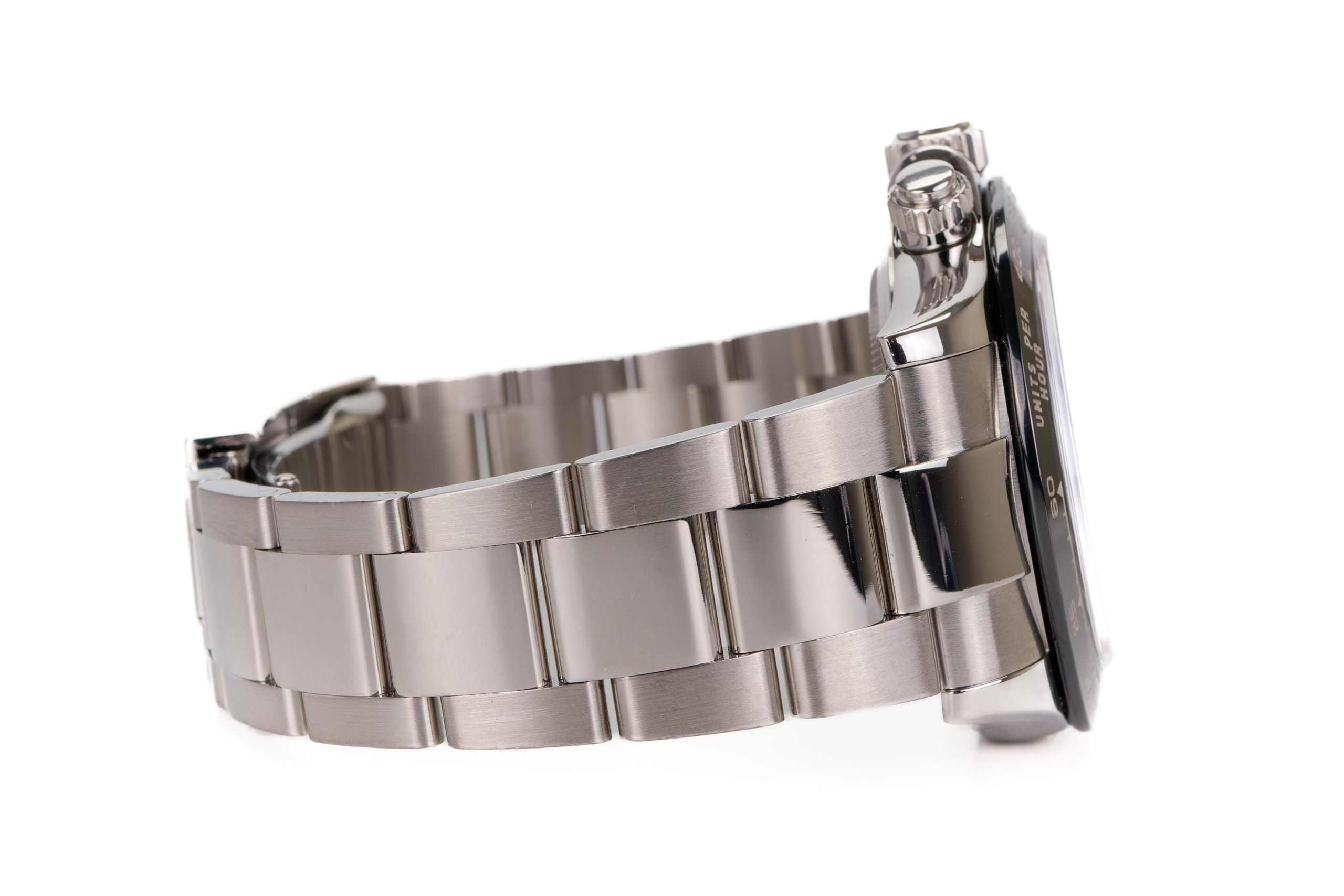 Bezel: Black monobloc Cerachrom bezel in ceramic with engraved tachymetric scale