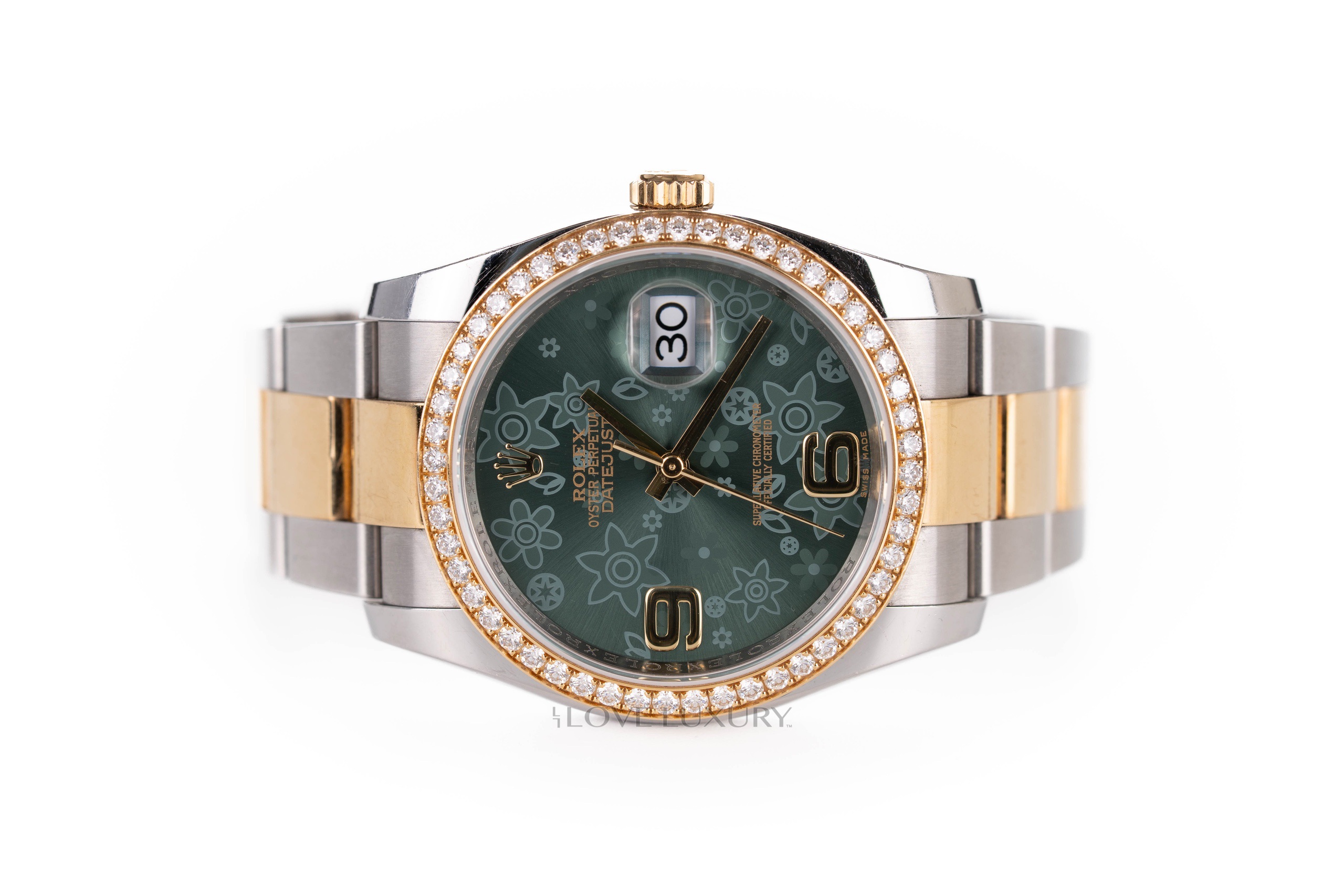Rolex Datejust 36 Green Florar Dial Factory Diamond Bezel Two Tone Yellow Gold & Steel – 116243