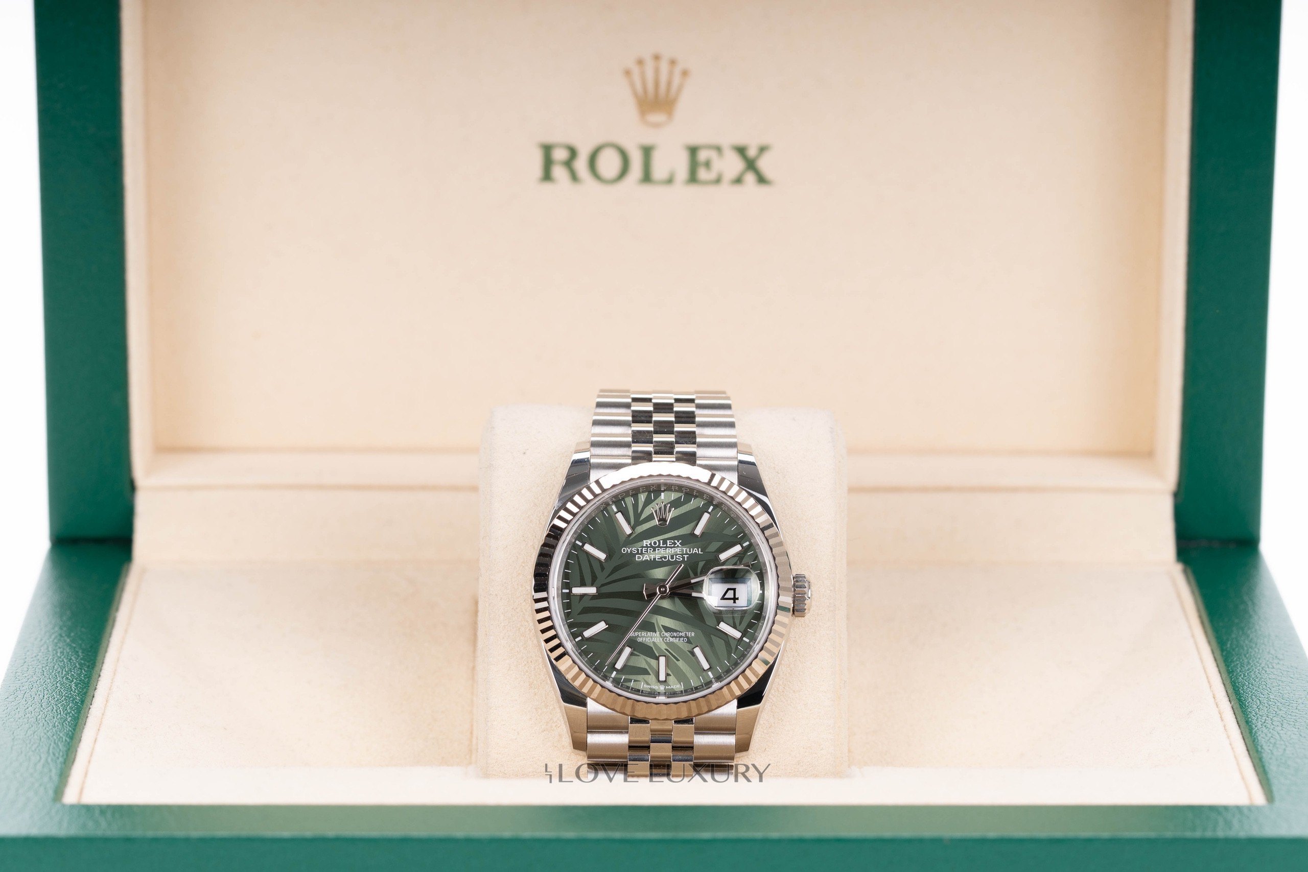 Rolex Datejust 36mm Oystersteel & White Gold Palm-Motif Dial – ref 126234