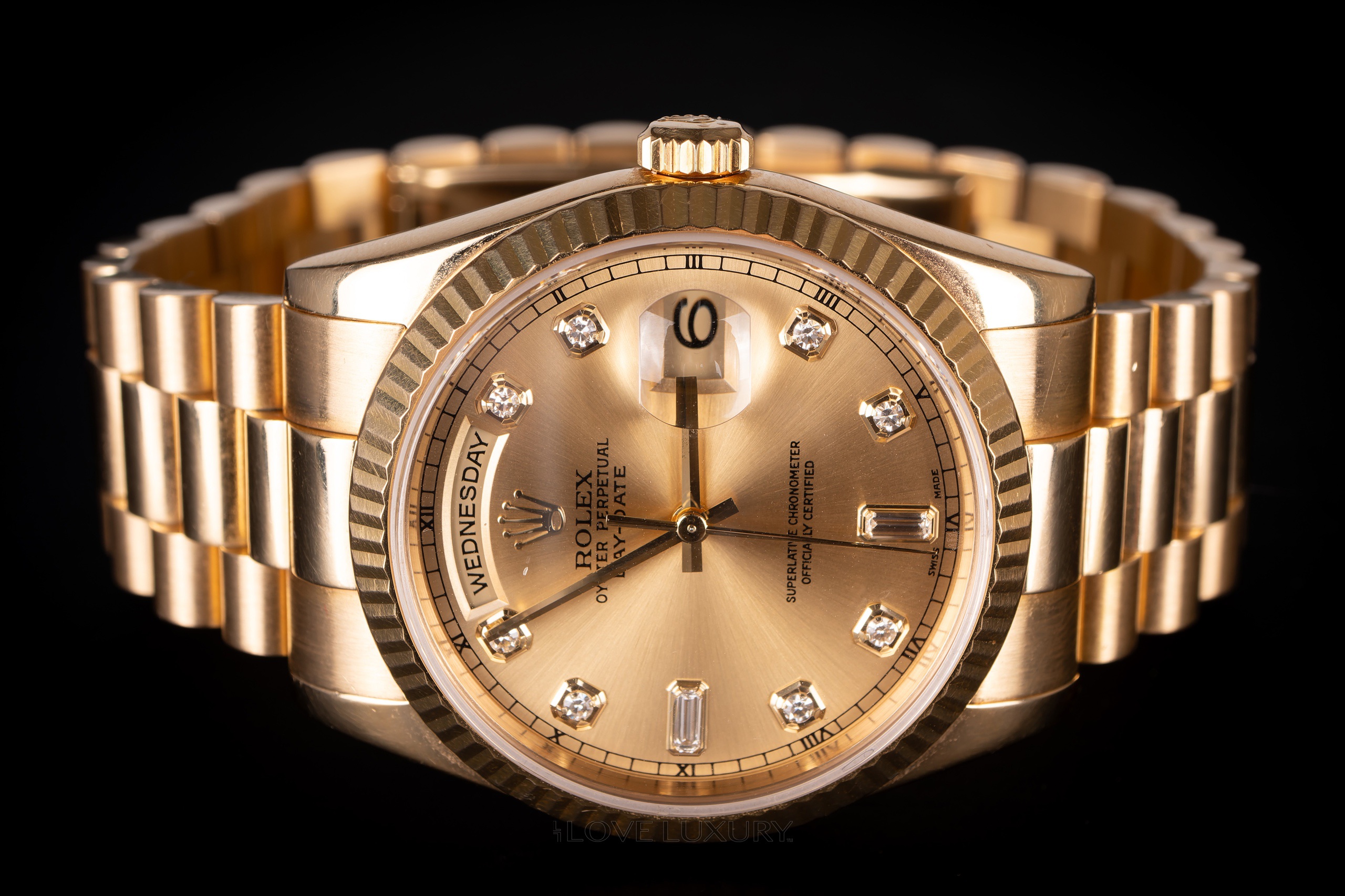 Rolex Day-Date 36 Yellow Gold Diamond Dial President – 118238