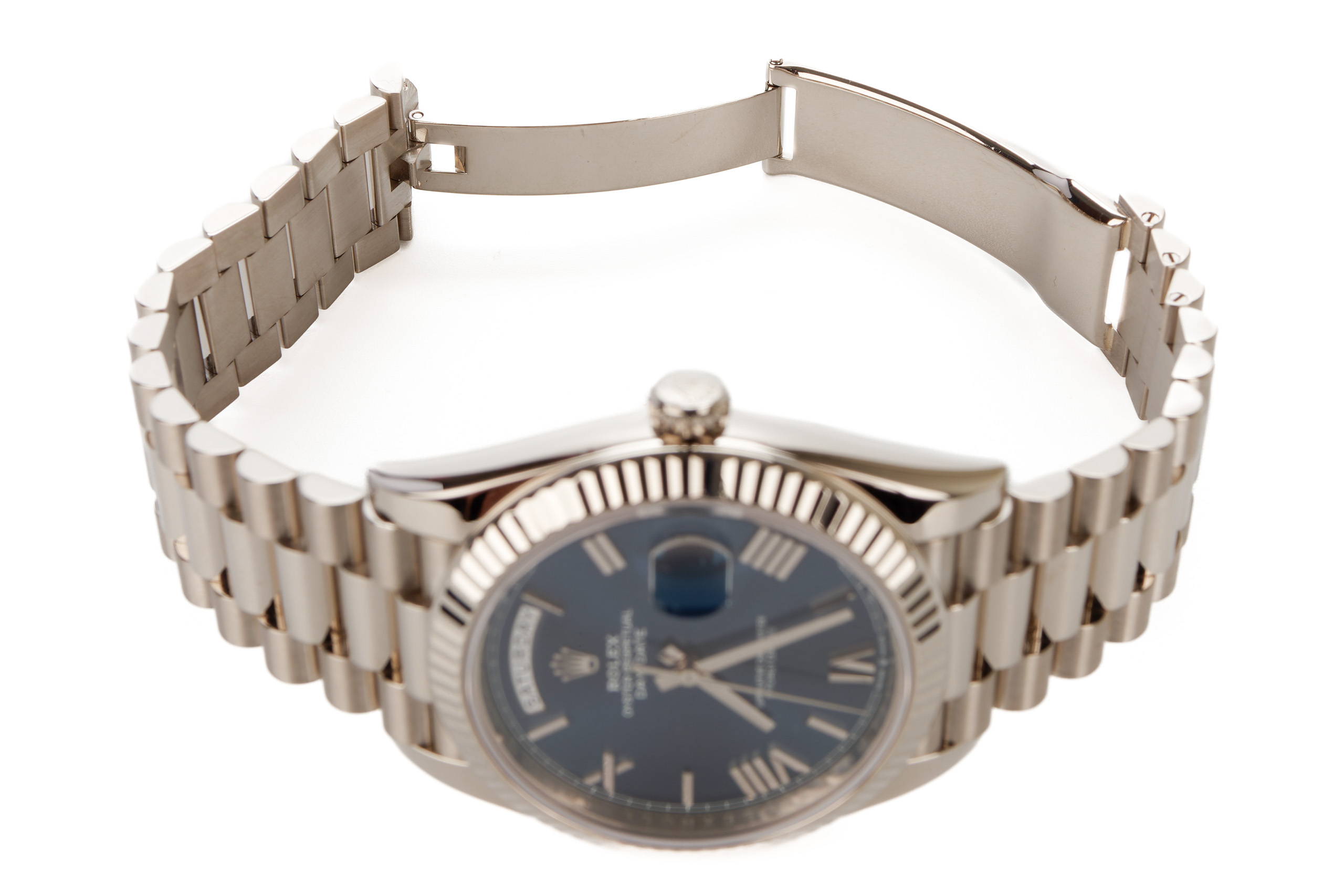 Rolex Day Date 40 White Gold Blue Dial Fluted Bezel 228239