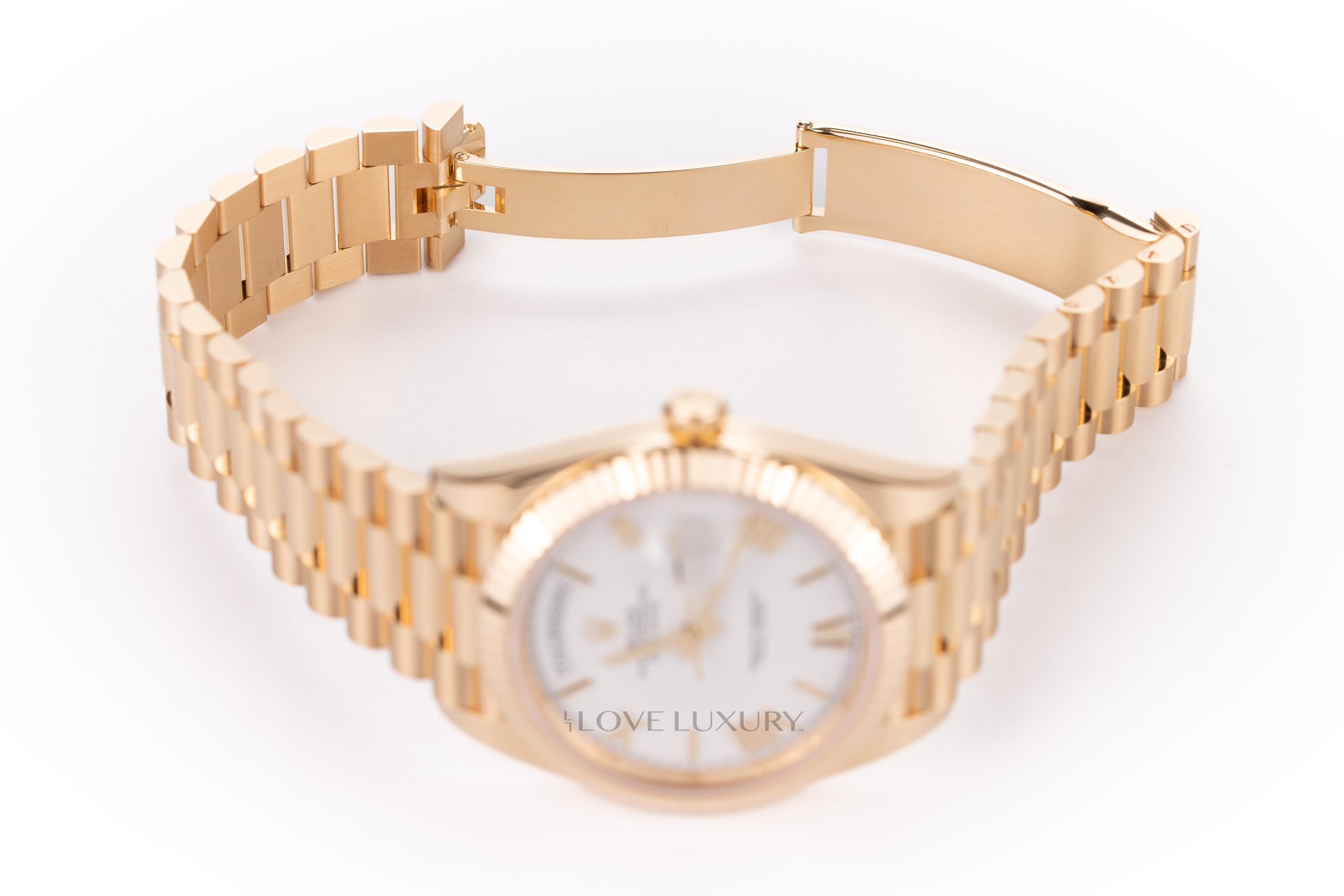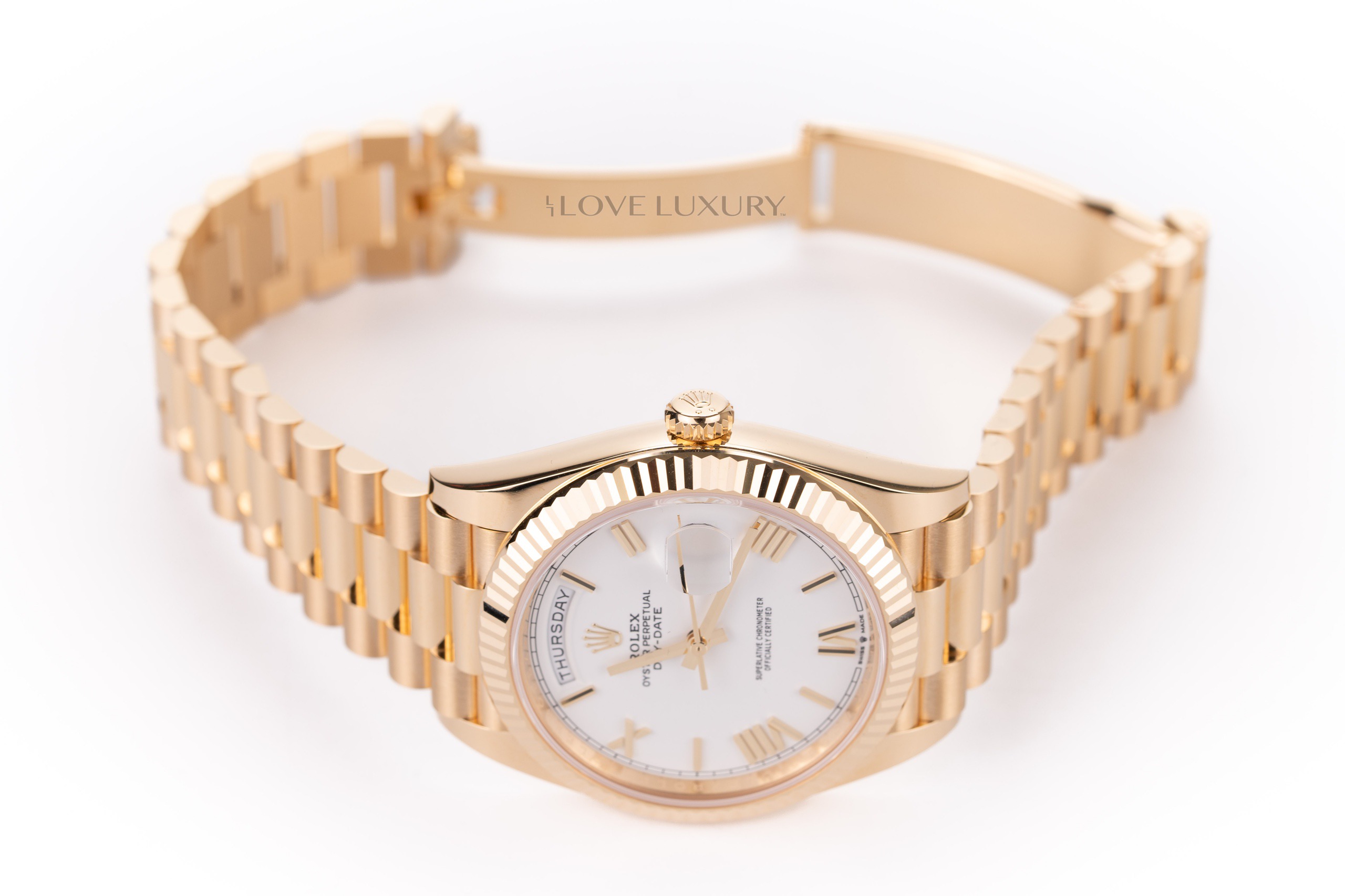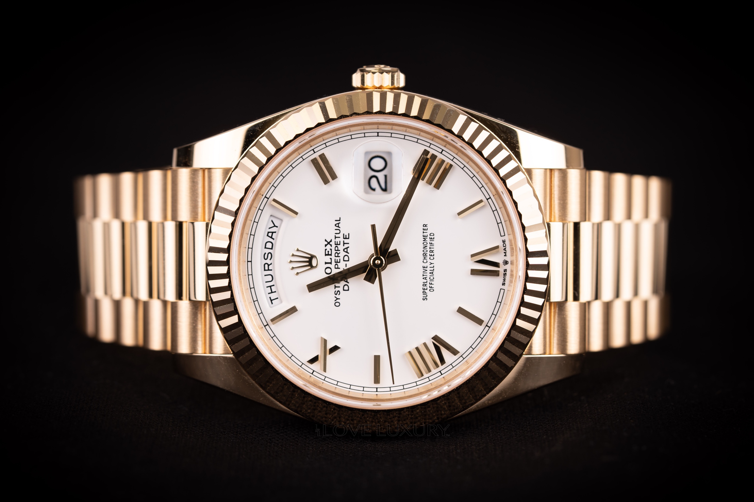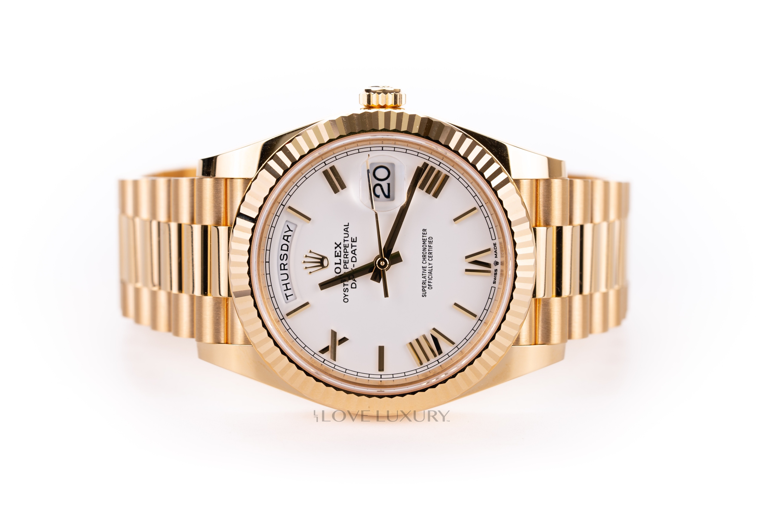 Rolex Day-Date 40mm Yellow Gold White Roman Dial – 228238