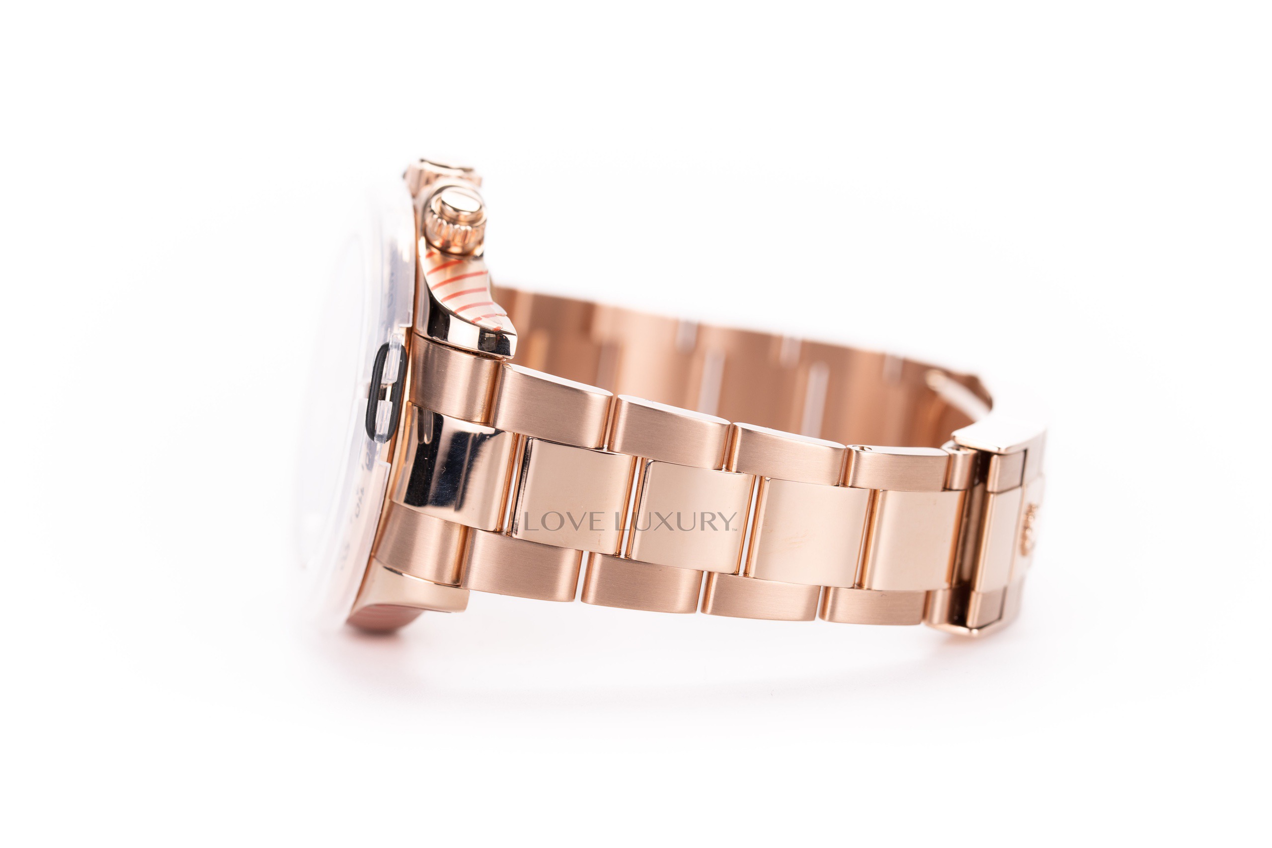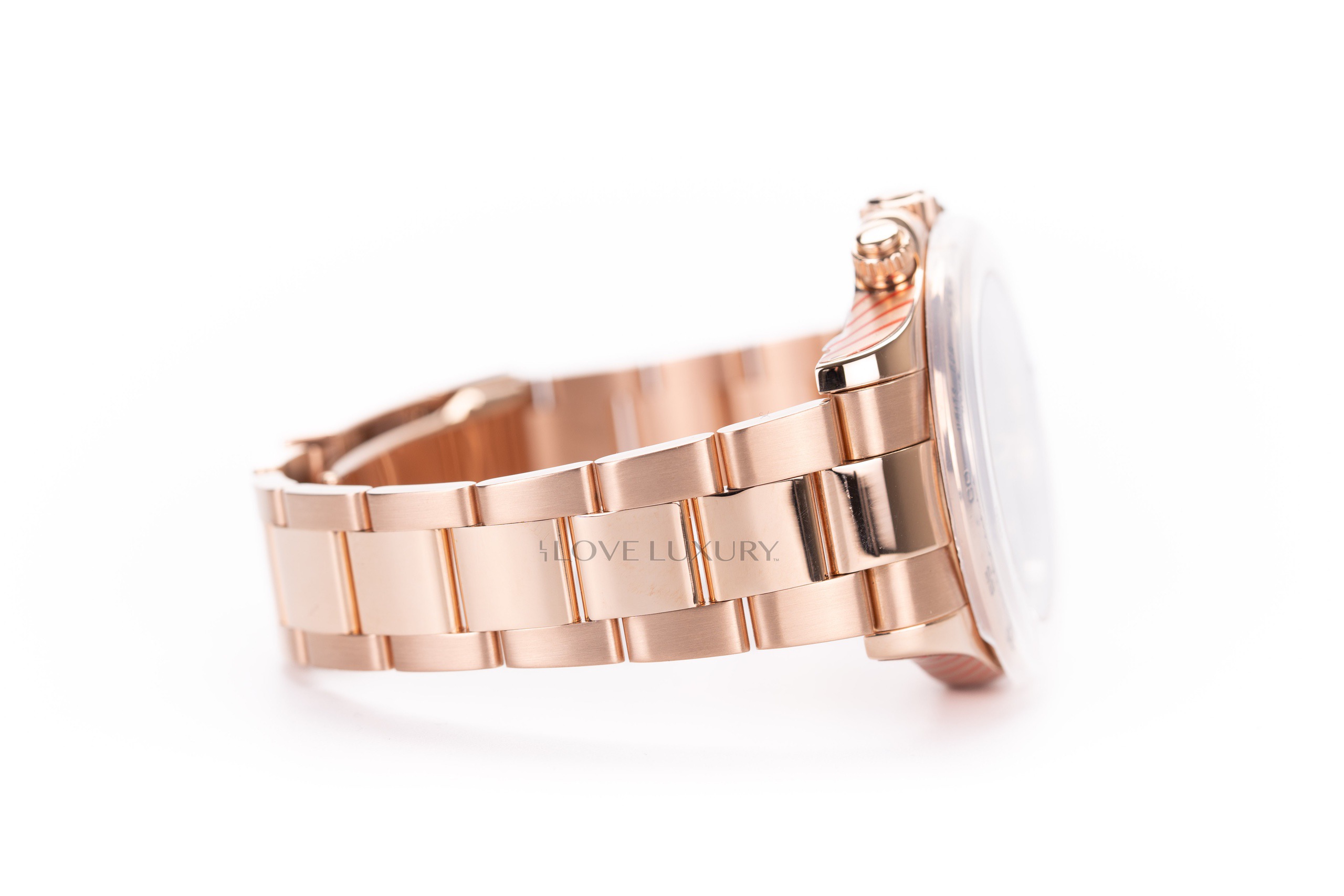 Bracelet material: Rose gold , Oyster, flat three-piece links