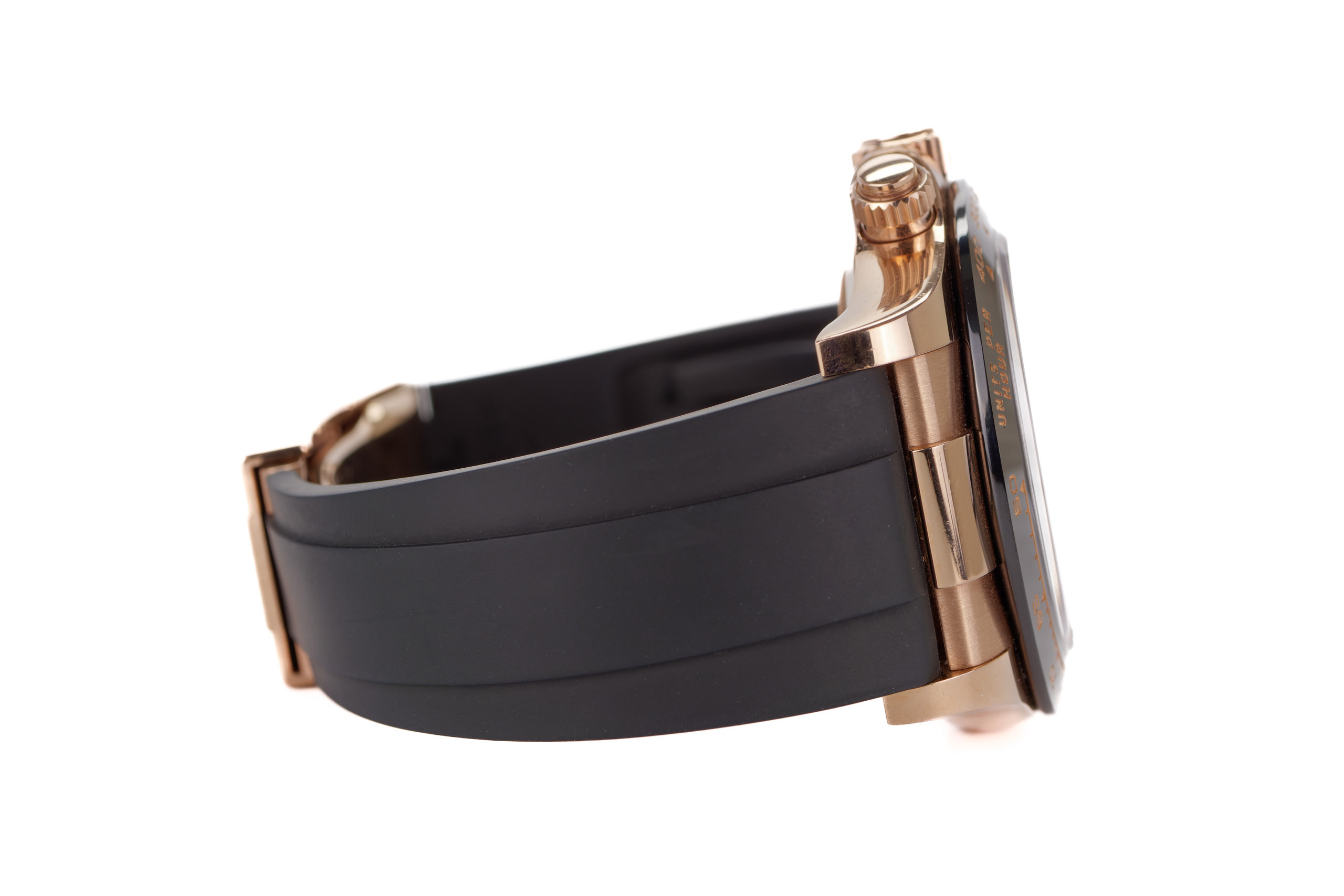 Bezel: Fixed, with engraved tachymetric scale, in 18 ct Everose gold