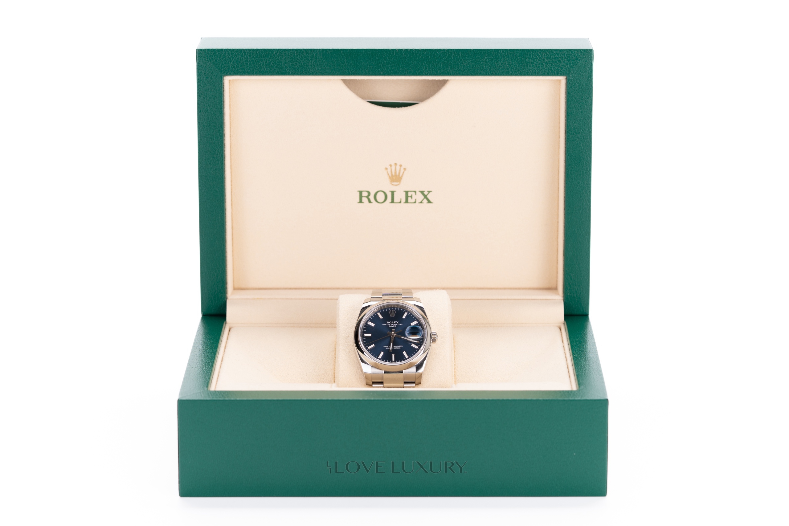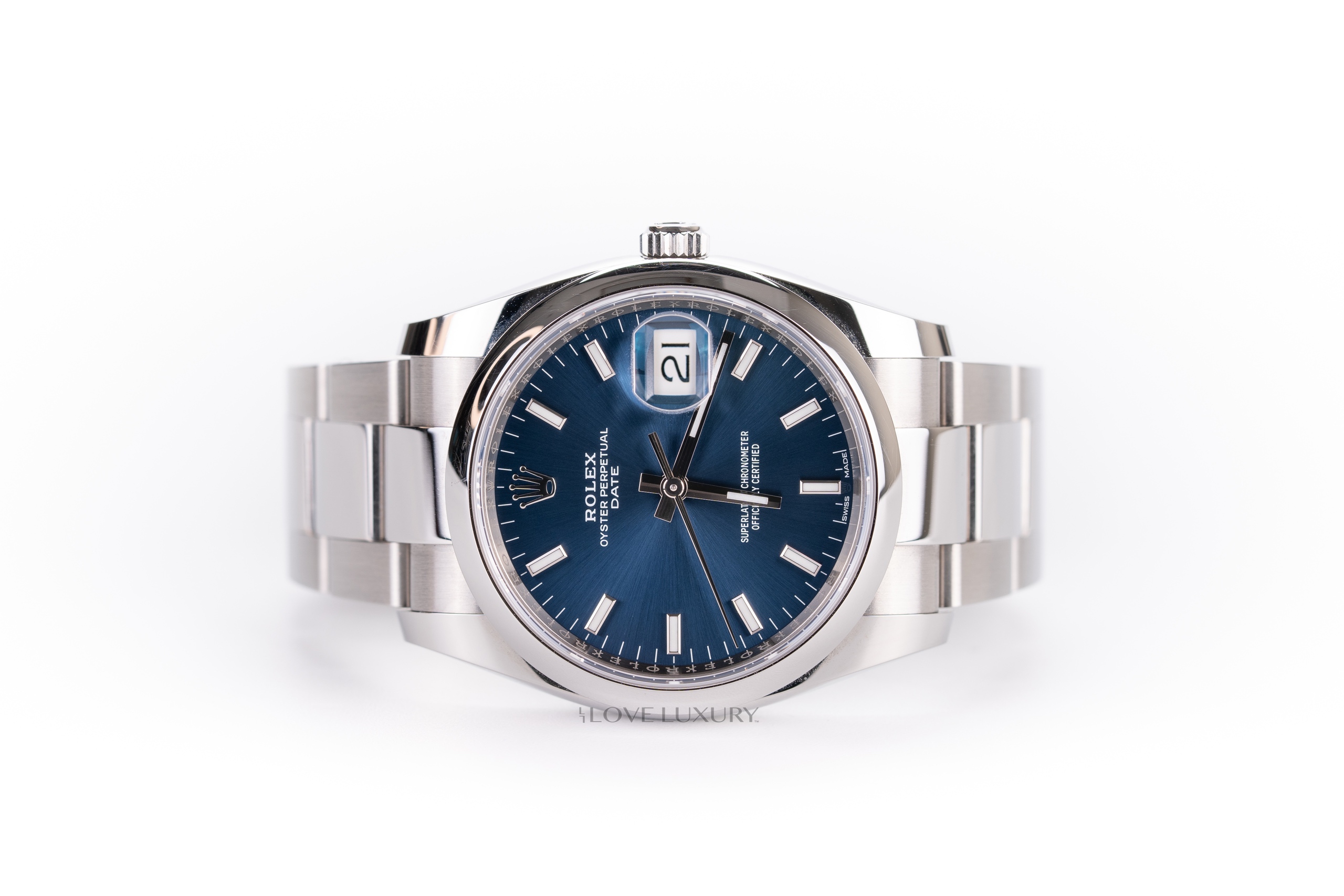 Rolex Oyster Perpetual Date 34mm Blue Dial Steel – ref 115200 / 2019 Mint Condition