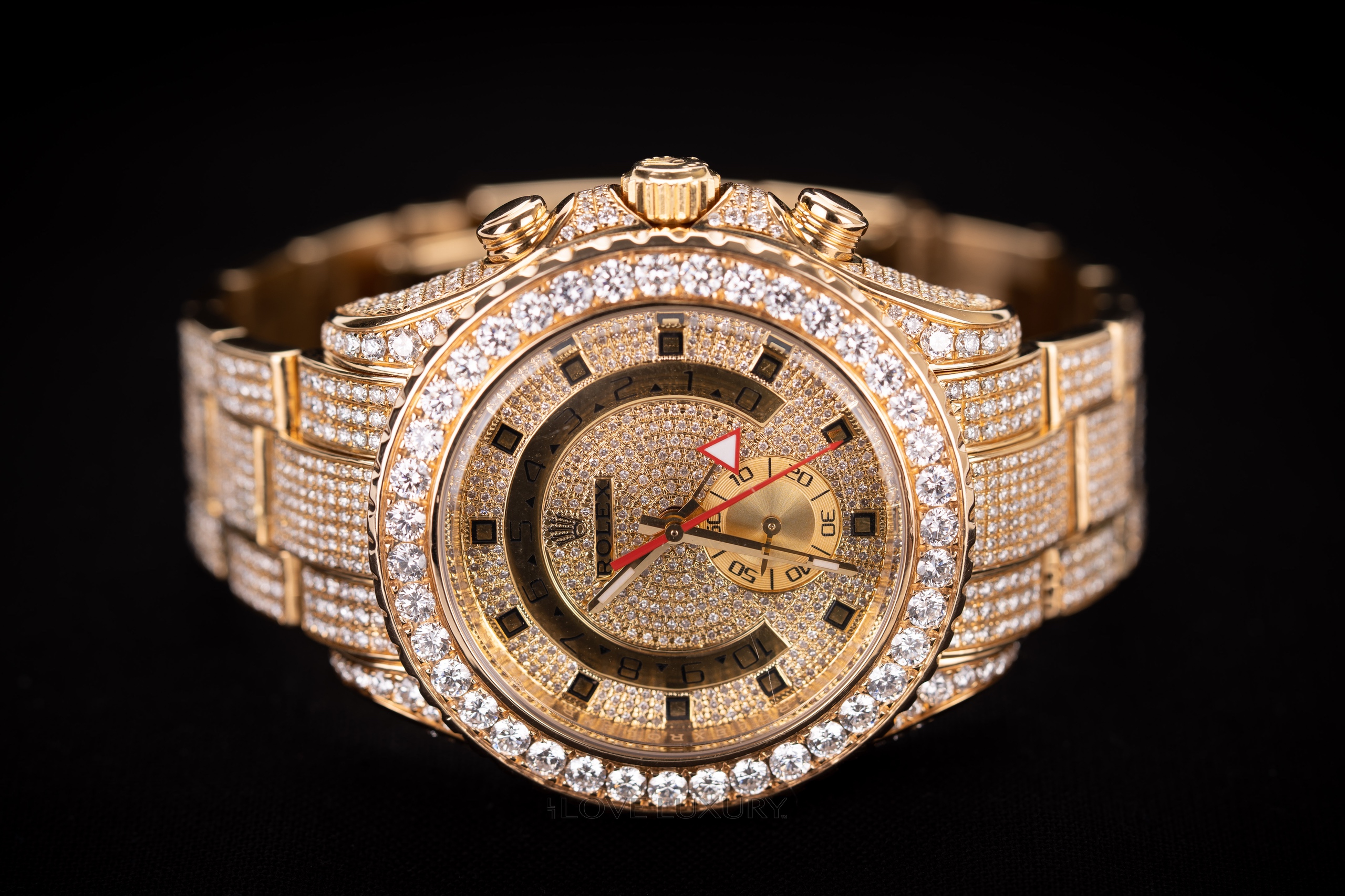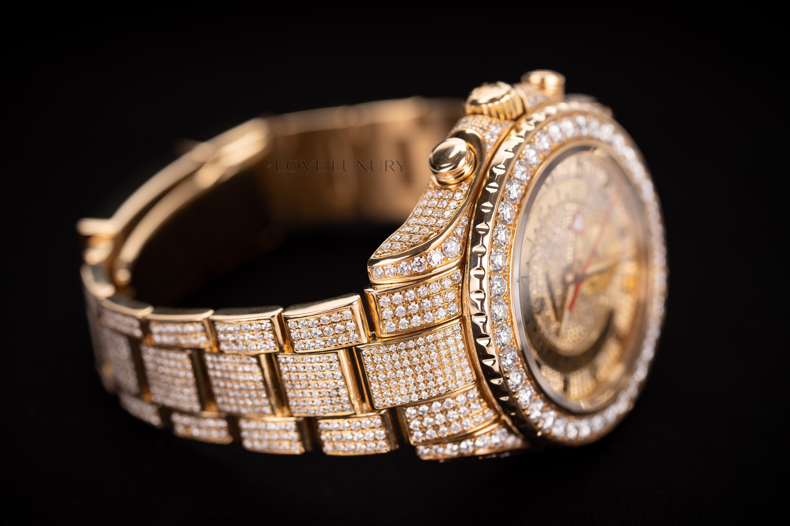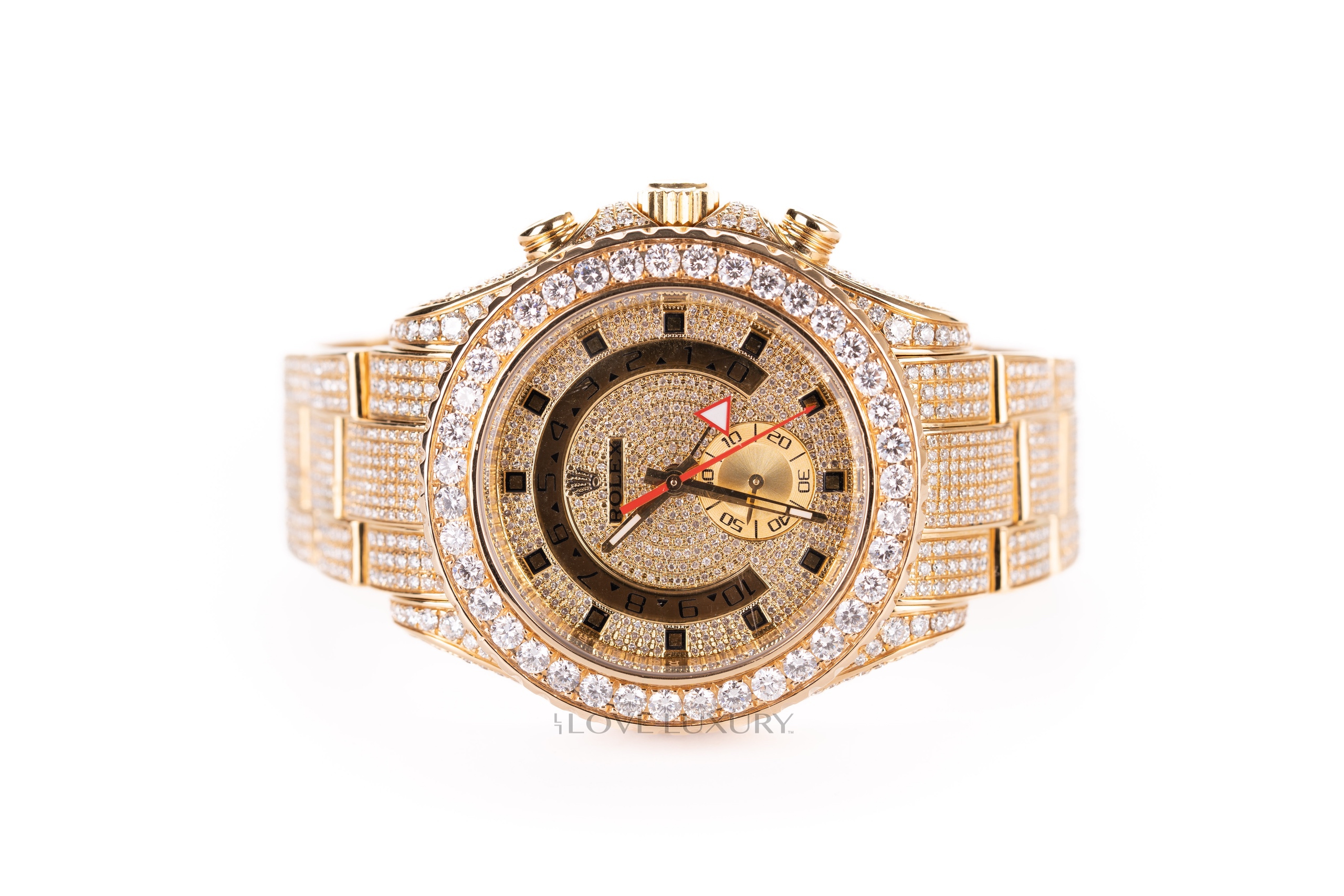 Rolex Sky-Dweller Yellow Gold 42mm Custom Full Iced Out Diamonds – ref 326938