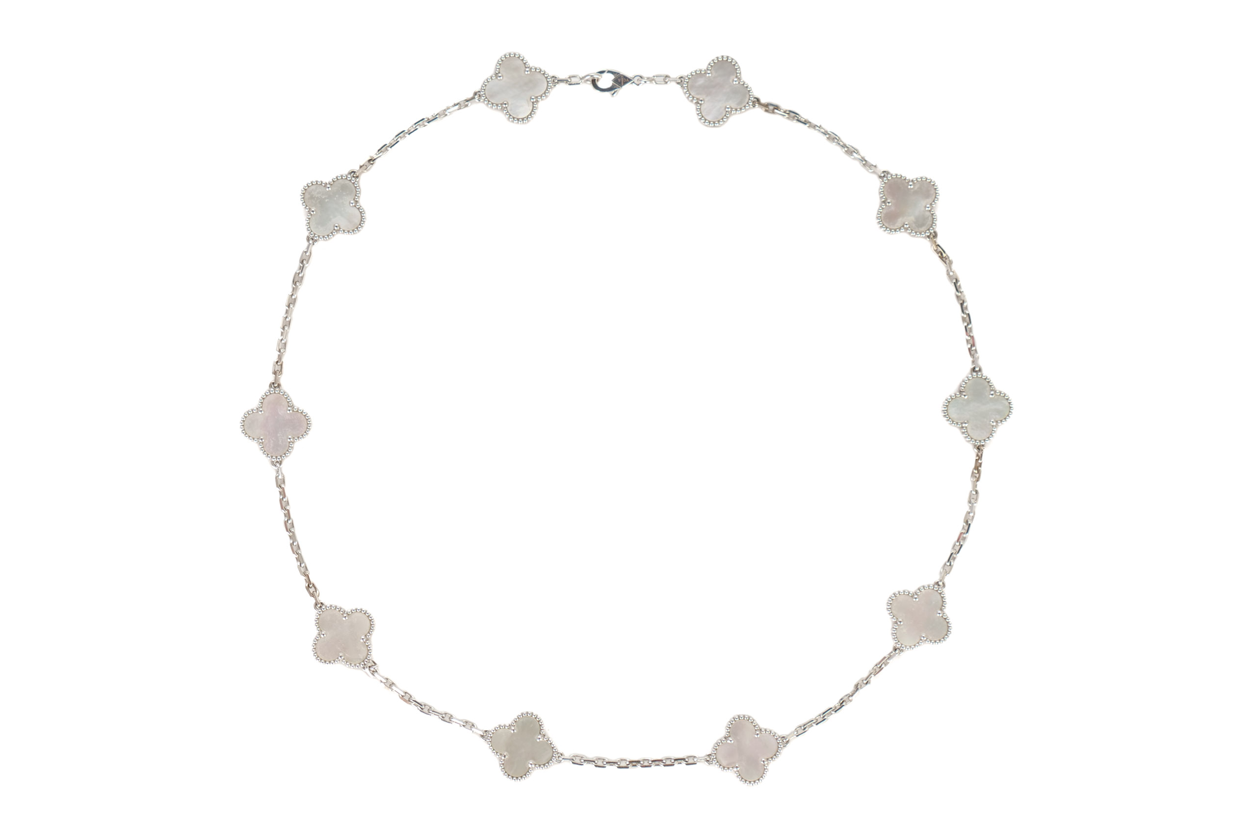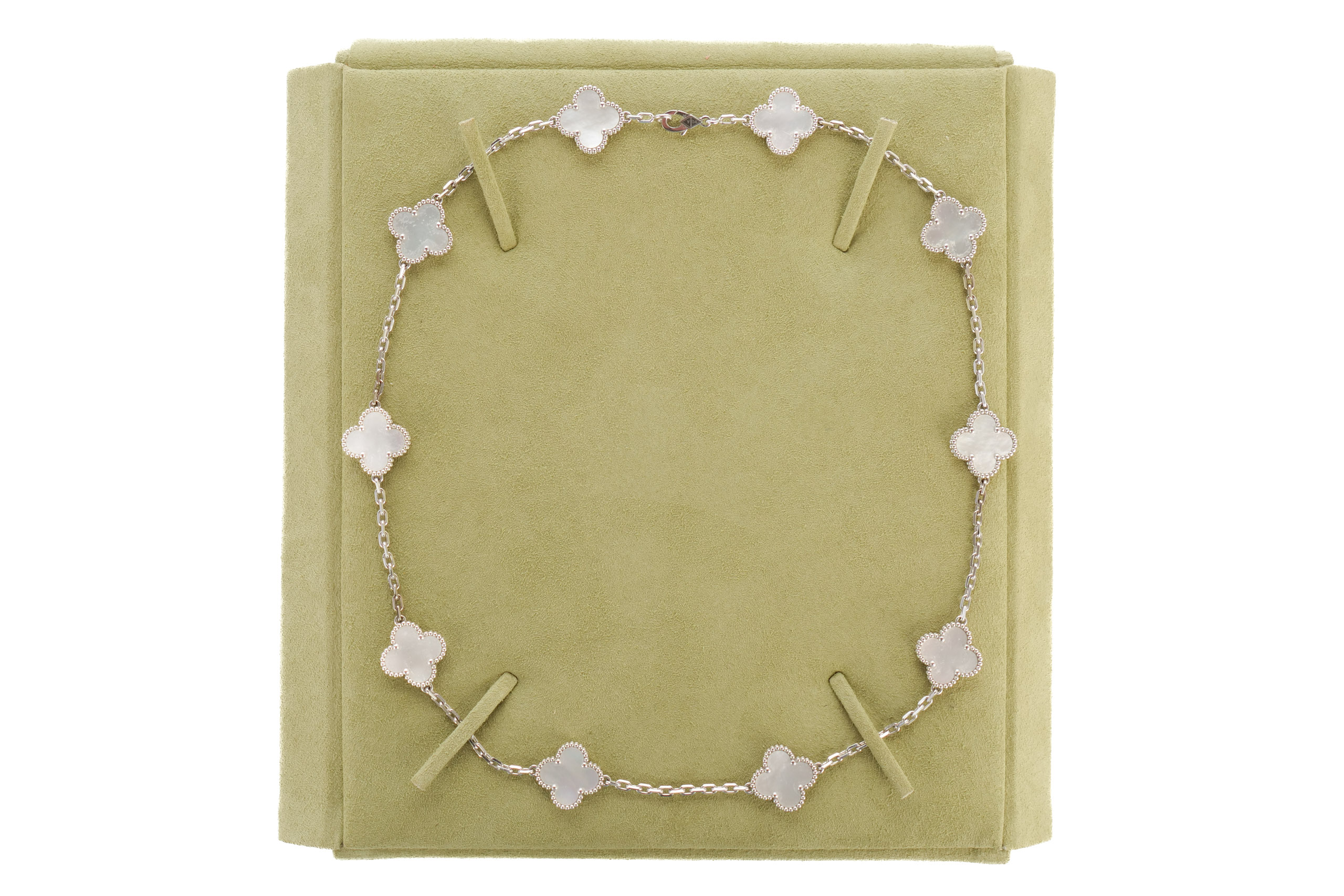 Van Cleef and Arpels Vintage Alhambra Mother of Pearl 10 Motifs White Gold Necklace / 2022, Preloved