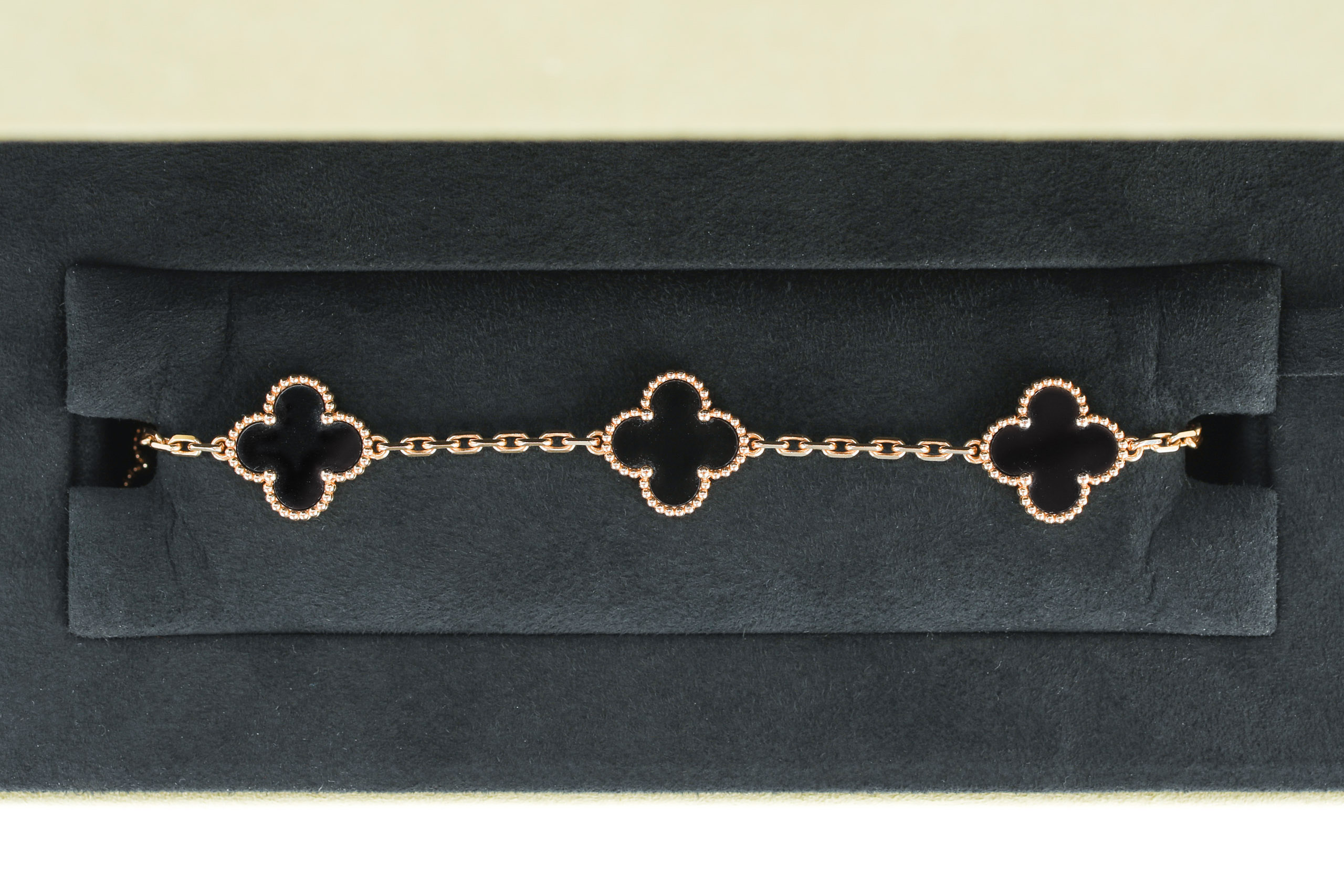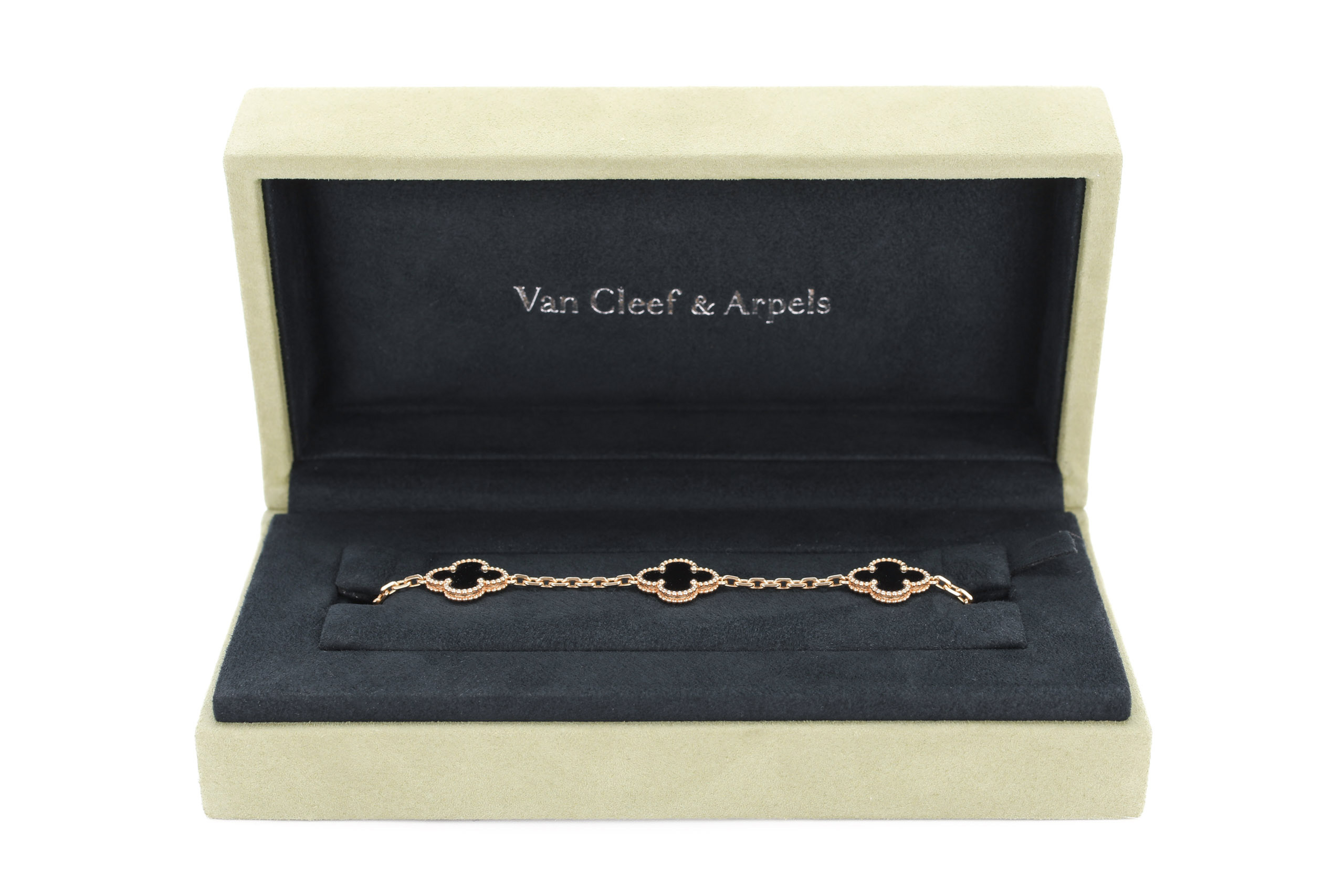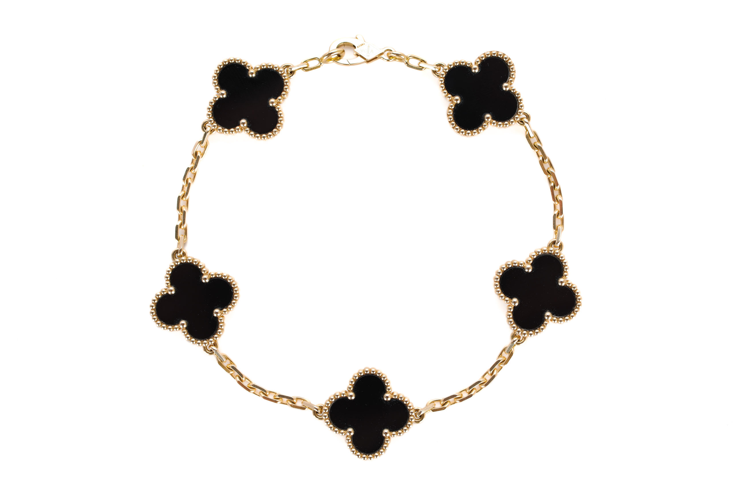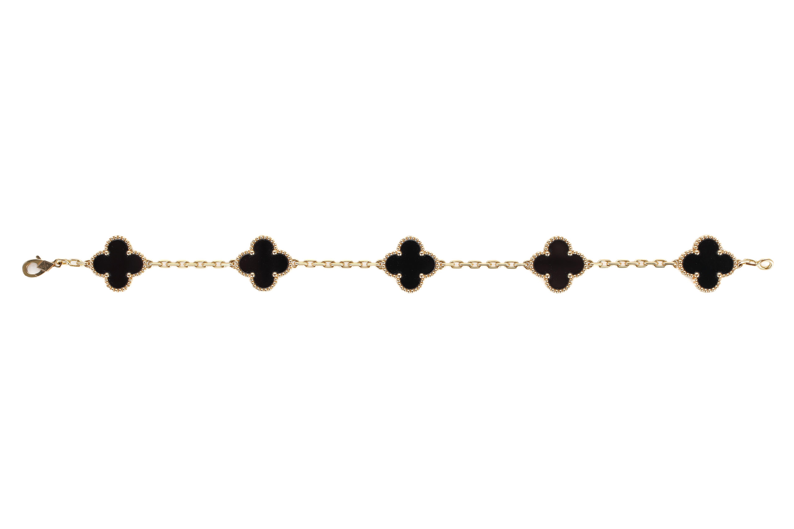 Van Cleef and Arpels Vintage Alhambra Onyx Yellow Gold 5 Motifs Bracelet / 2024, Preloved