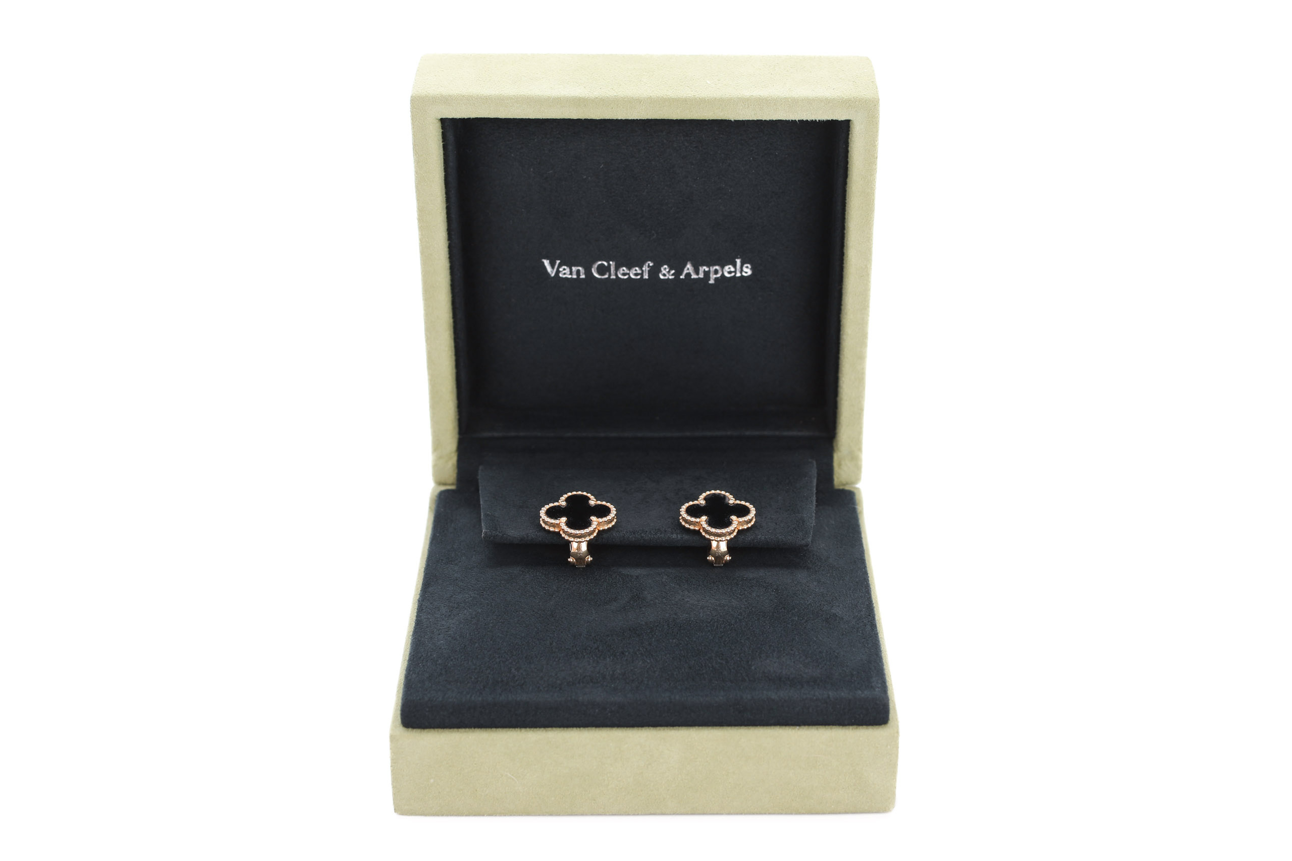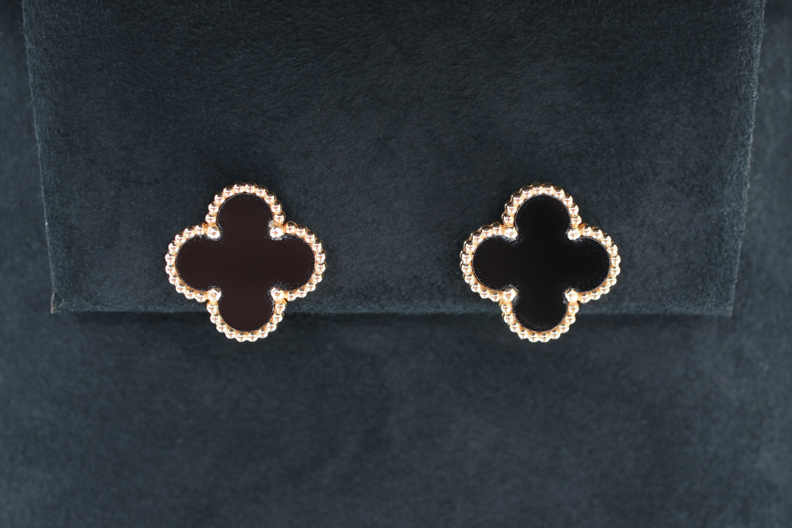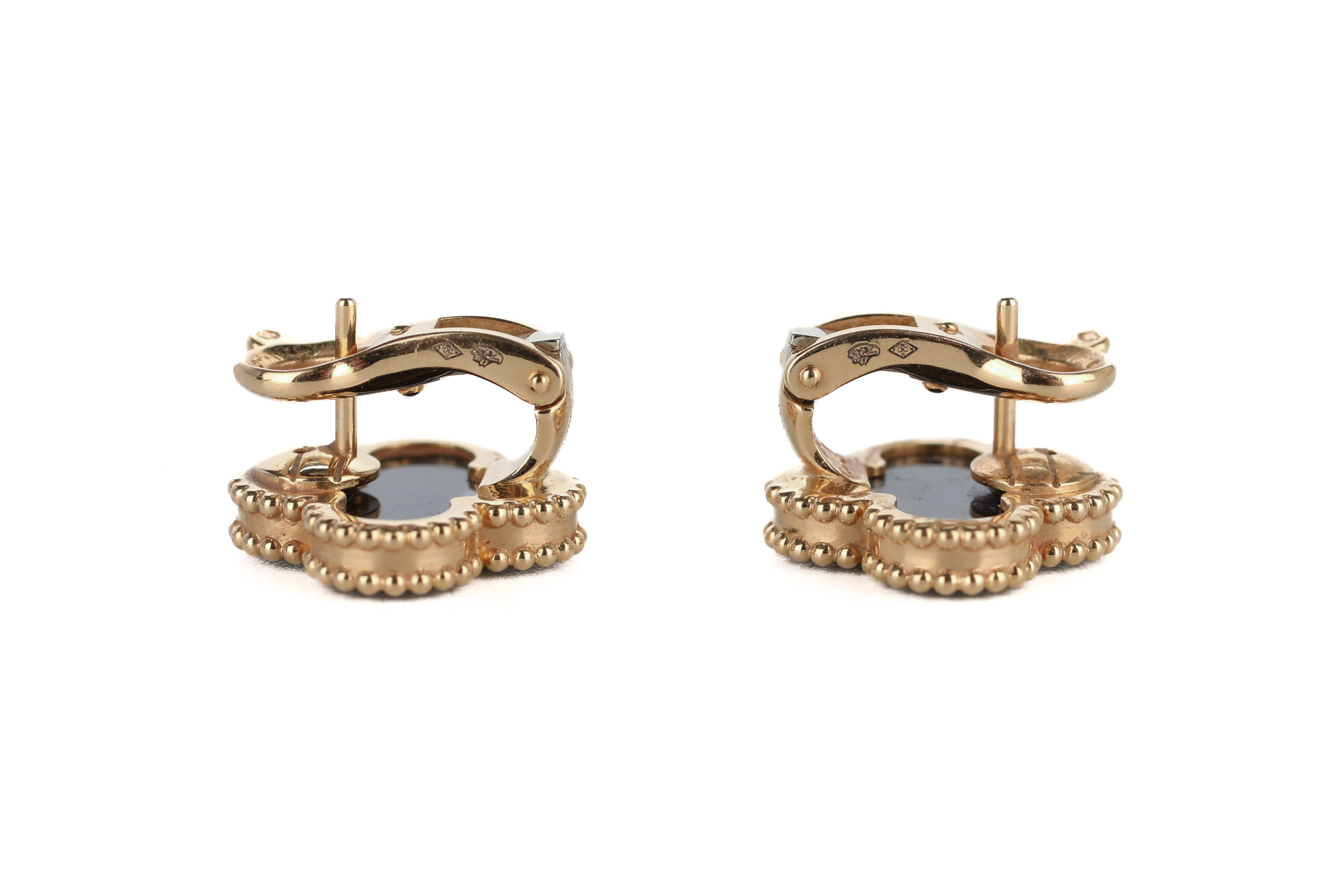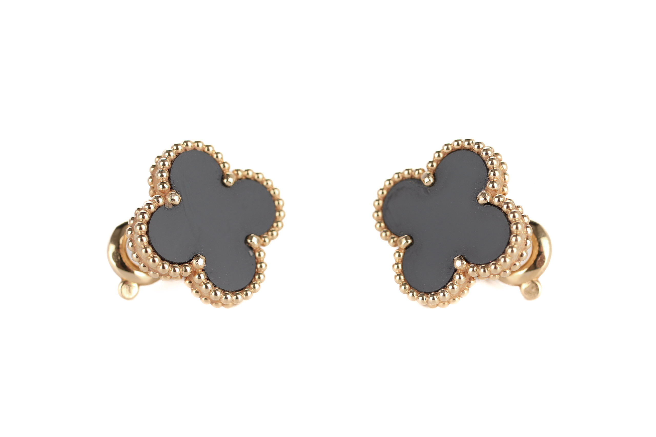 Van Cleef and Arpels Vintage Alhambra Onyx Yellow Gold Stud Earrings / 2024, Preloved