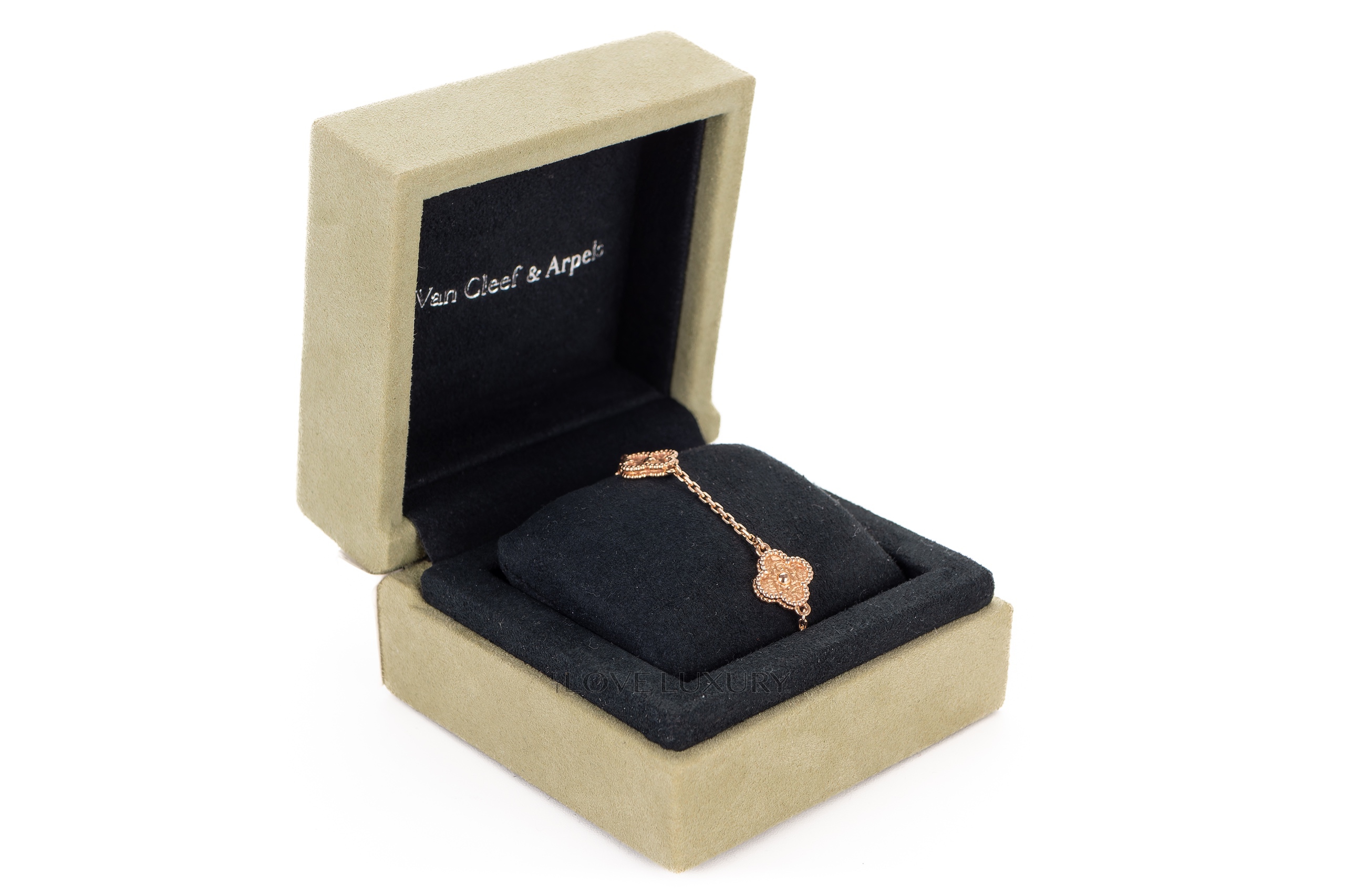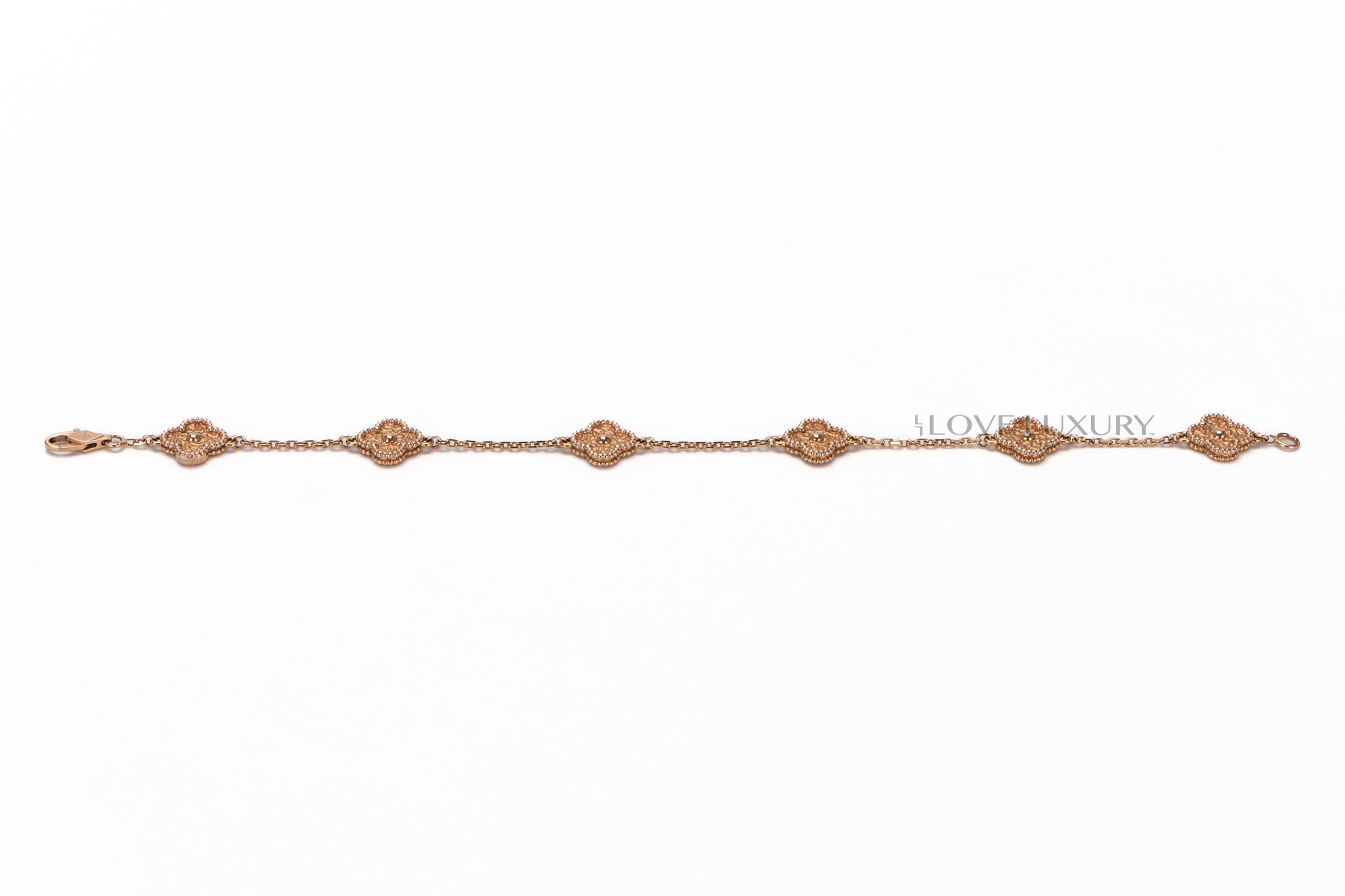Van Cleef & Arpels 6 Sweet Alhambra Hammered Rose Gold Bracelet