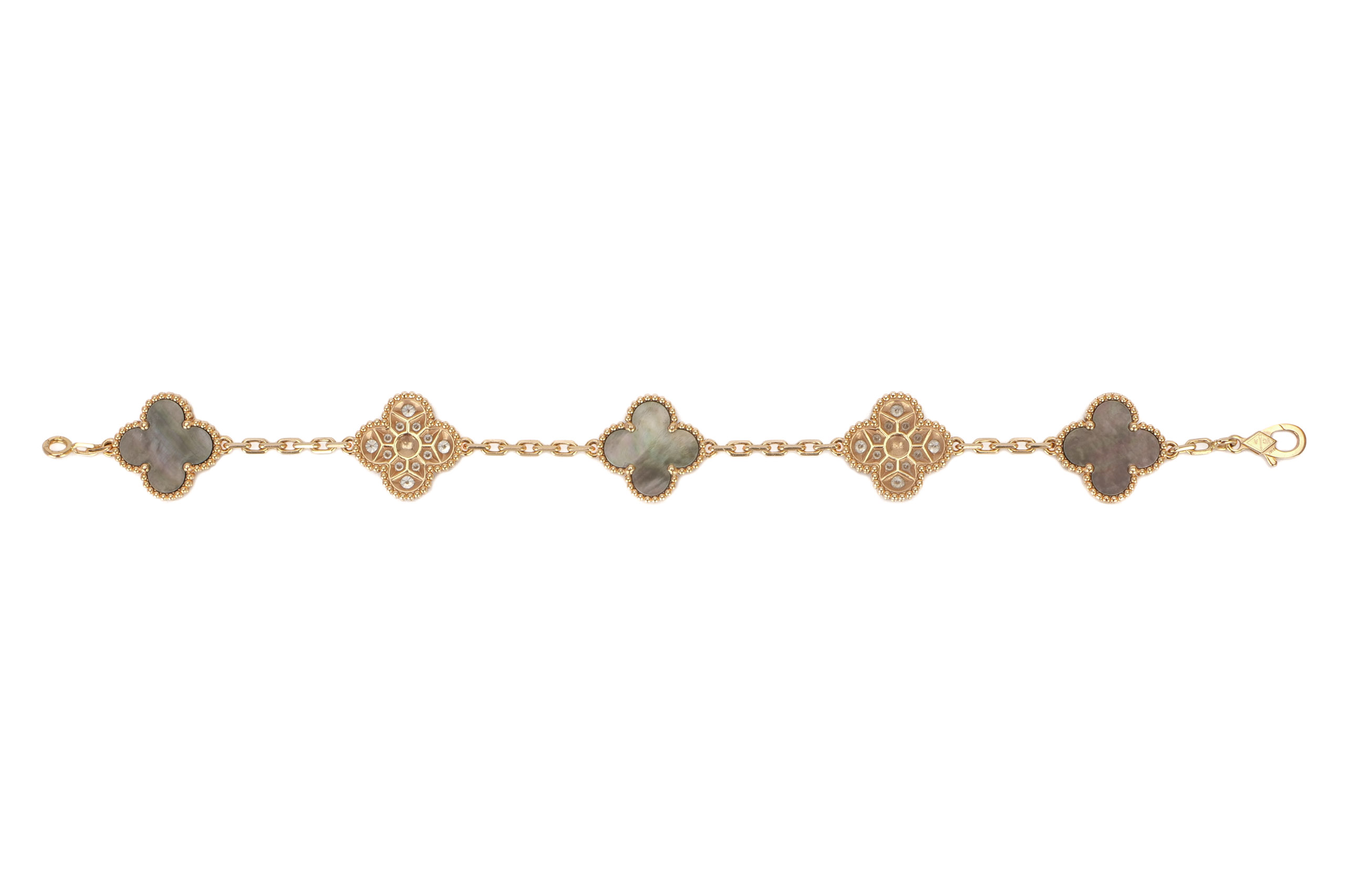 Van Cleef & Arpels Alhambra Grey Mother of Pearl and Diamond 5 Motifs Bracelet / 2023, Excellent Preloved