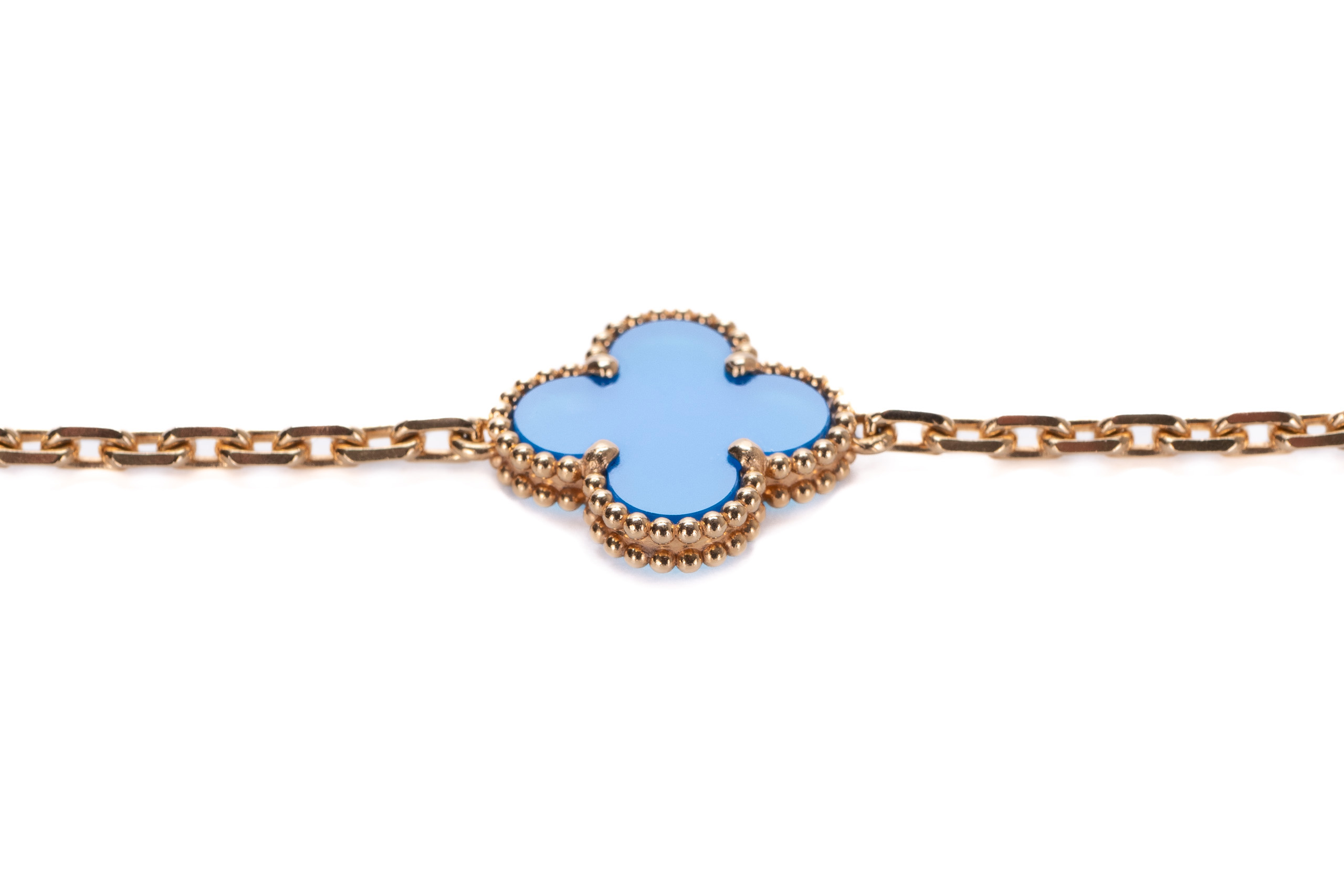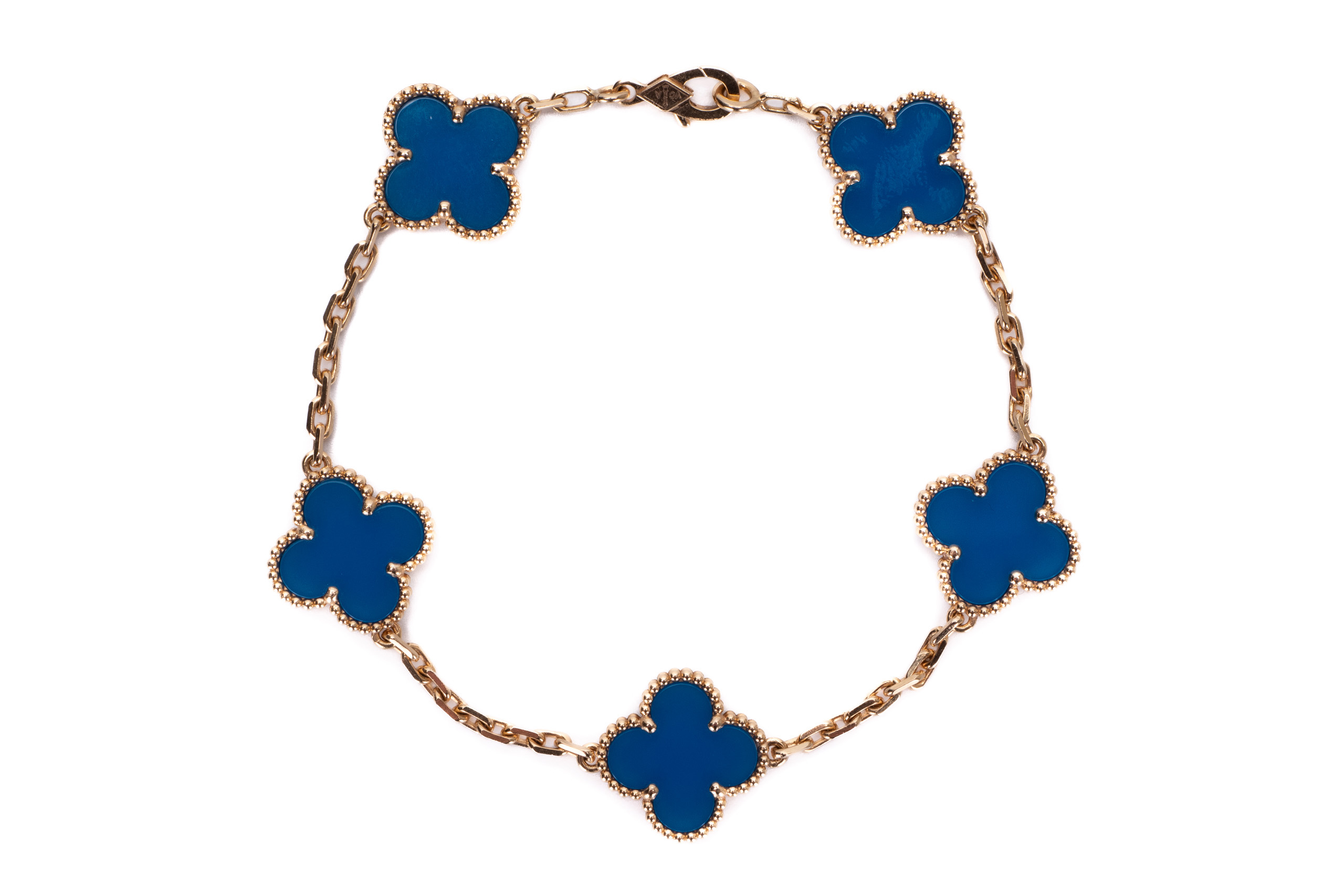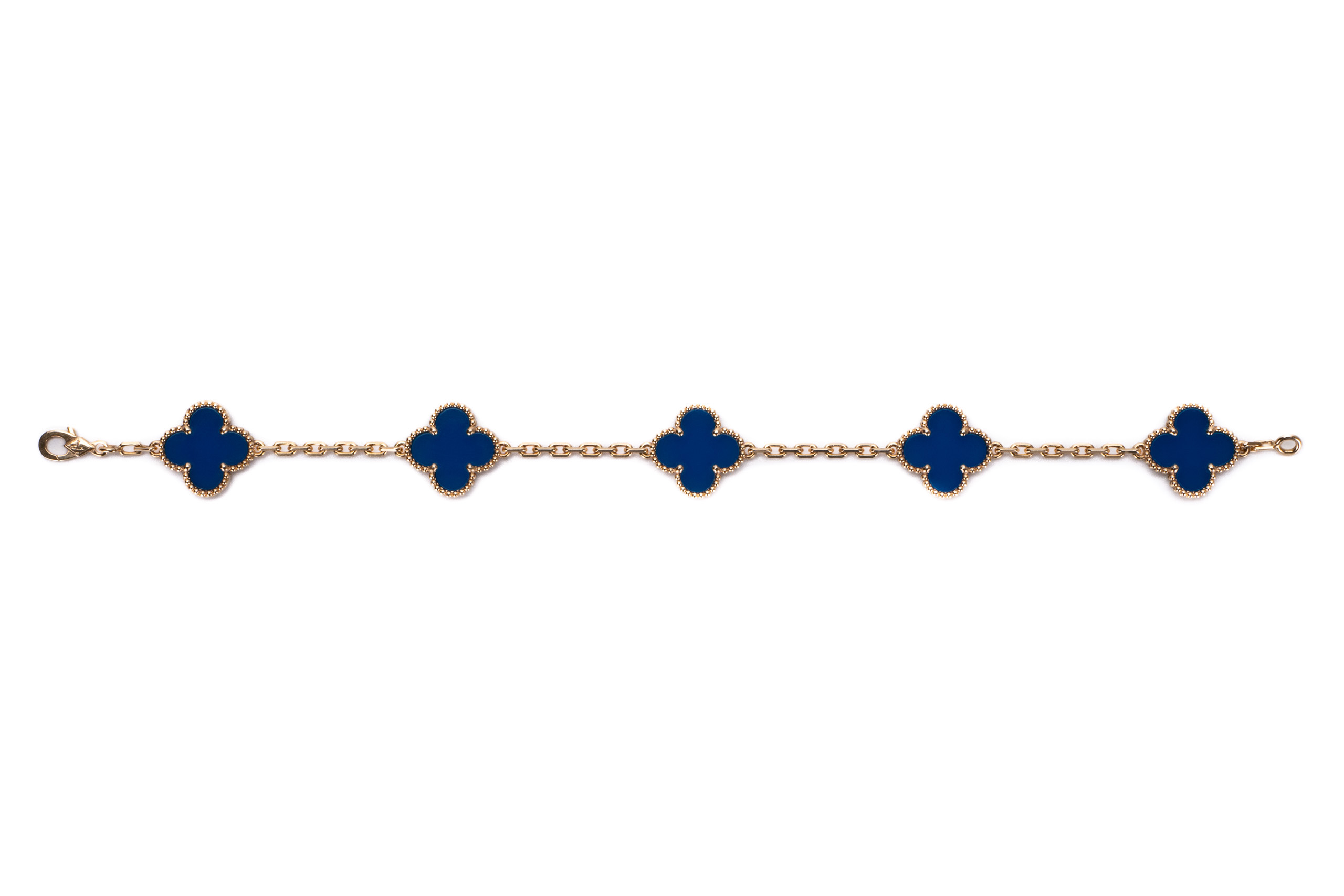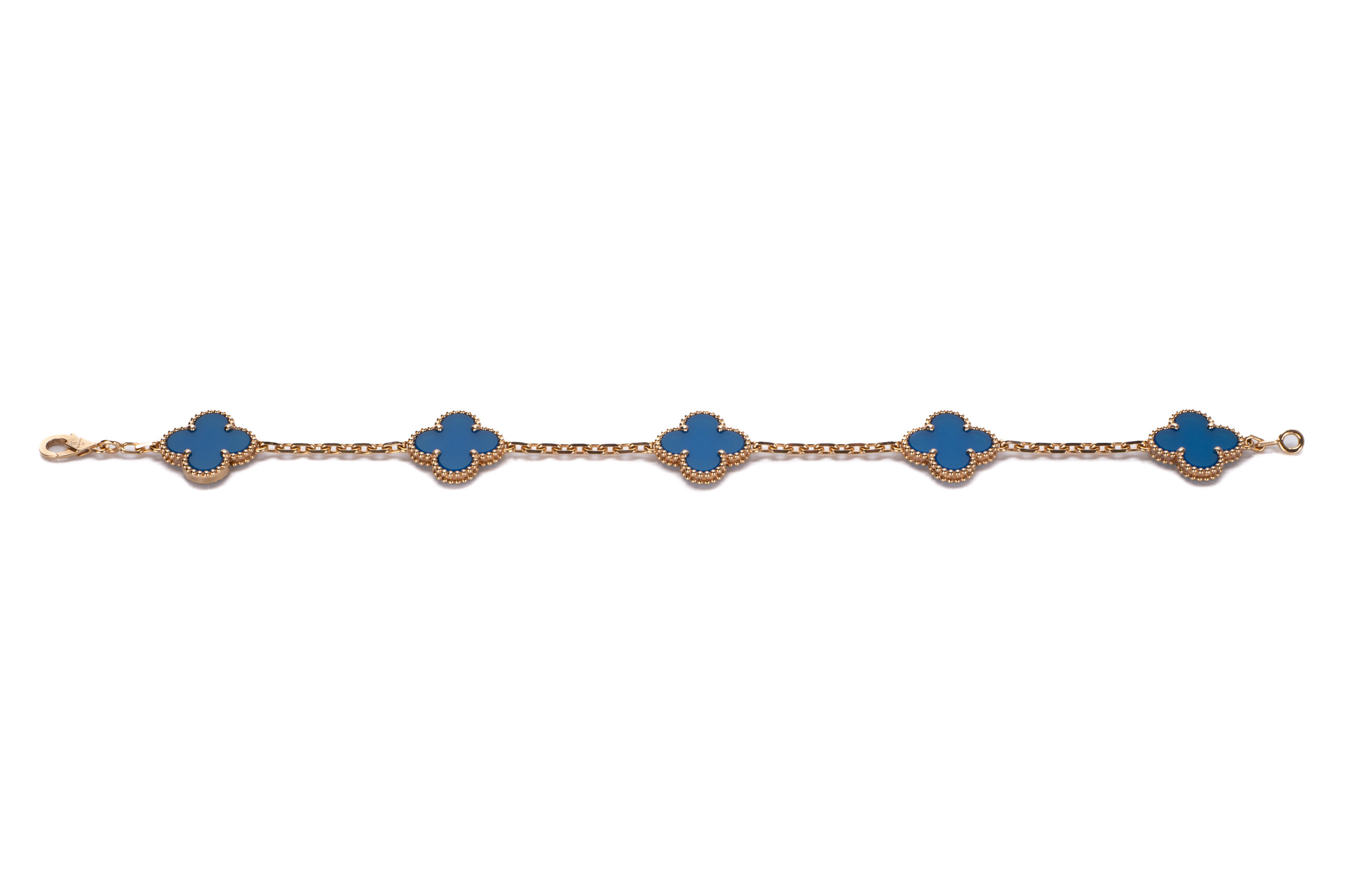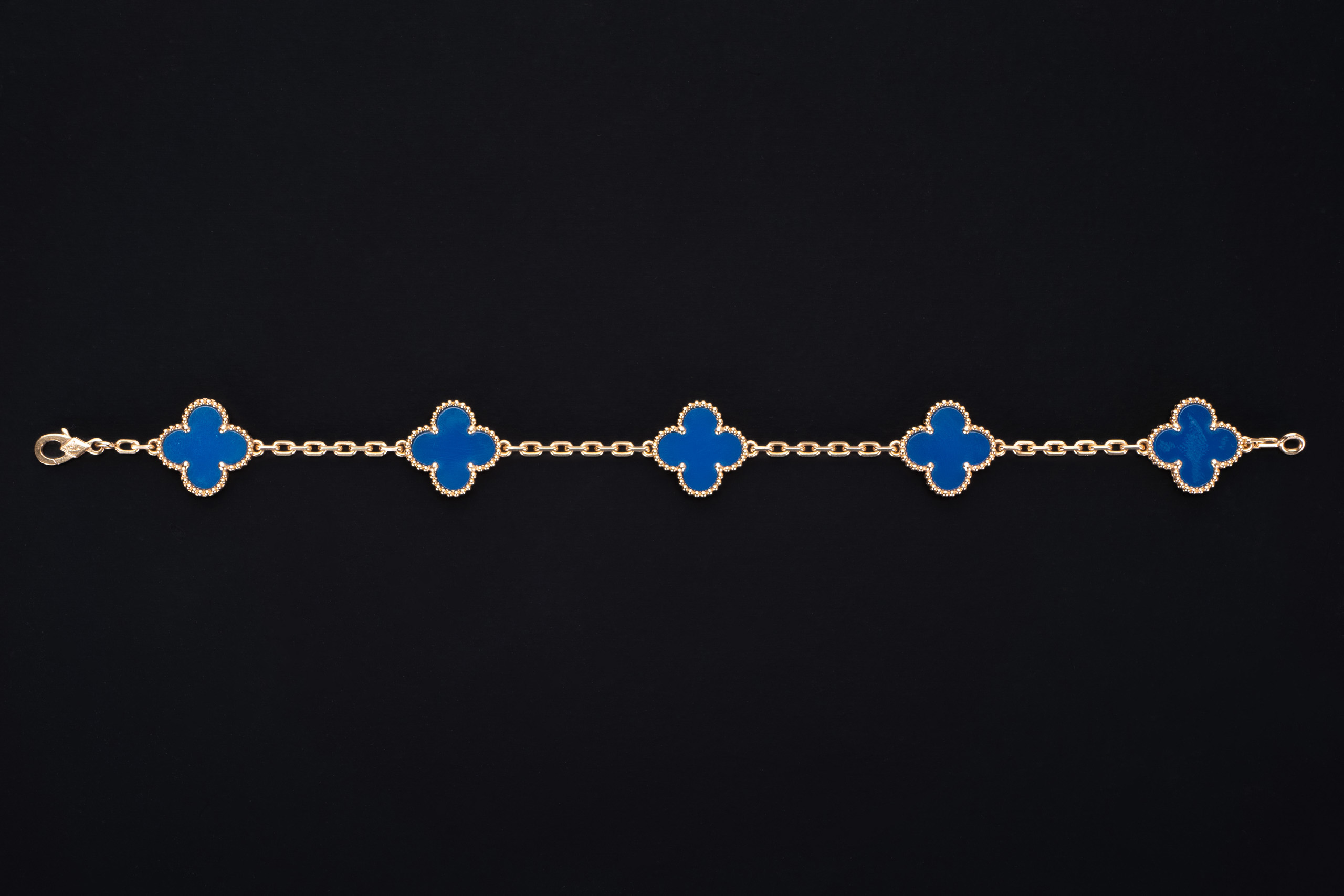 Van Cleef & Arpels Blue Agate Yellow Gold 5 Motif Bracelet / Pre-Loved condition