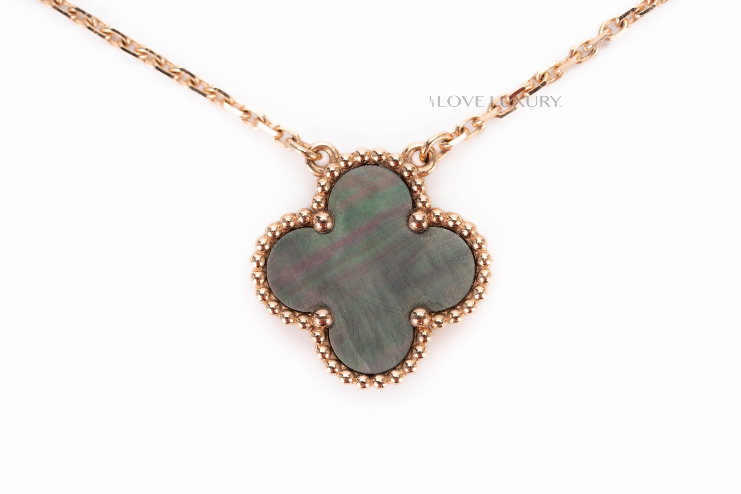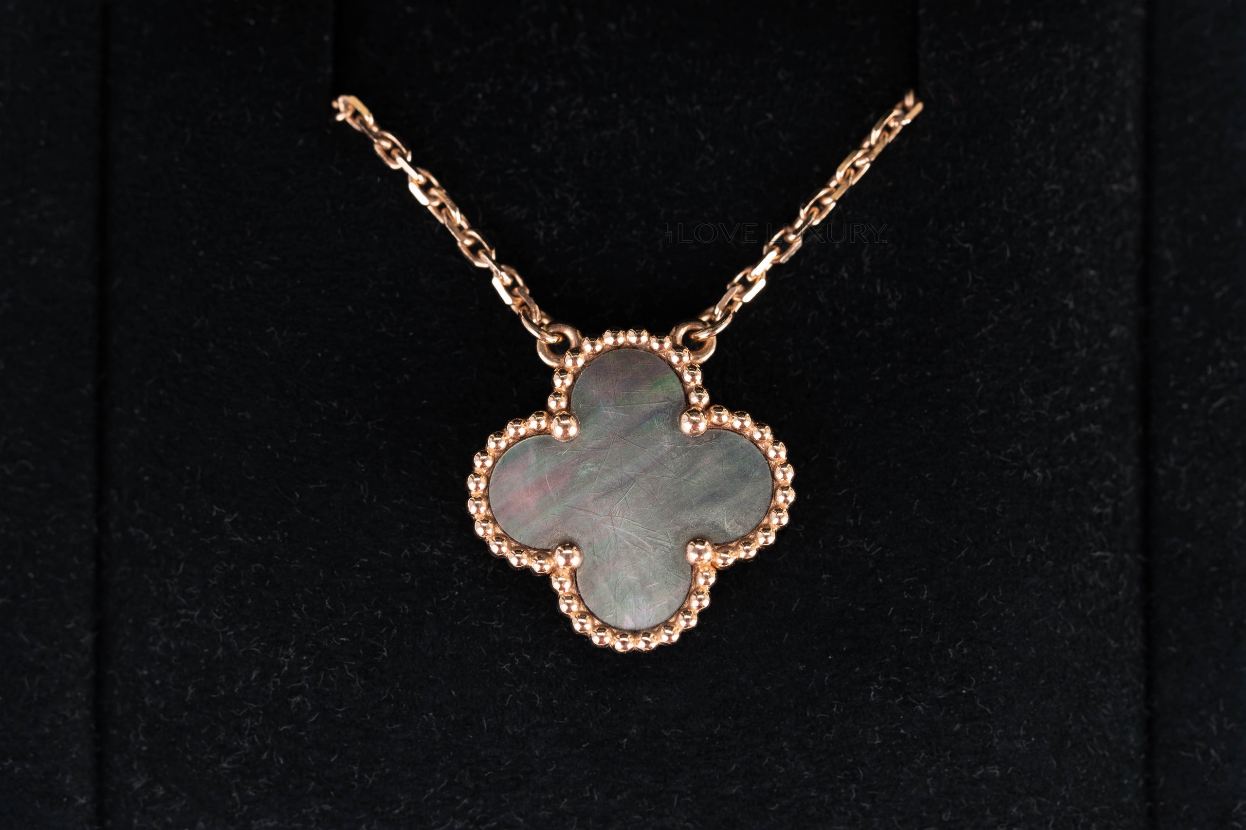 Van Cleef & Arpels Grey Mother of Pearl Rose Gold Vintage Alhambra Necklace / Pre-Loved condition