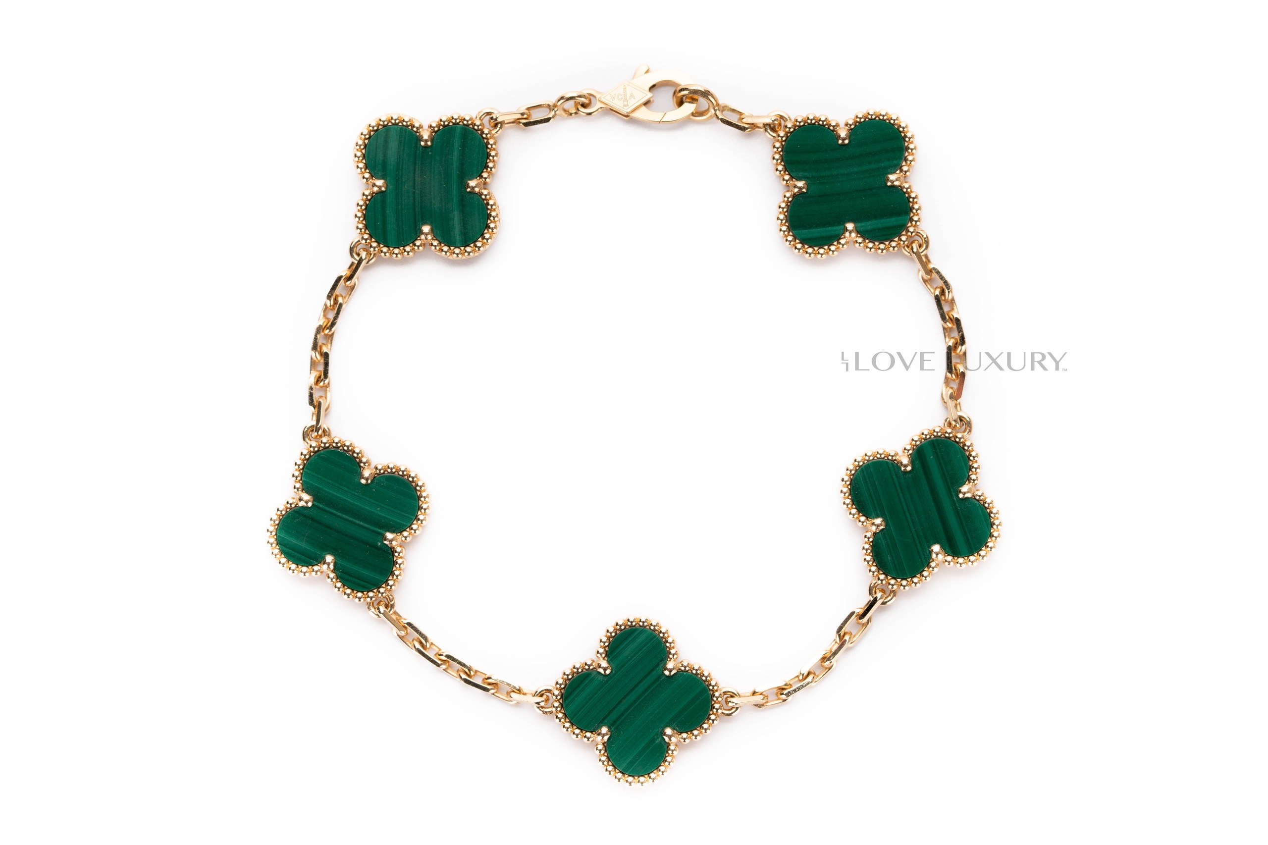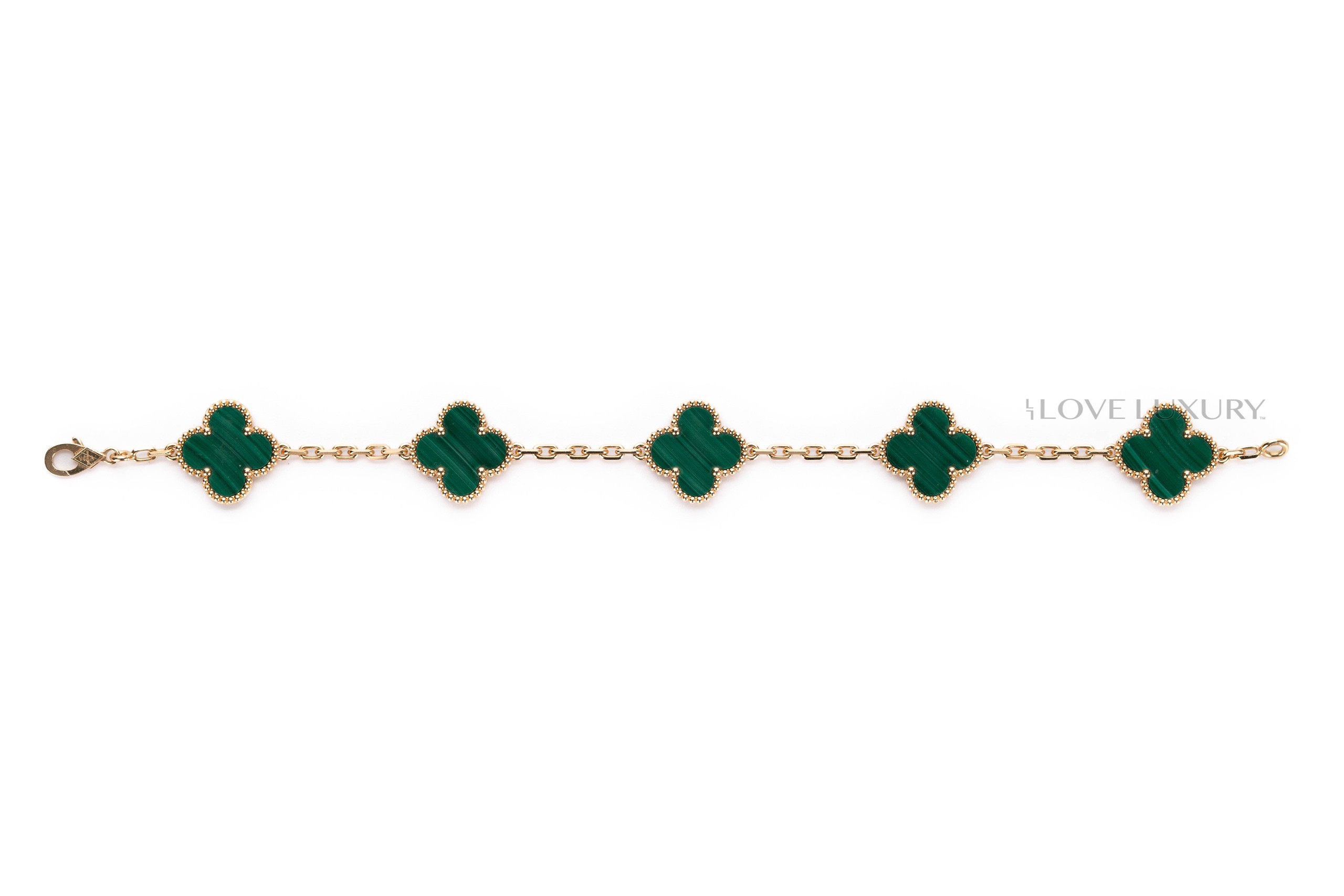 Van Cleef & Arpels Malachite 5 Motif Vintage Alhambra Bracelet
