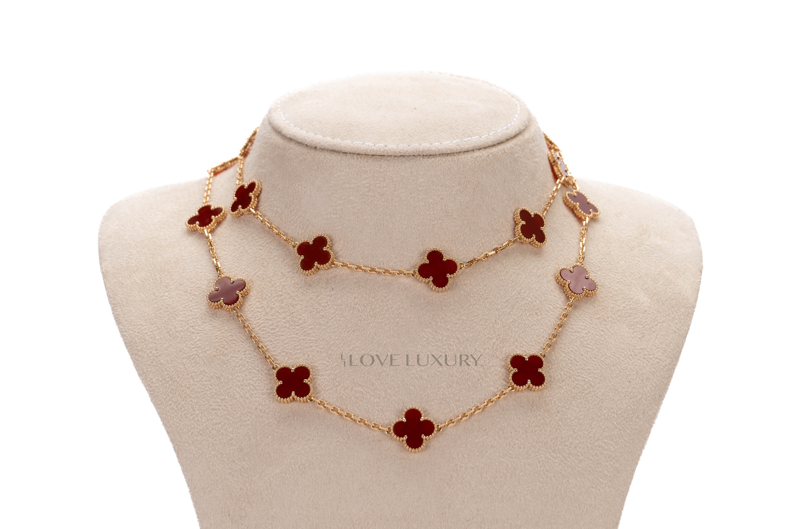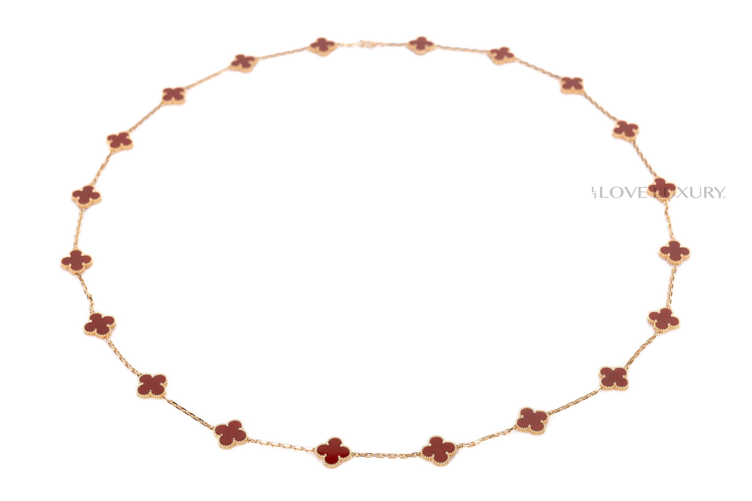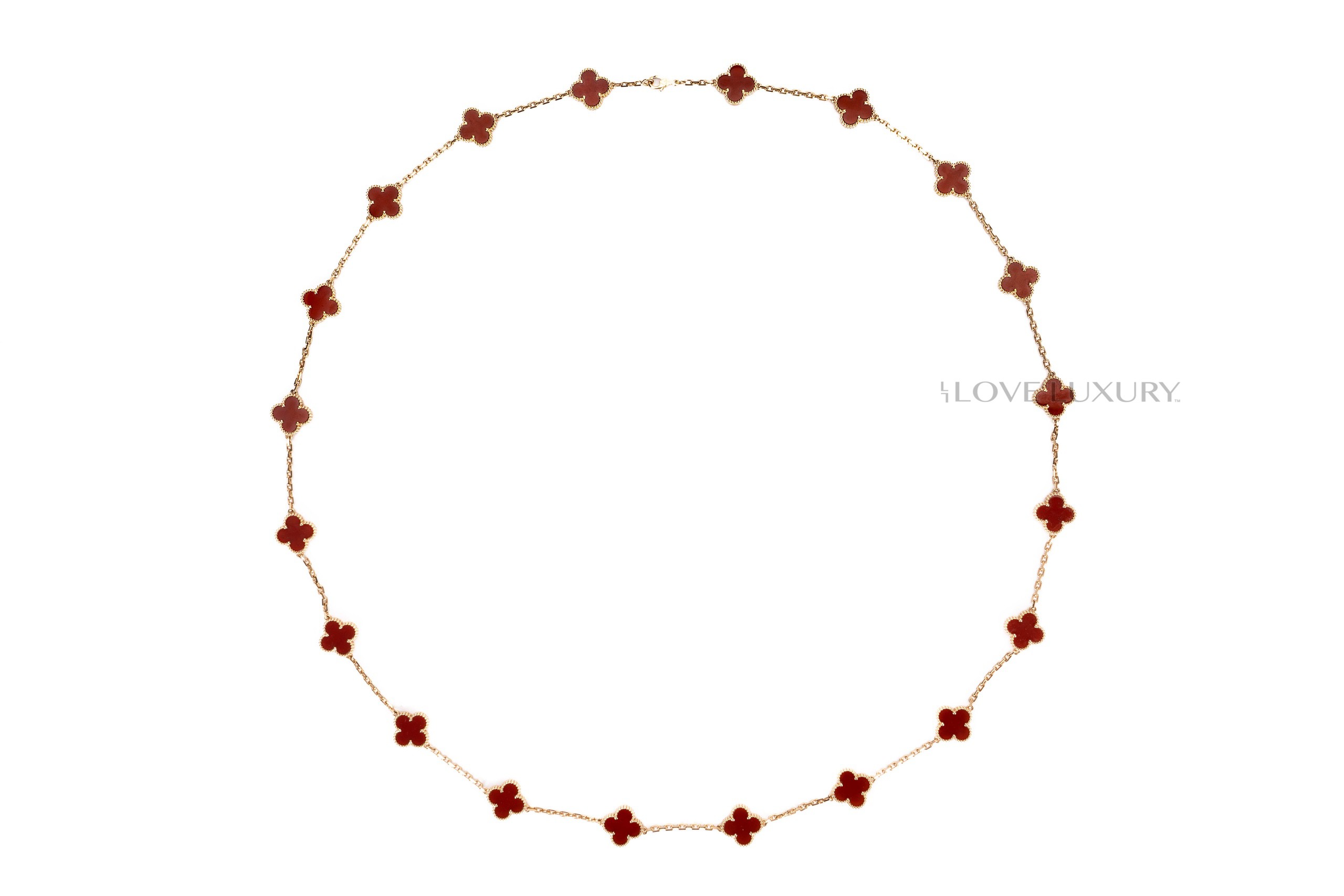 Van Cleef & Arpels Vintage 20 Motif Alhambra Carnelian Yellow Gold Necklace / 2022 Excellent Pre-Loved condition