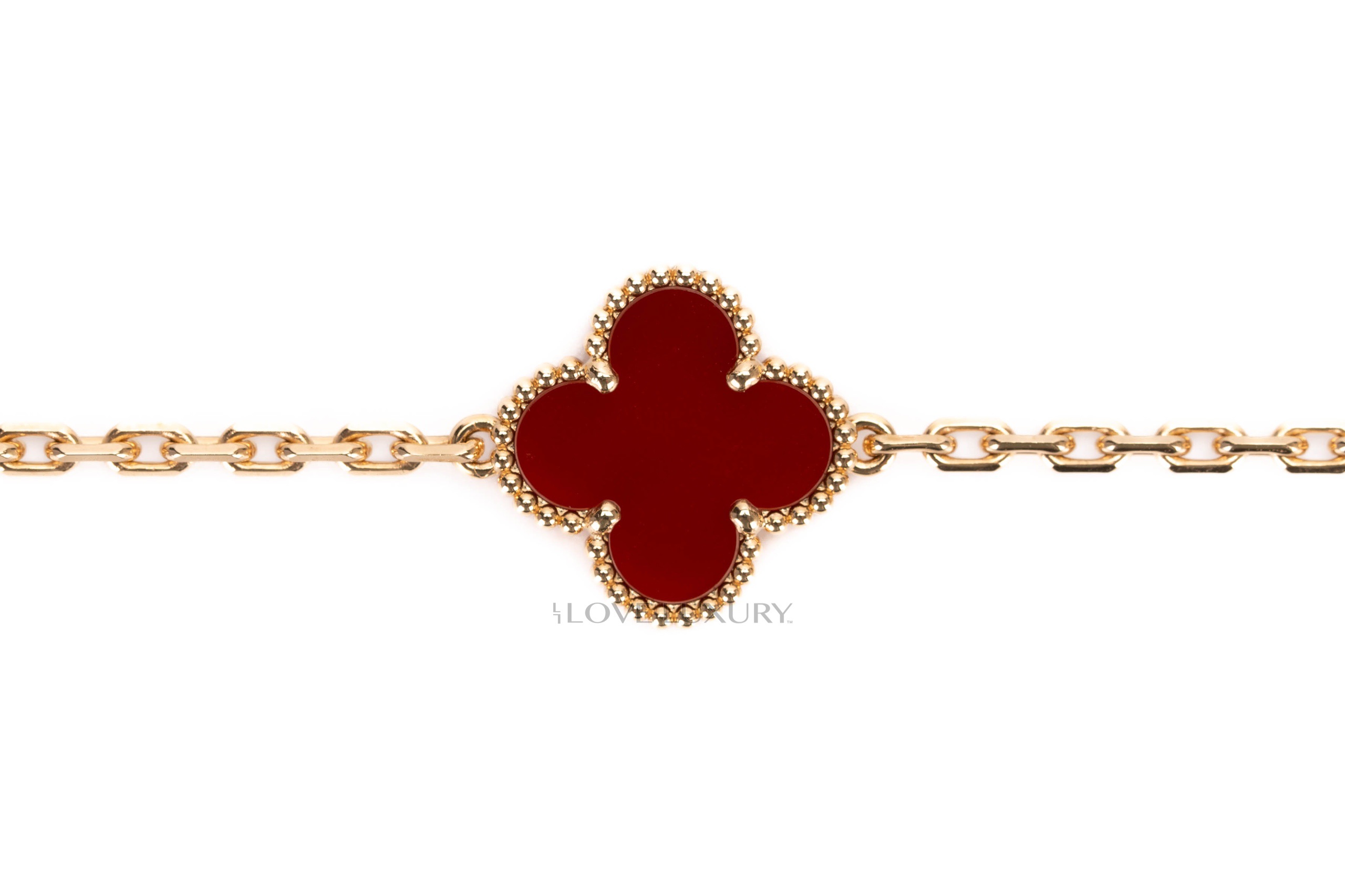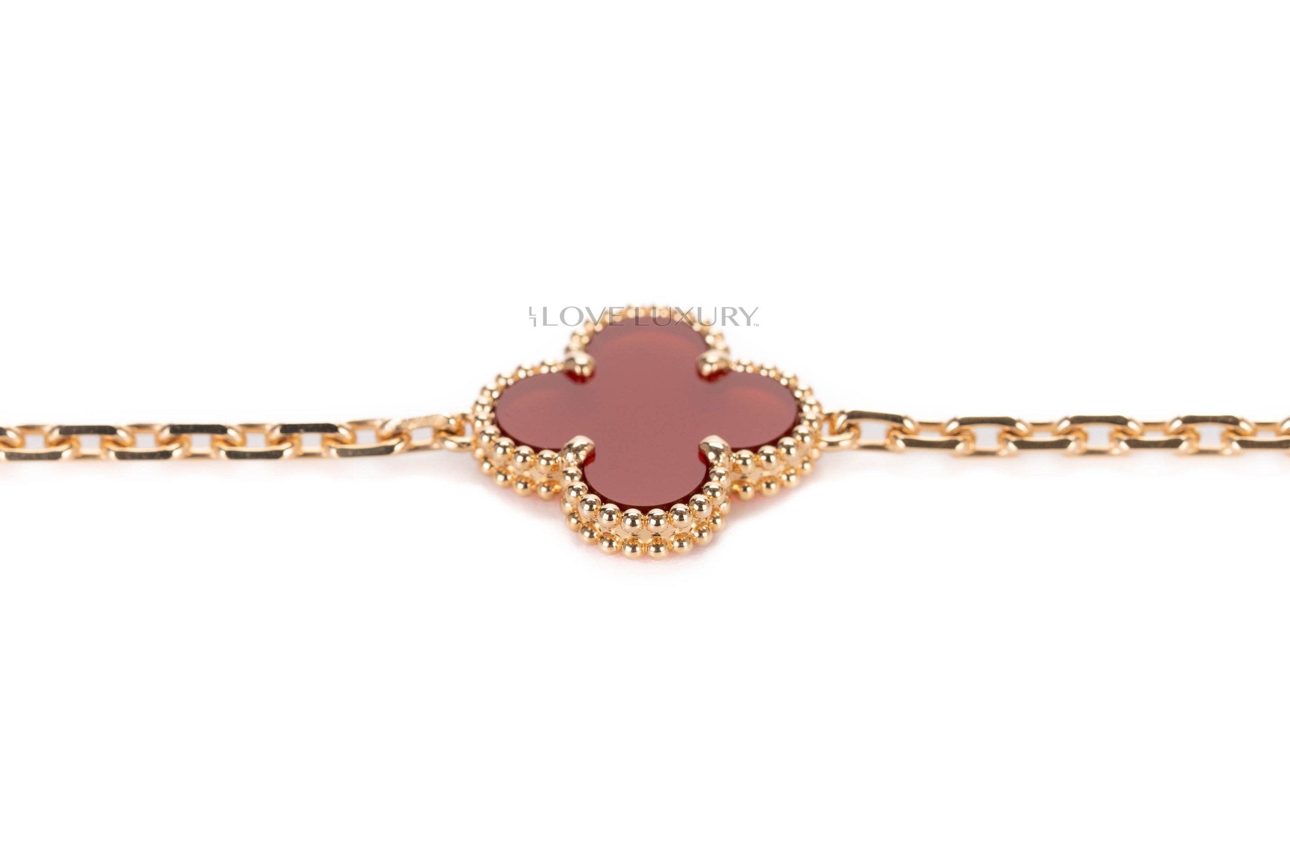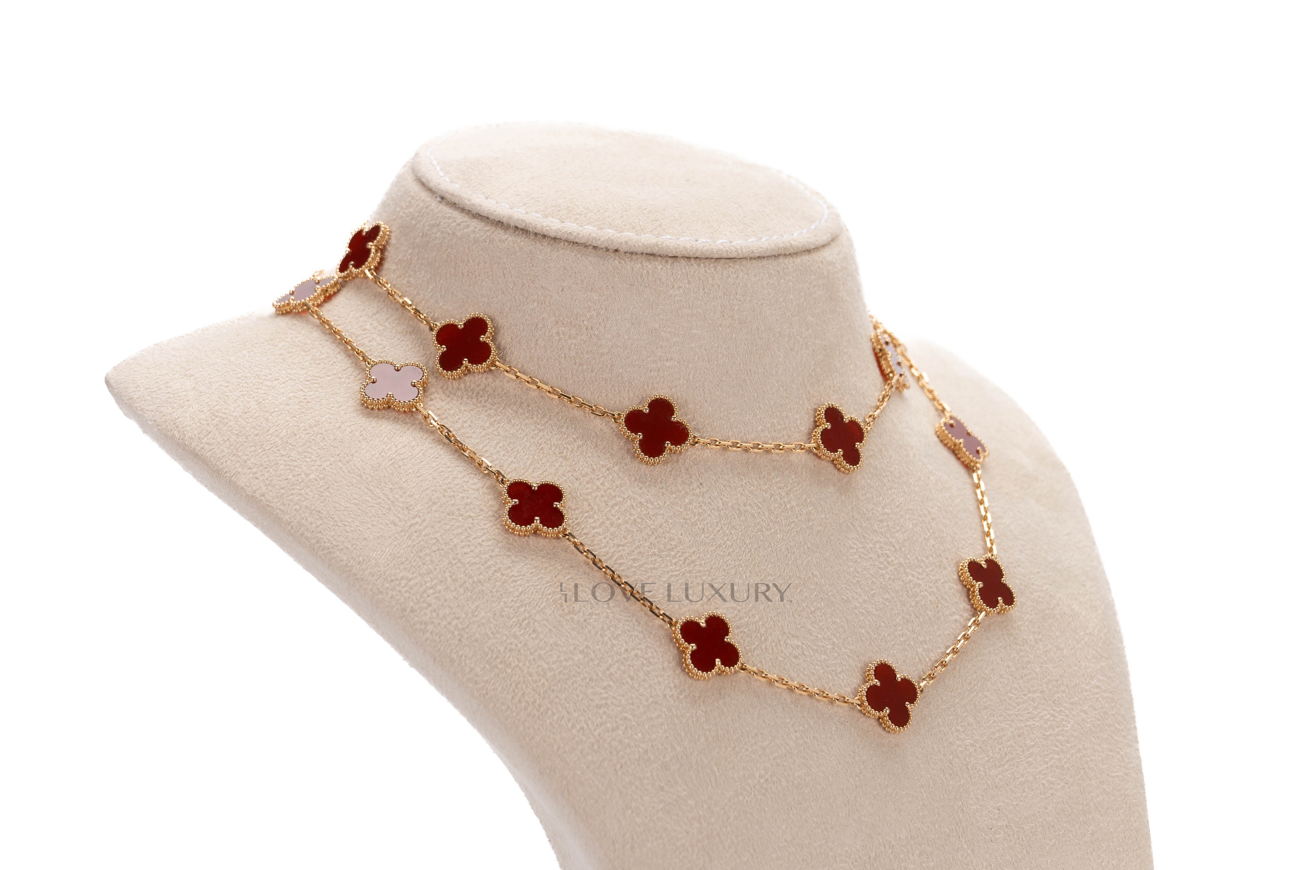 Van Cleef & Arpels Vintage 20 Motif Alhambra Carnelian Yellow Gold Necklace / 2022 Excellent Pre-Loved condition