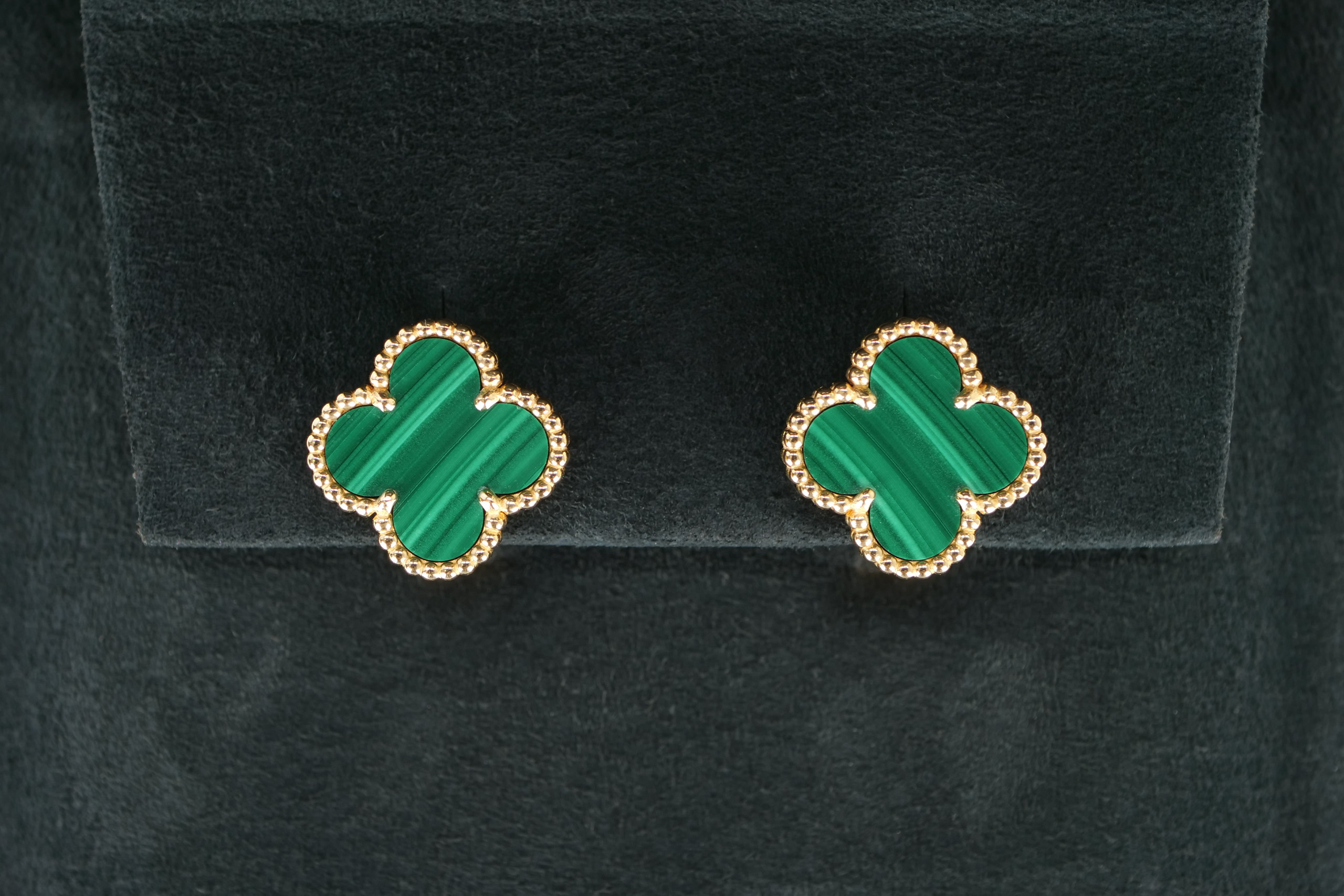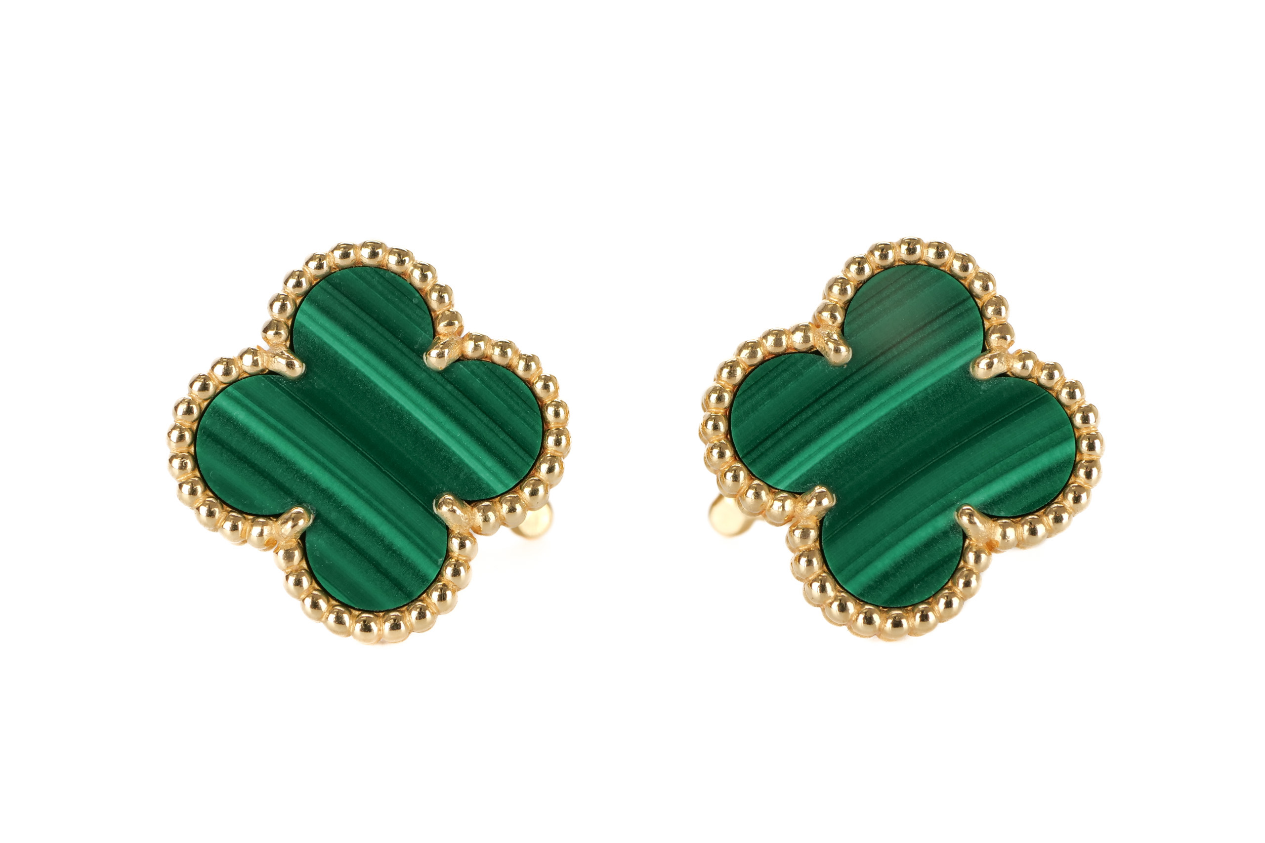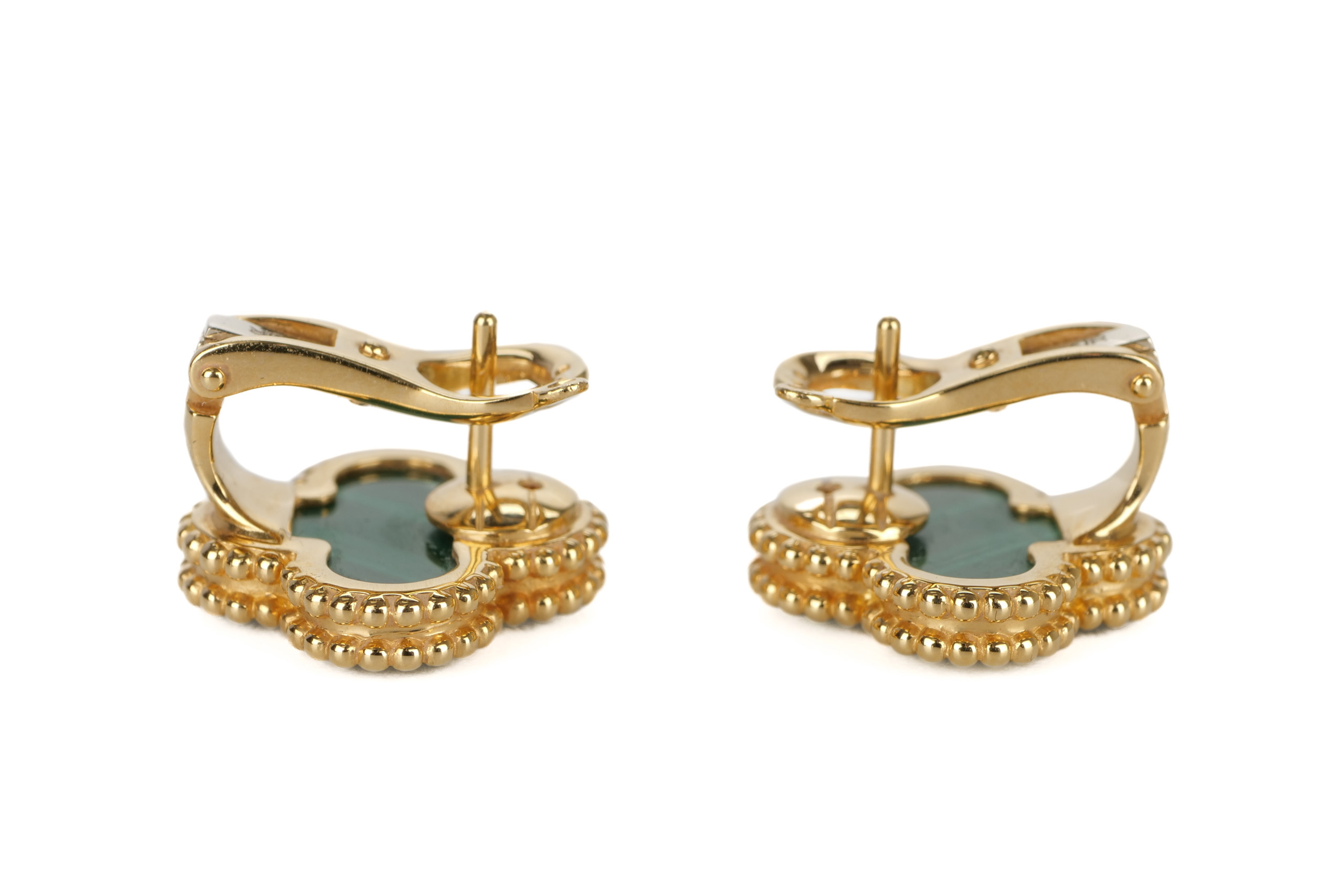 Van Cleef & Arpels Vintage Alhambra 18ct Yellow Gold Malachite Earrings / 2021, Excellent preloved