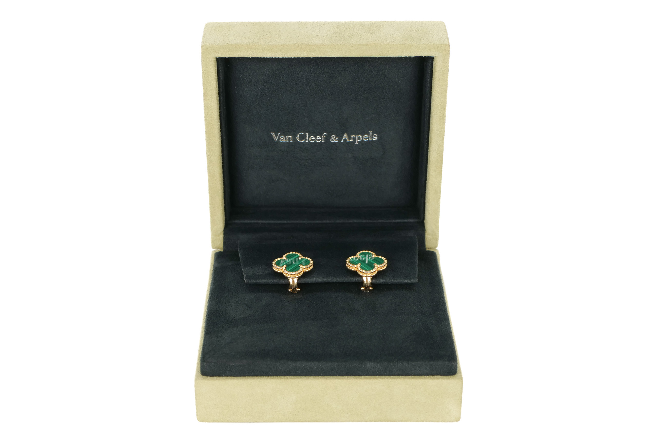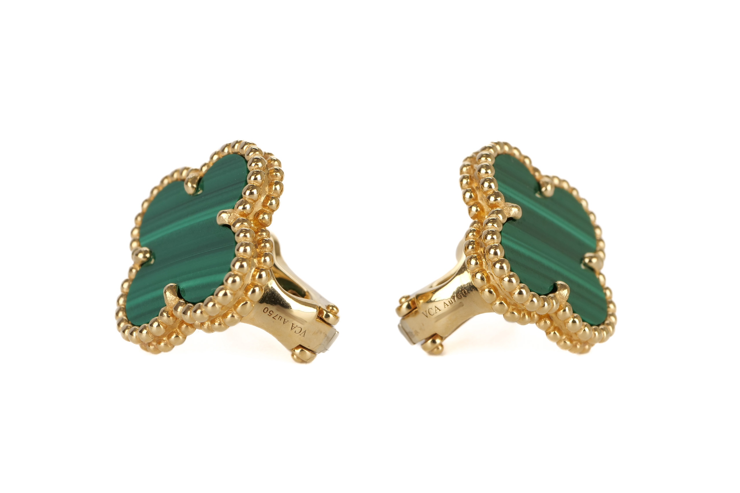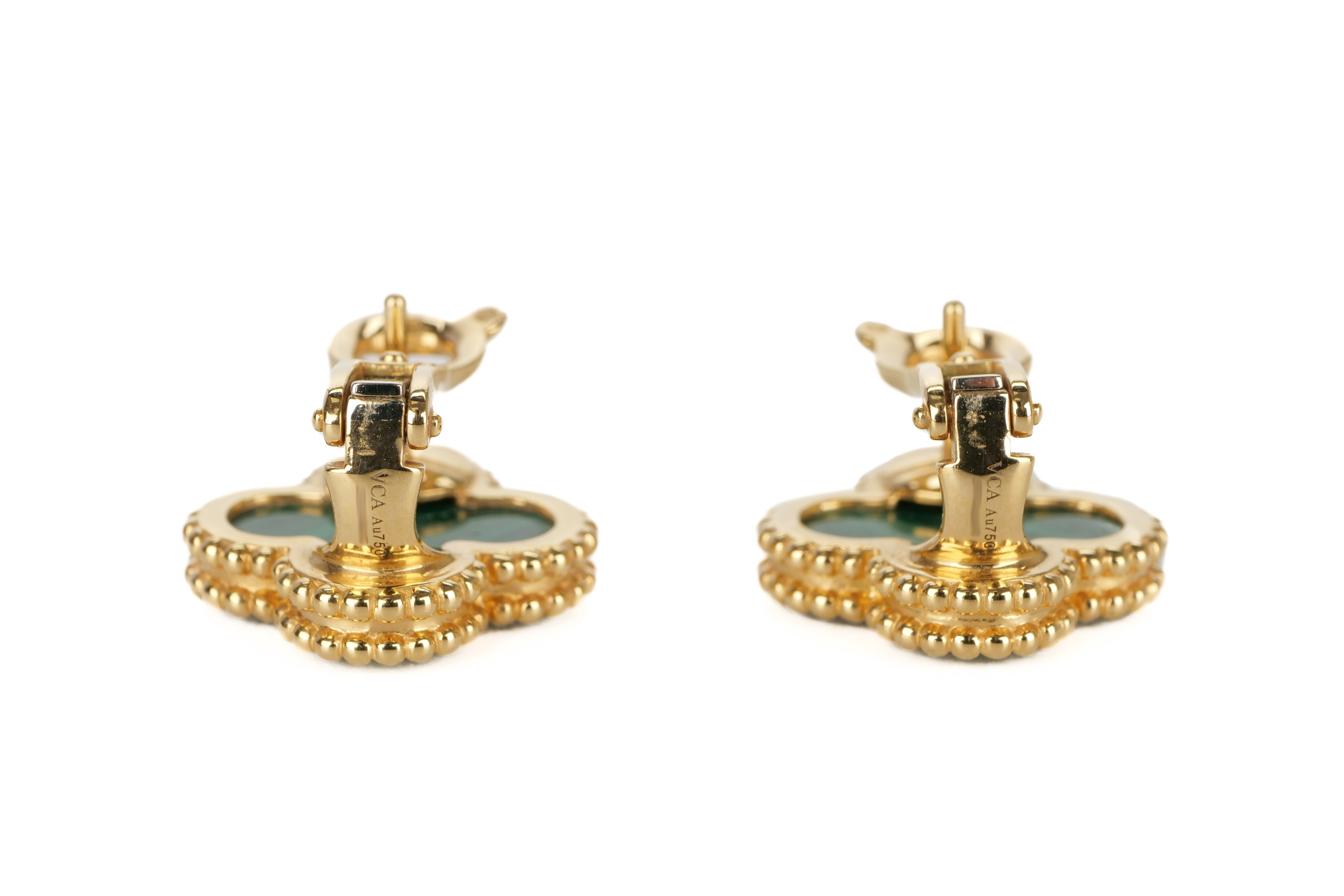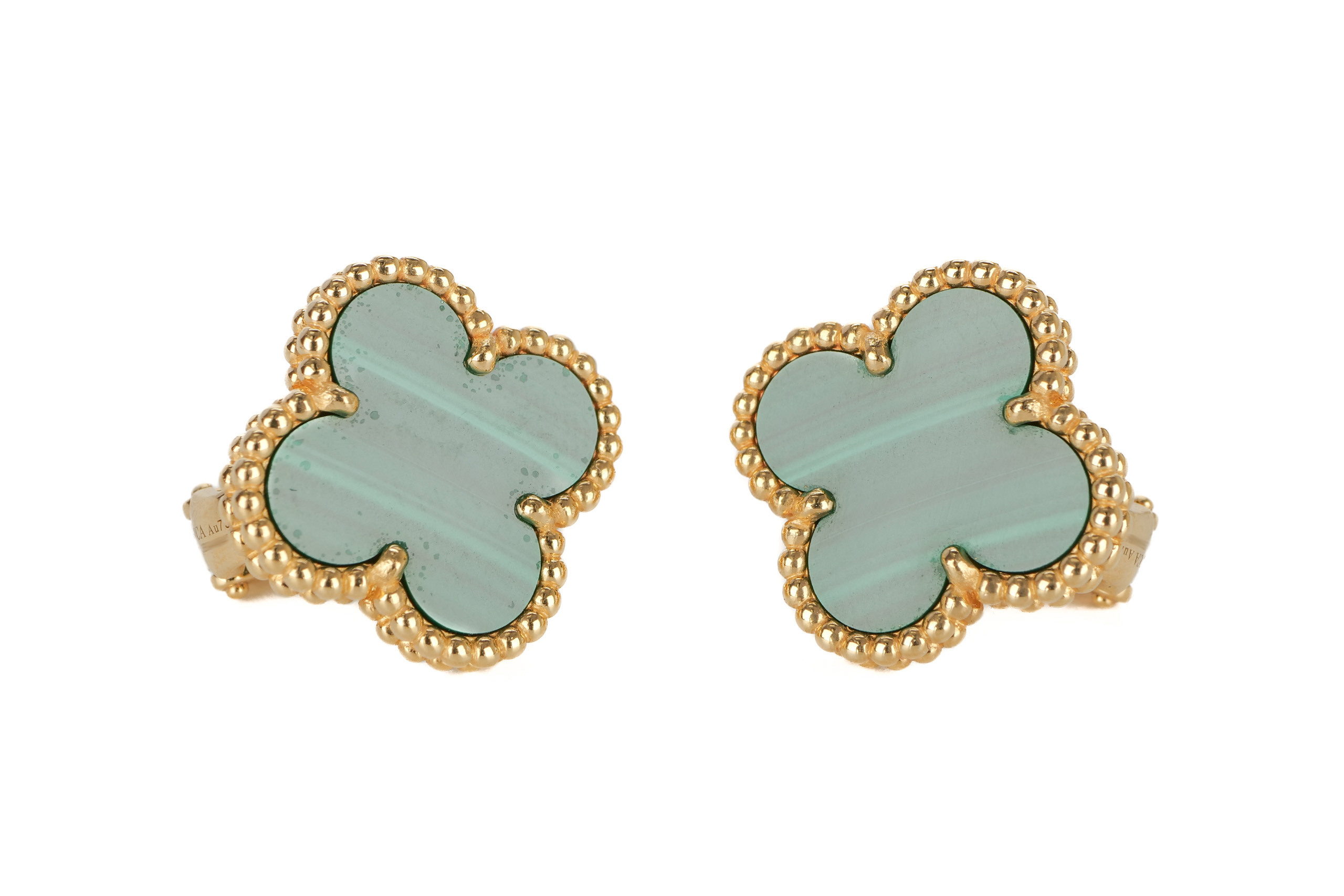 Van Cleef & Arpels Vintage Alhambra 18ct Yellow Gold Malachite Earrings / 2021, Excellent preloved