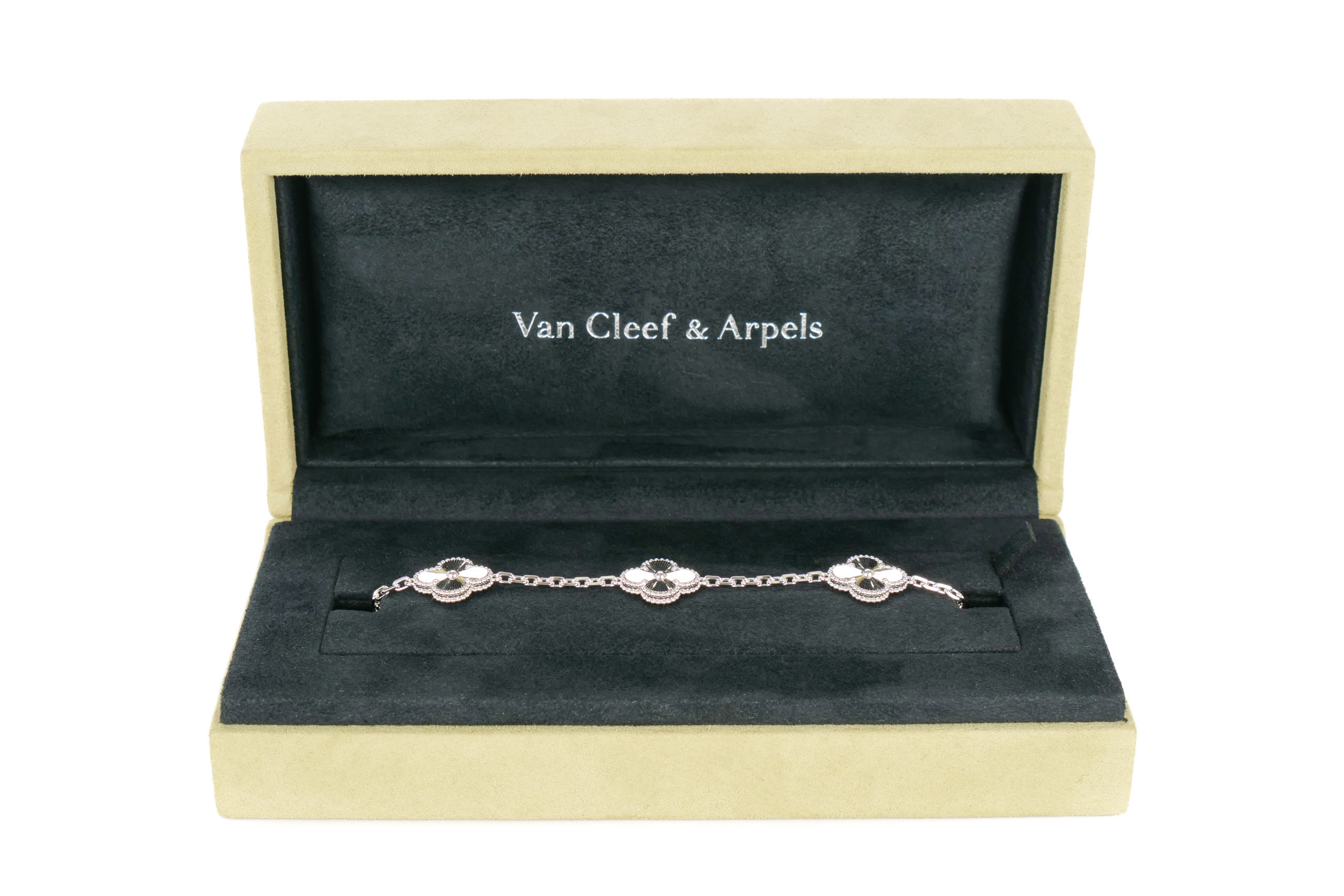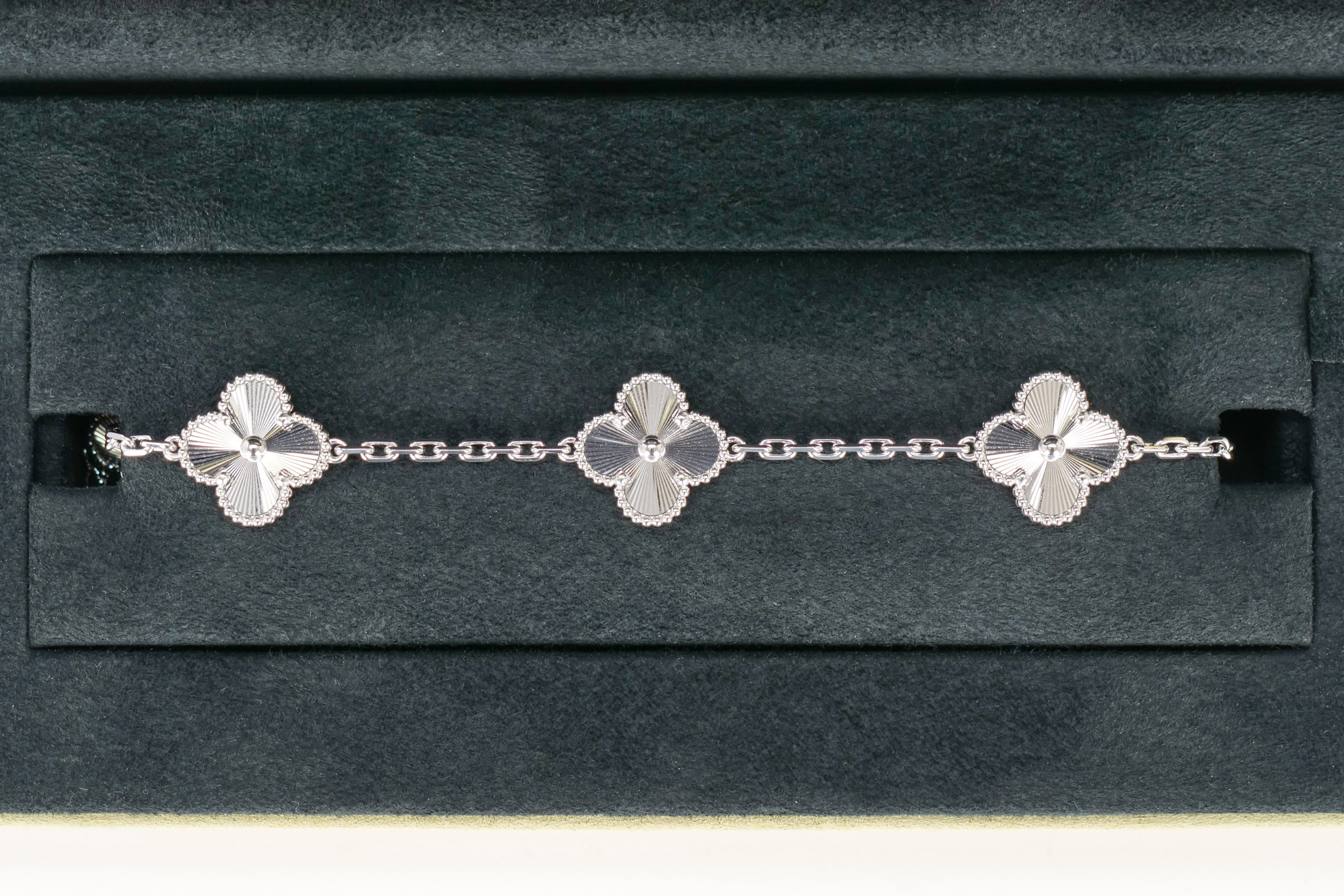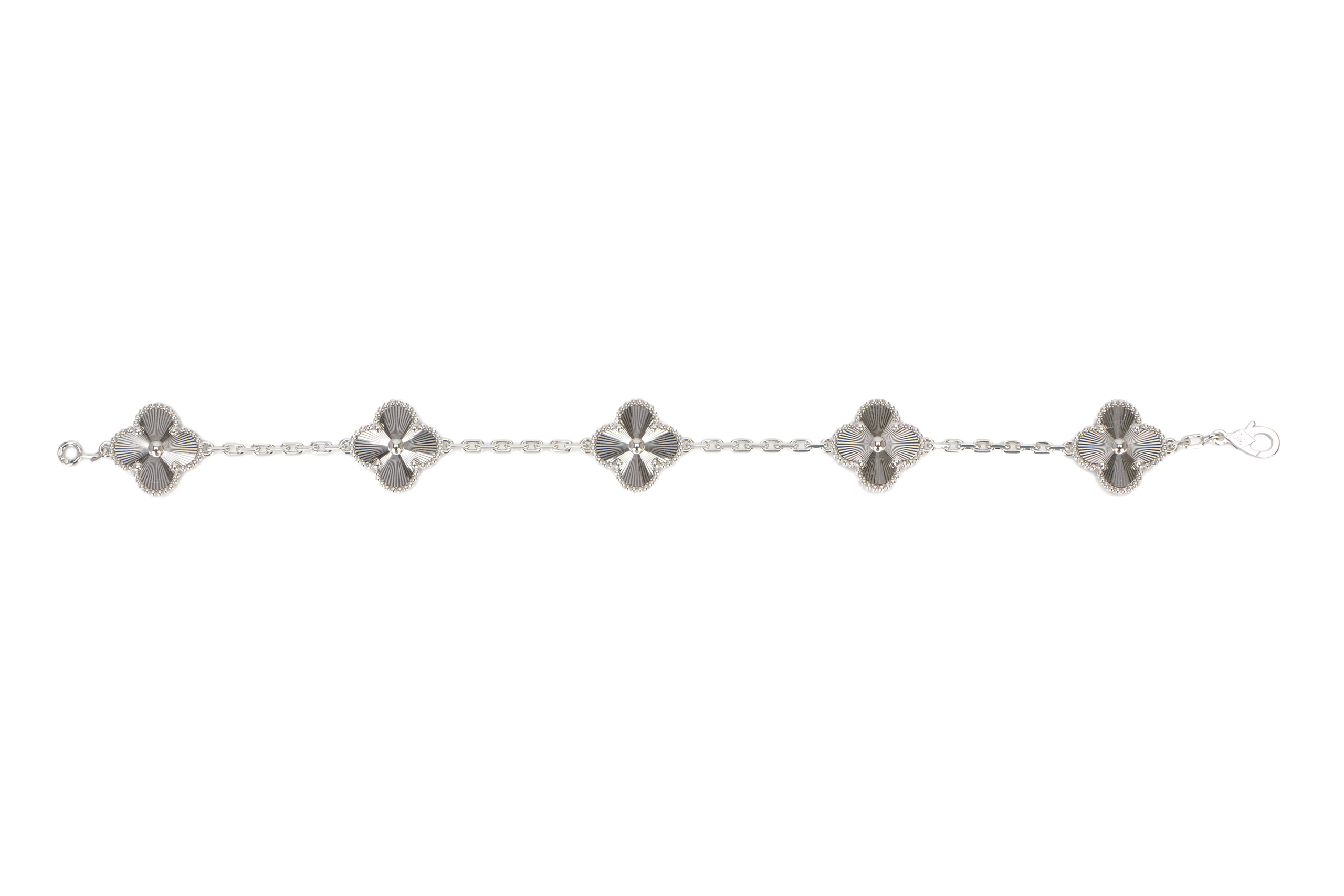 Van Cleef & Arpels Vintage Alhambra Guilloche White Gold 5 Motifs Bracelet / 2025, Brand New