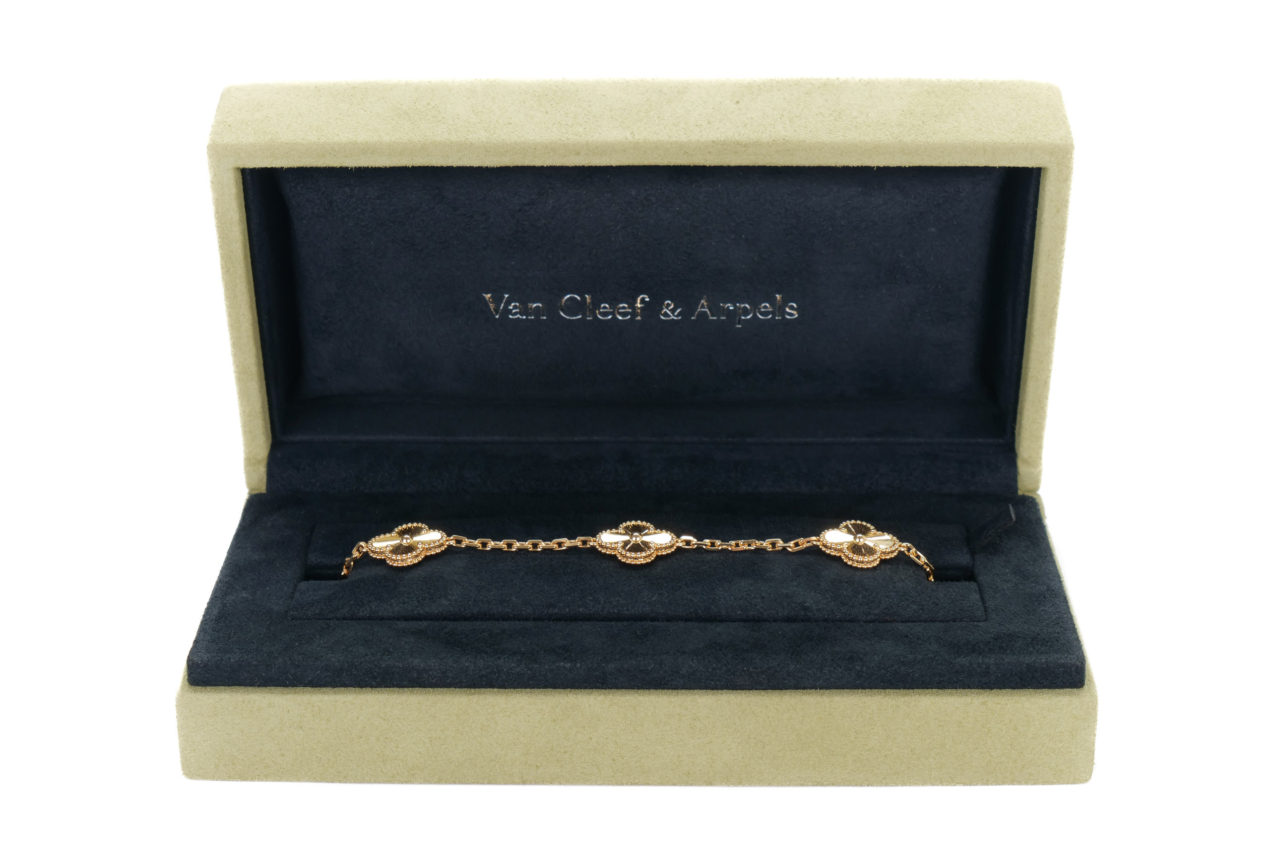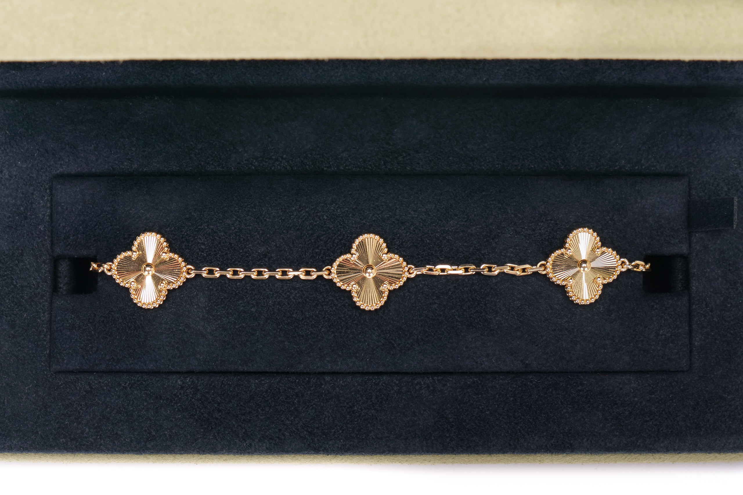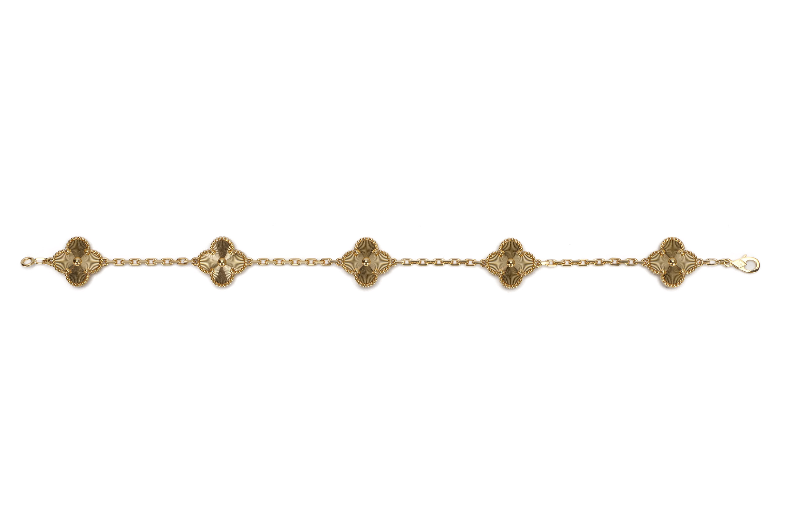 Van Cleef & Arpels Vintage Alhambra Guilloche Yellow Gold 5 Motif Bracelet / Excellent Pre-Loved condition 2023