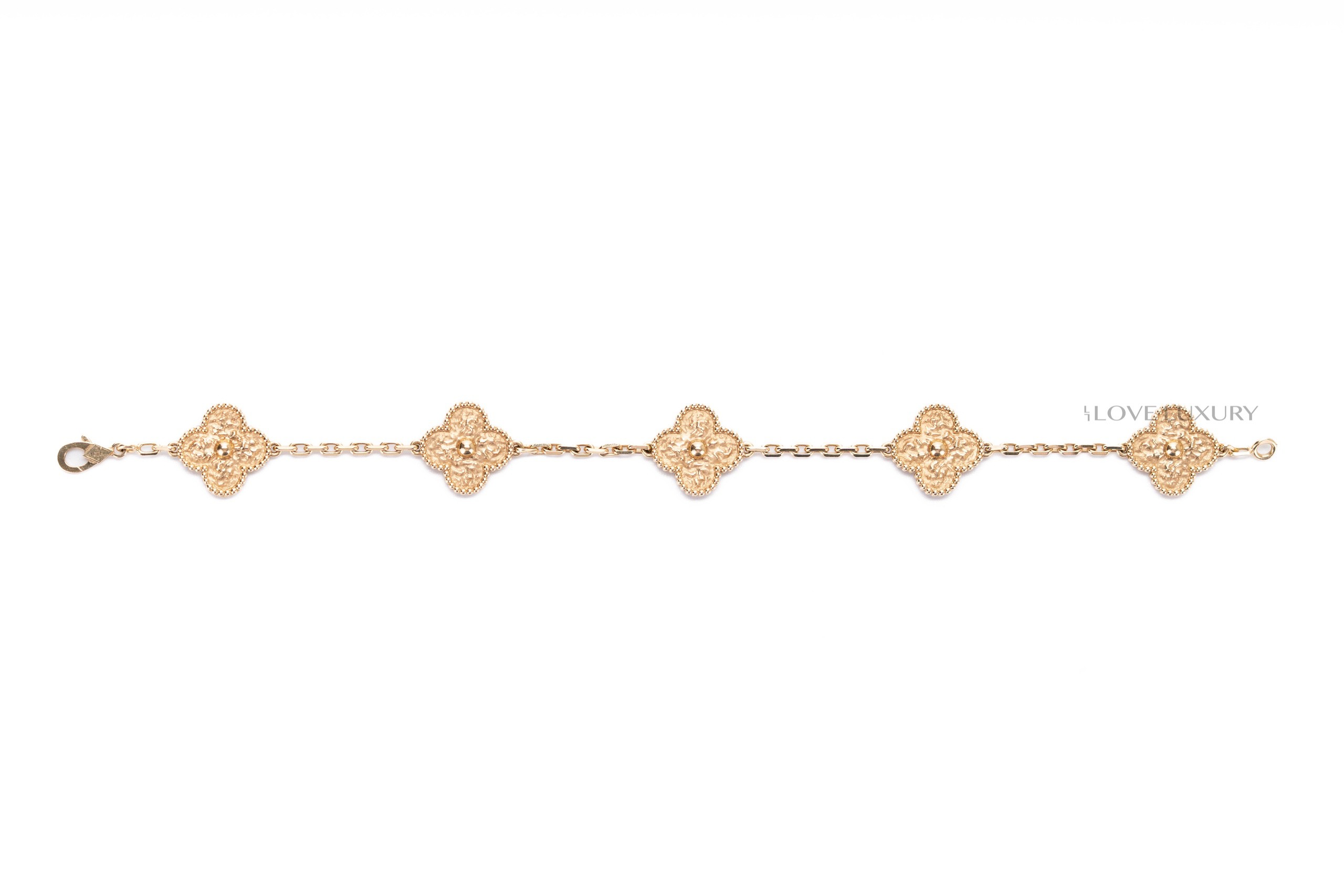 Van Cleef & Arpels Vintage Alhambra Hammered 18kt Yellow Gold Bracelet 5 motifs.