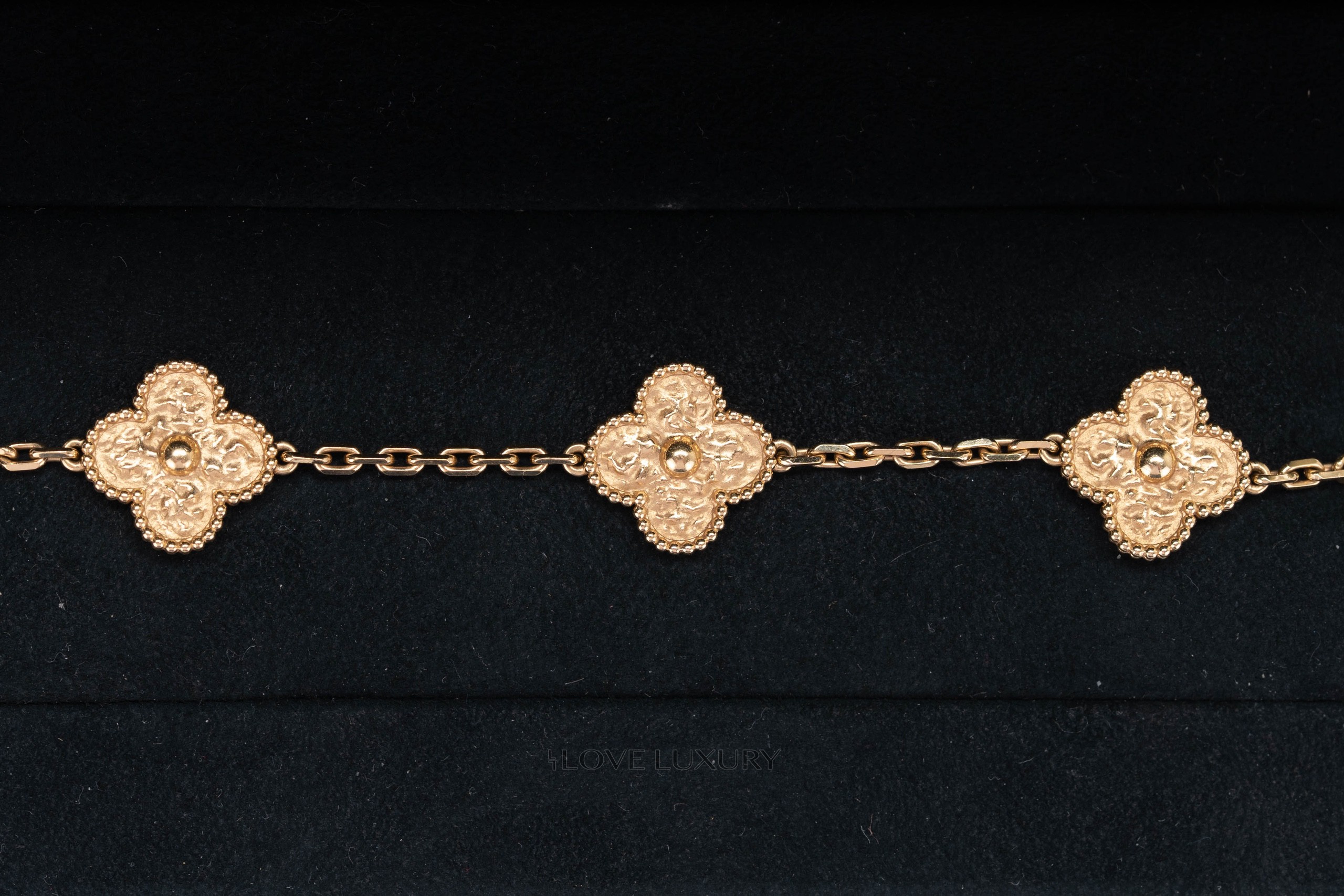 Van Cleef & Arpels Vintage Alhambra Hammered Yellow Gold Bracelet