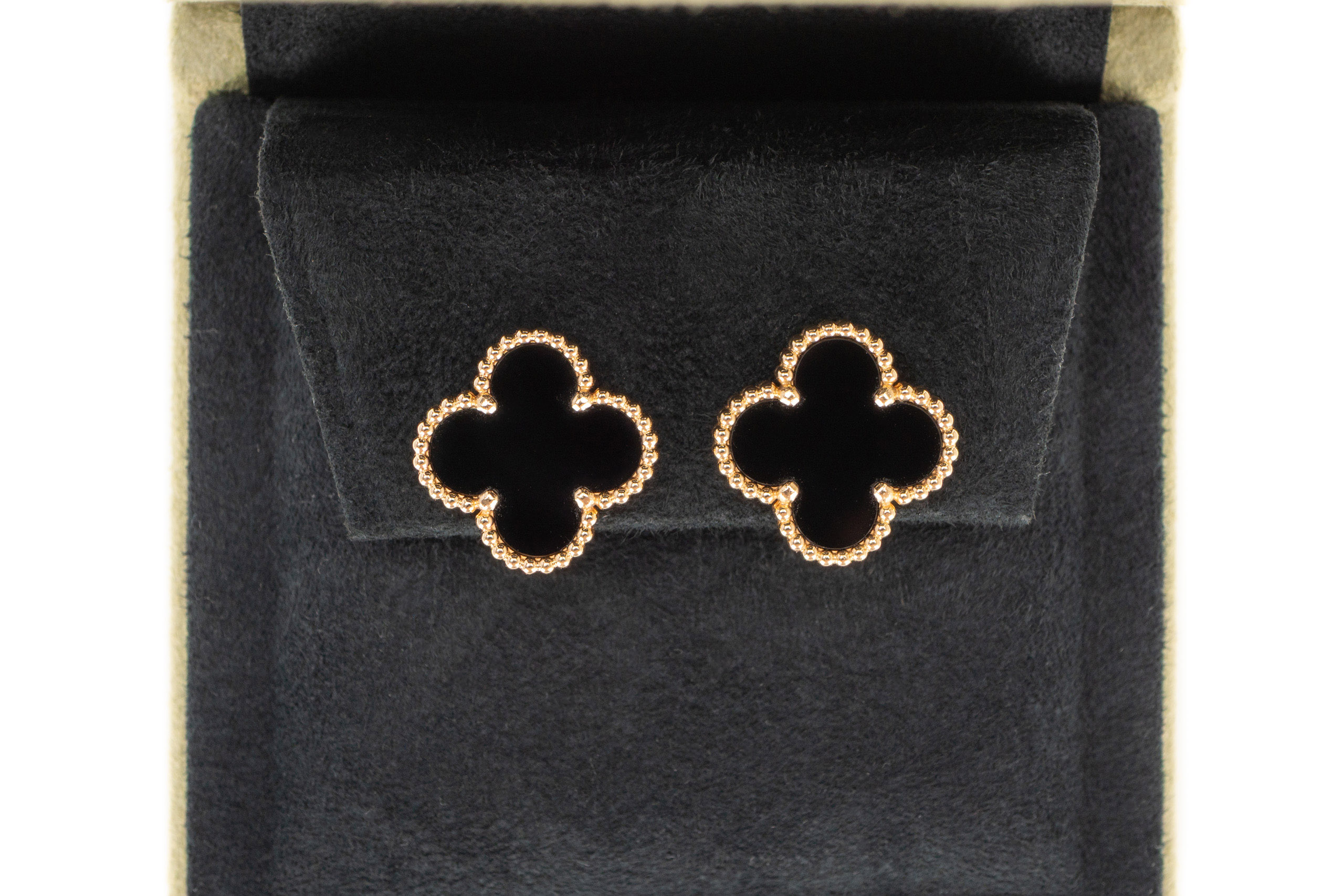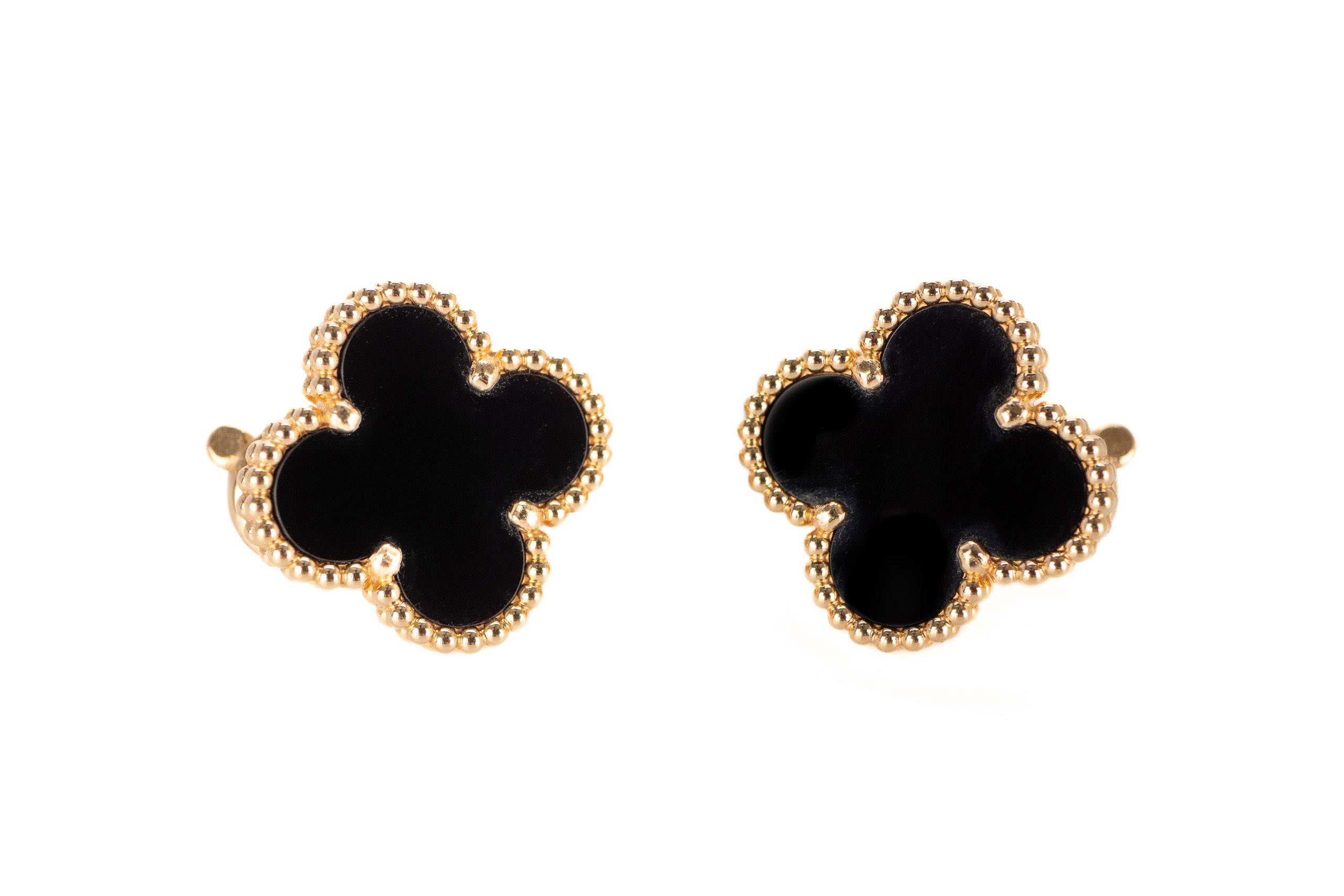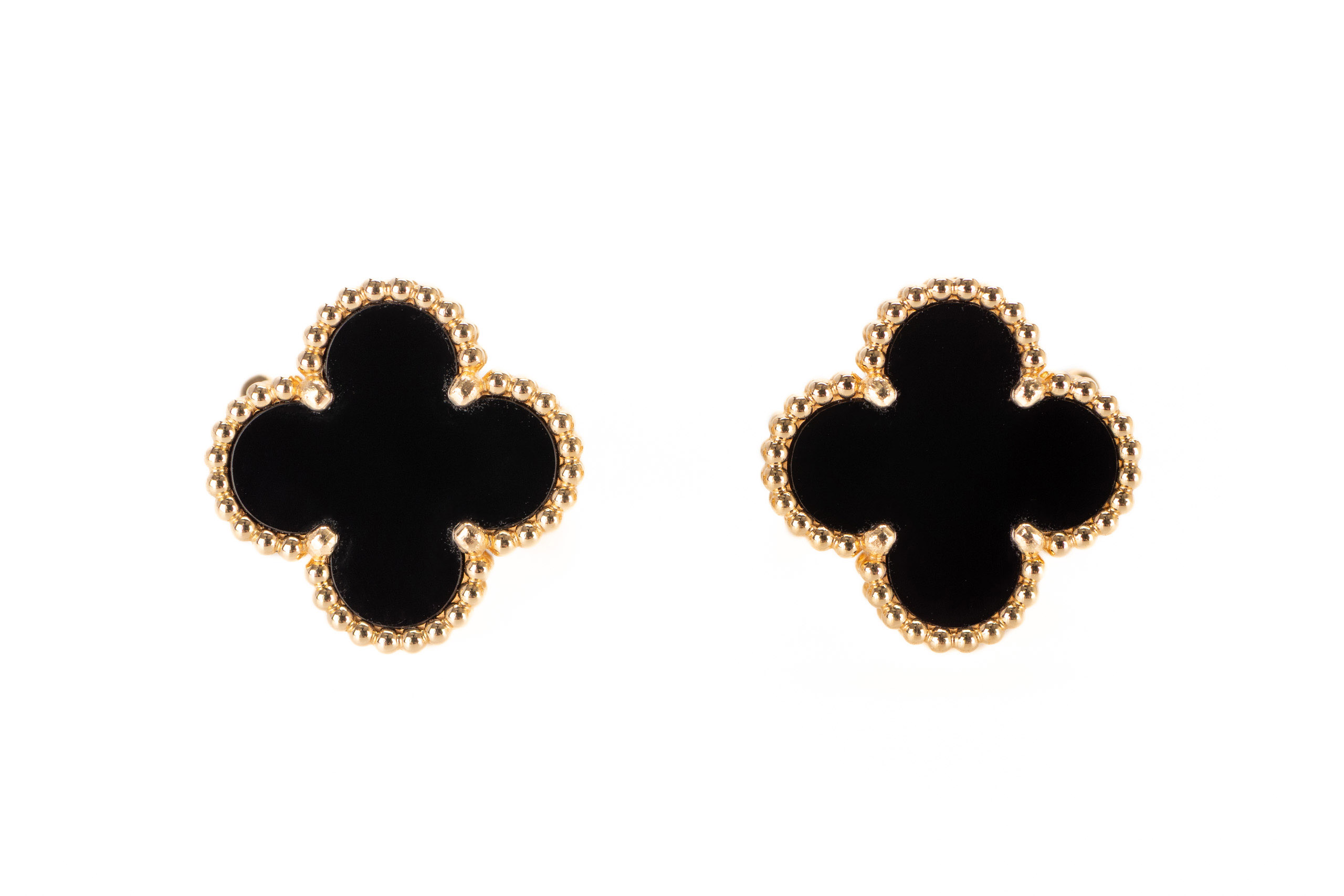 Van Cleef & Arpels Vintage Alhambra Onyx 18ct Yellow Gold Earrings / 2024, Brand New