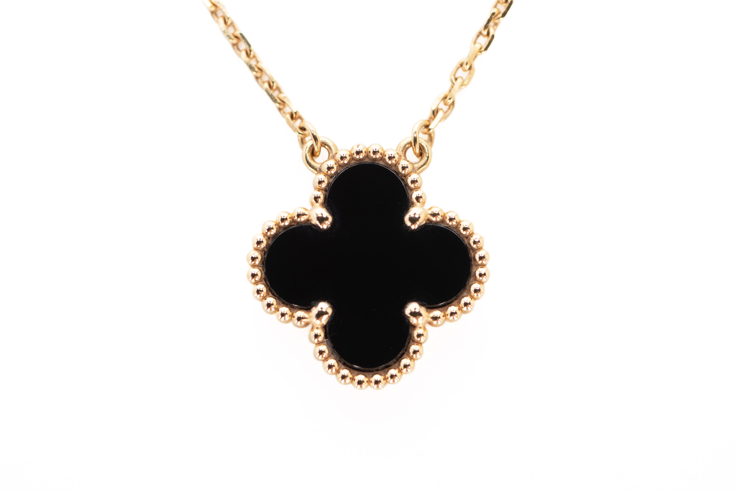 Van Cleef & Arpels Vintage Alhambra Onyx 18ct Yellow Gold Single Pendant / 2024, Excellent Preloved