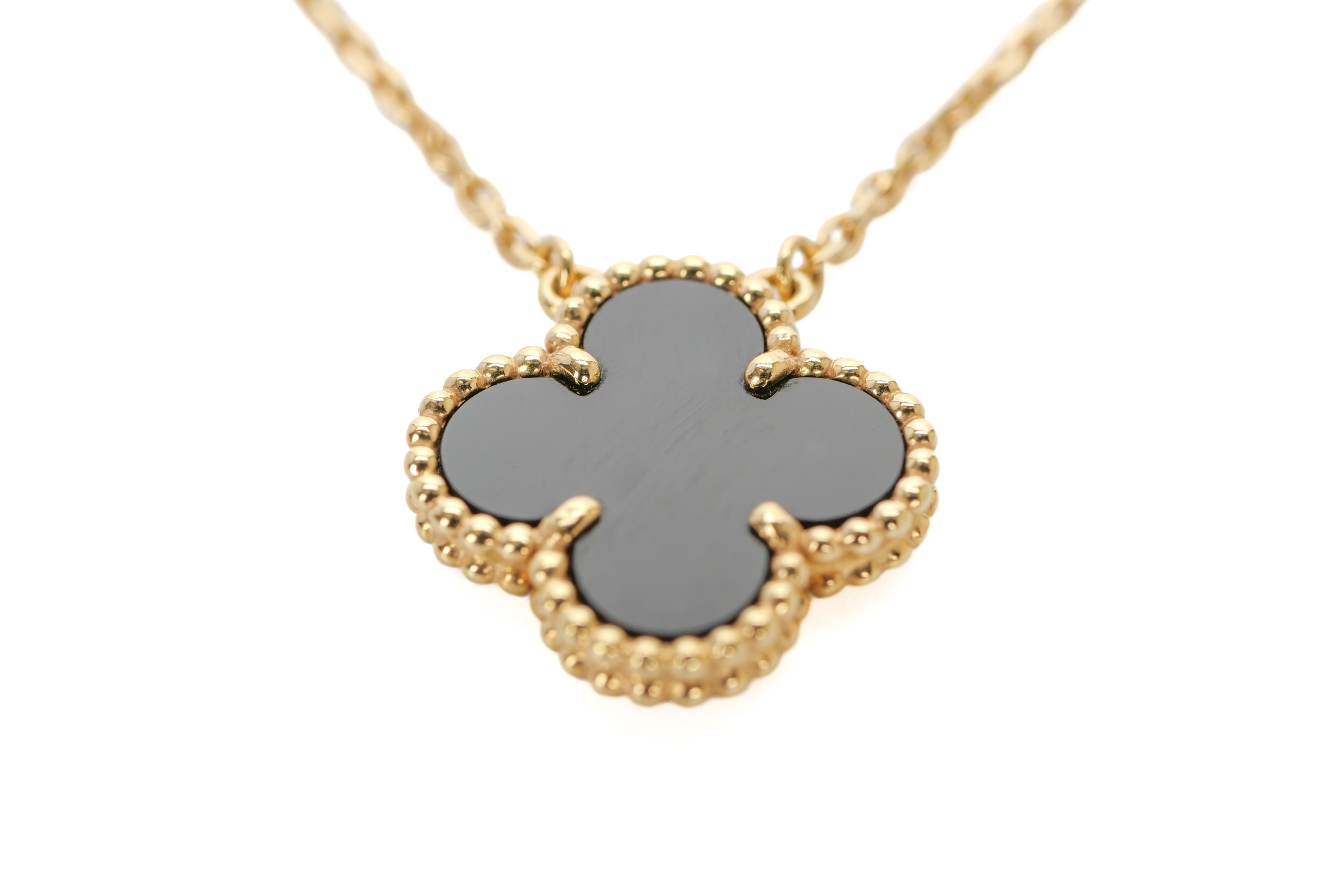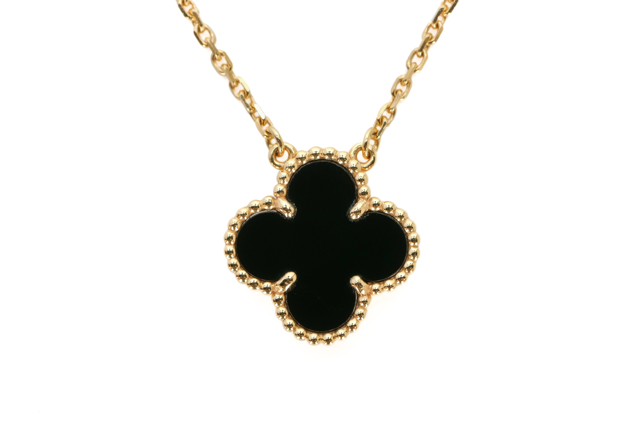 Van Cleef & Arpels Vintage Alhambra Onyx 18ct Yellow Gold Single Pendant / 2021, Excellent Preloved