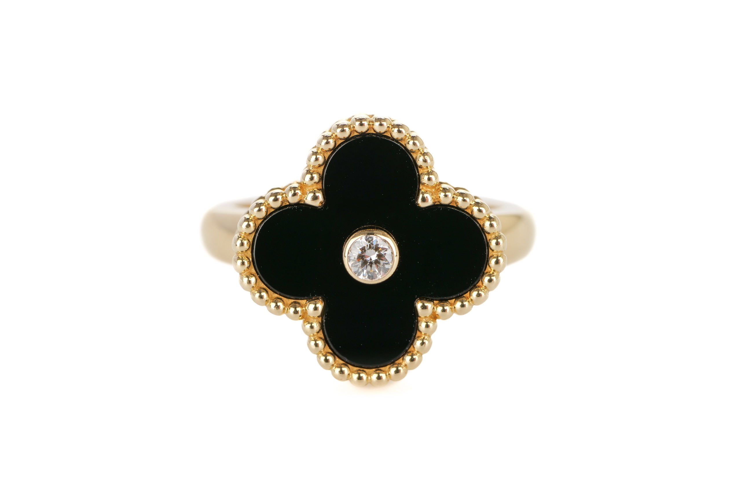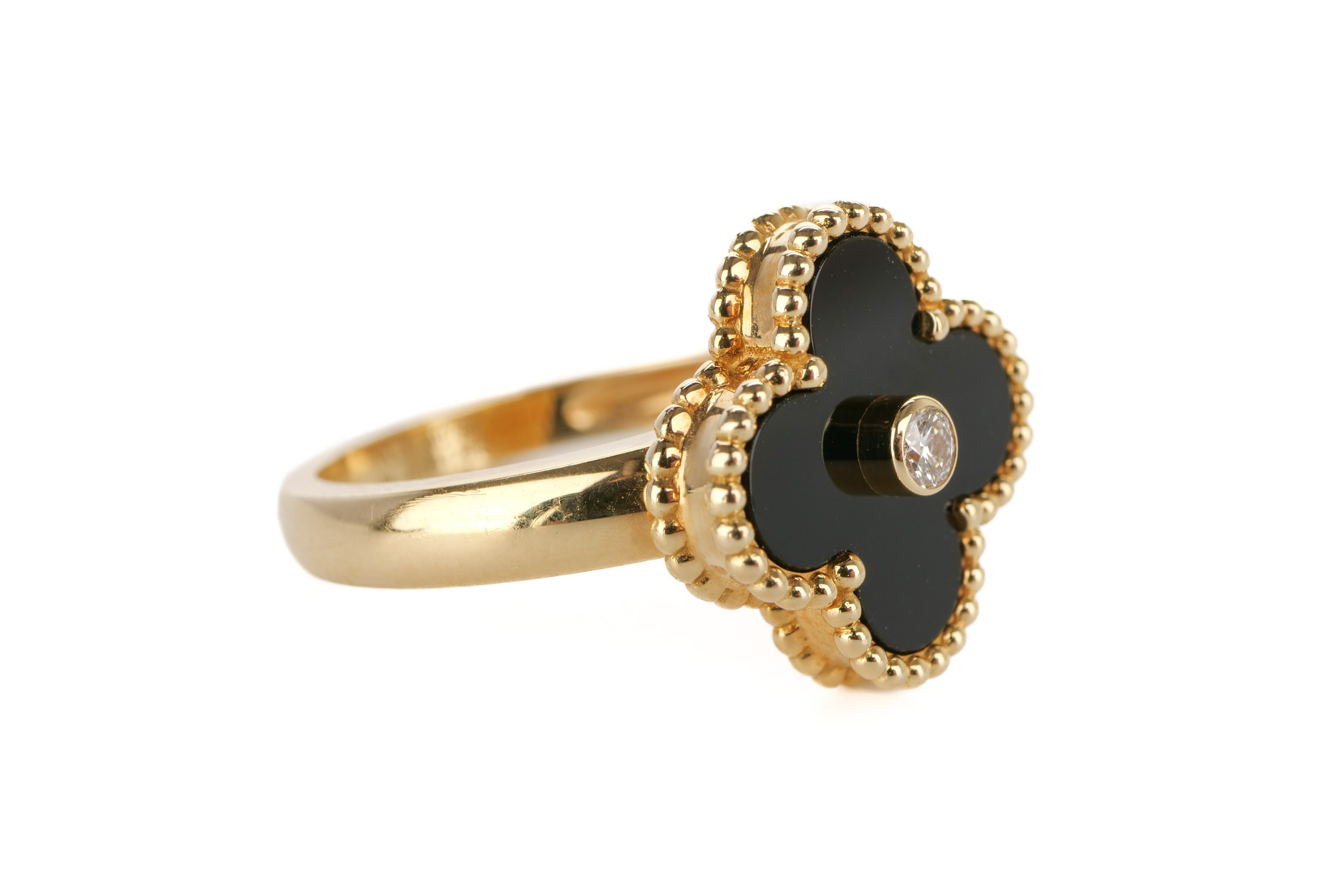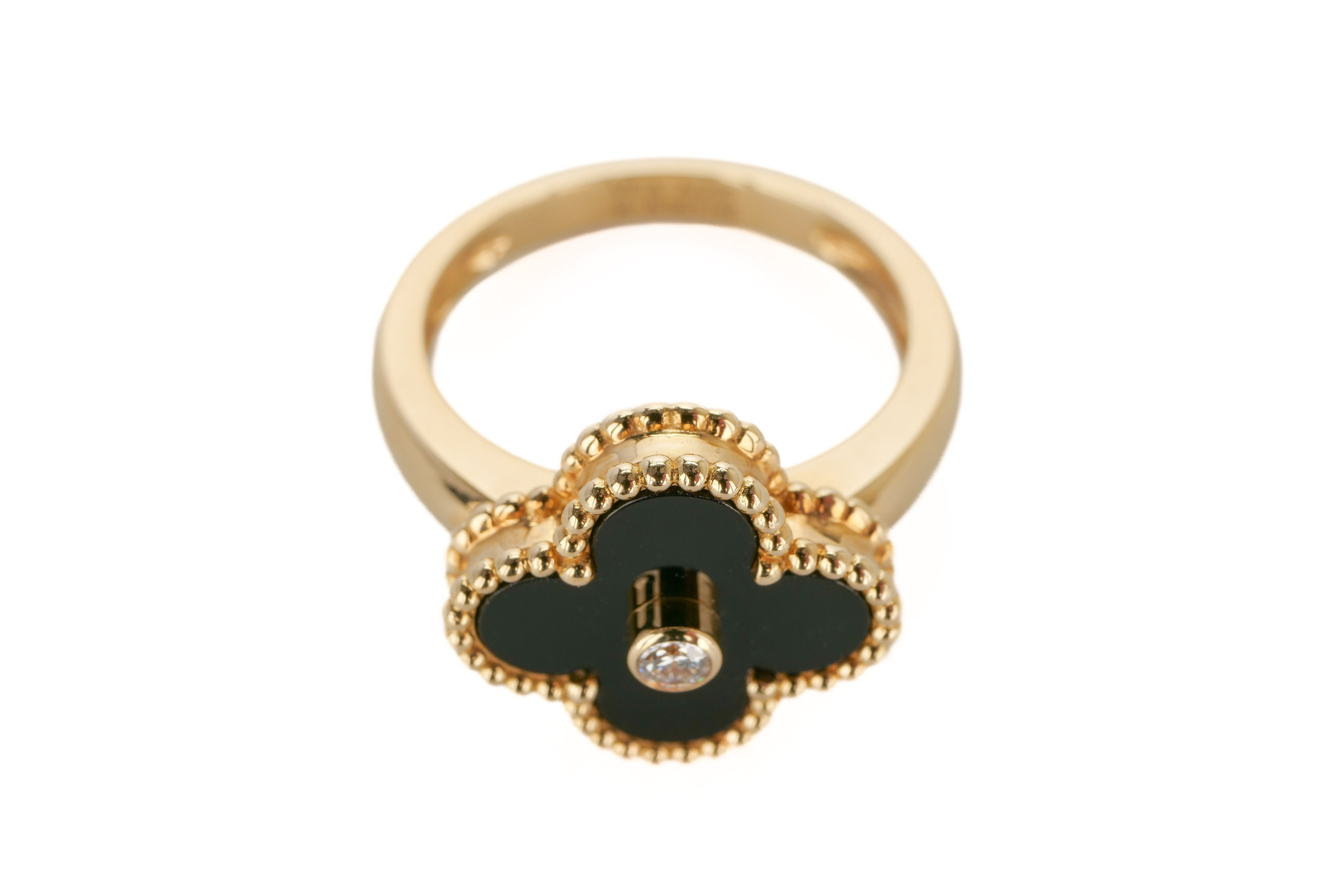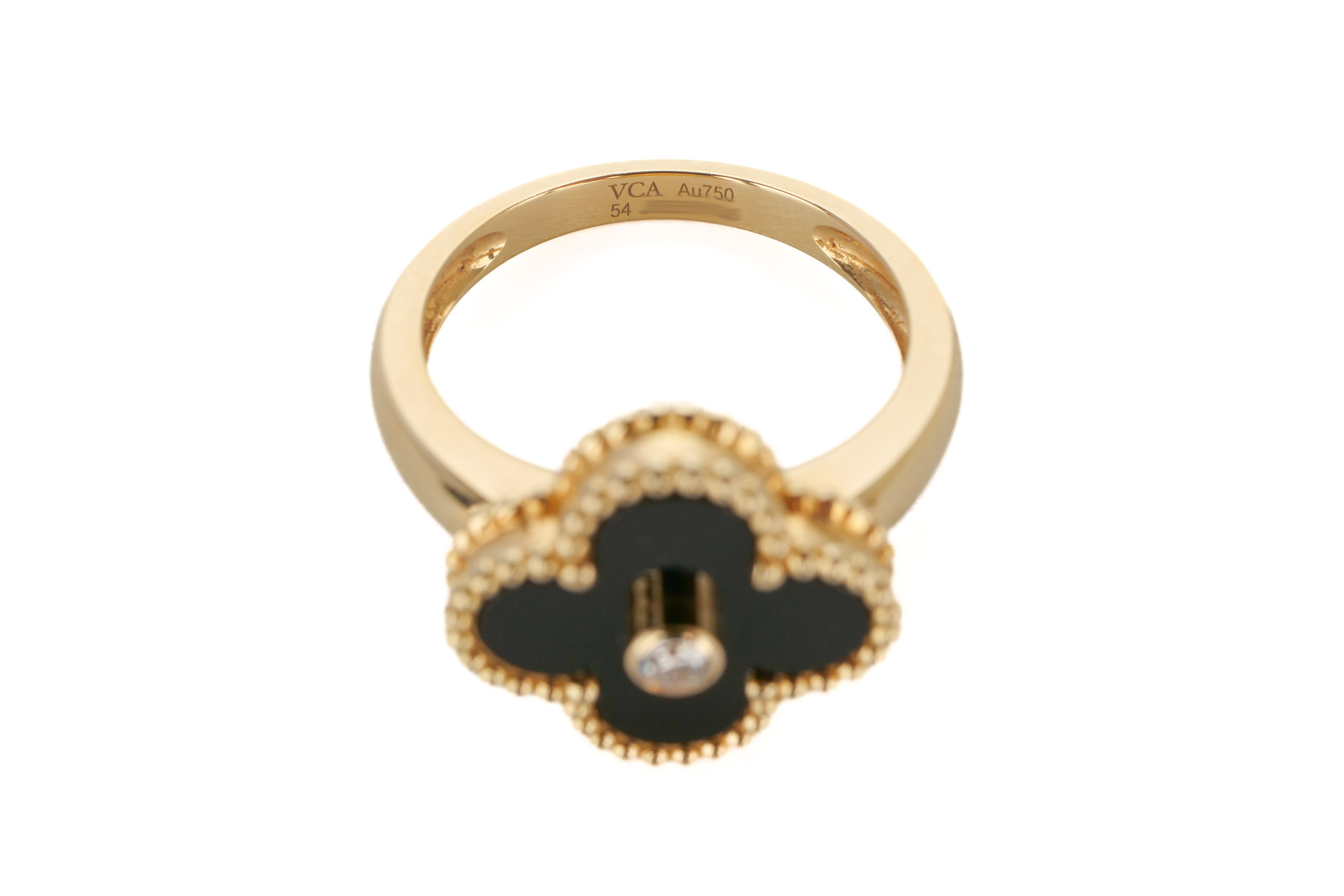 Van Cleef & Arpels Vintage Alhambra Onyx Yellow Gold Ring Size 54 / Preloved