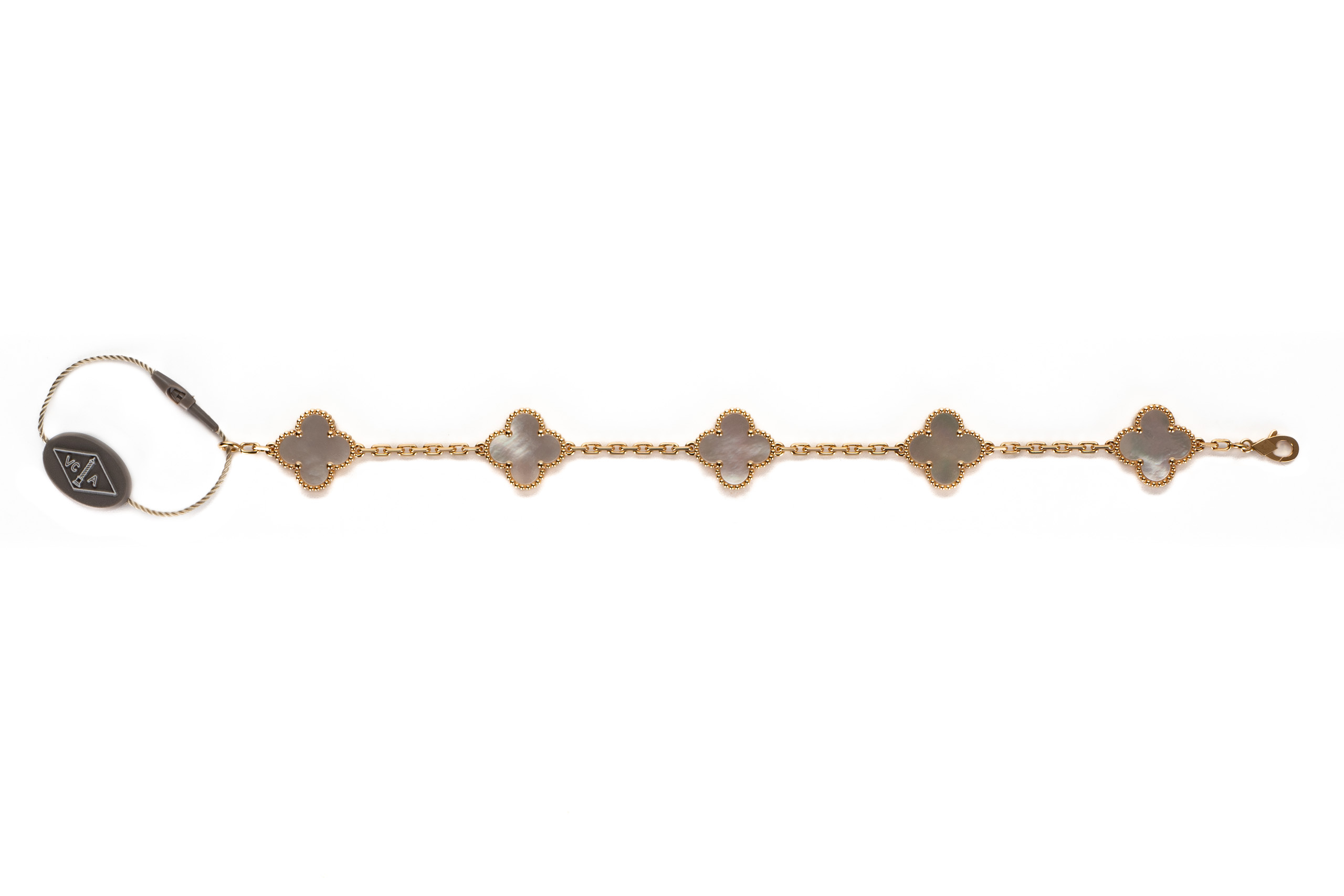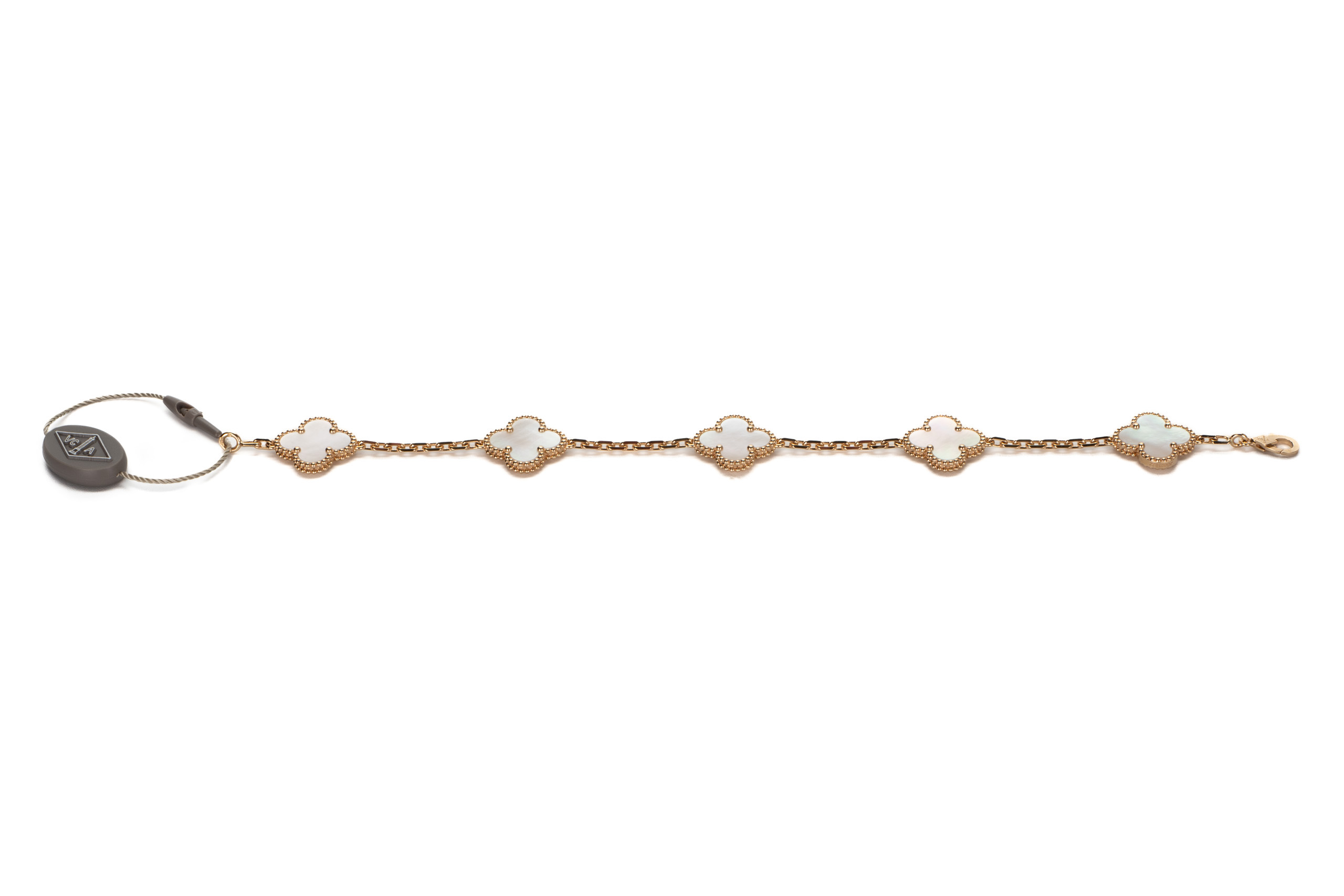 Van Cleef & Arpels Vintage Alhambra Yellow Gold Mother of Pearl 5 Motif Bracelet 2024