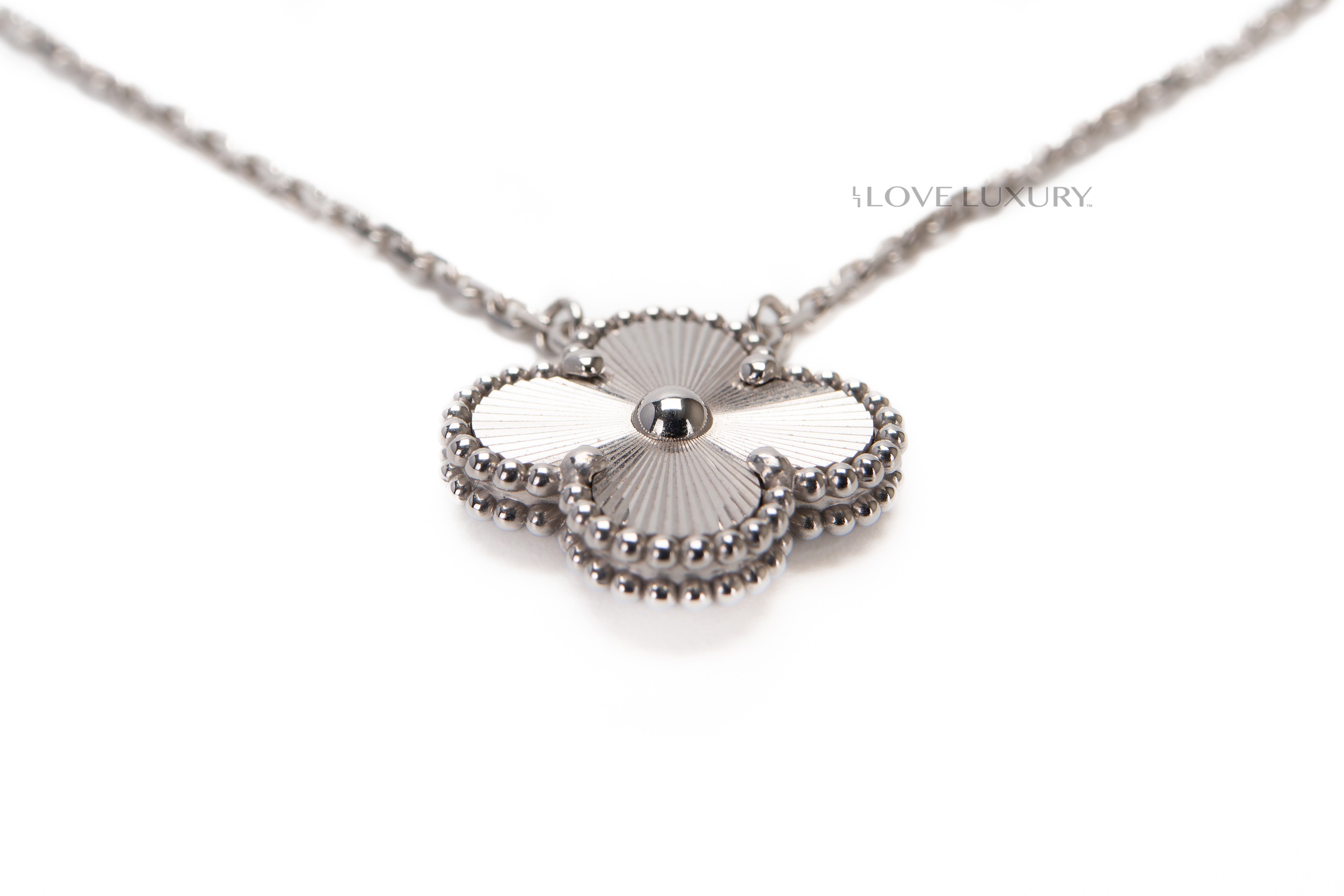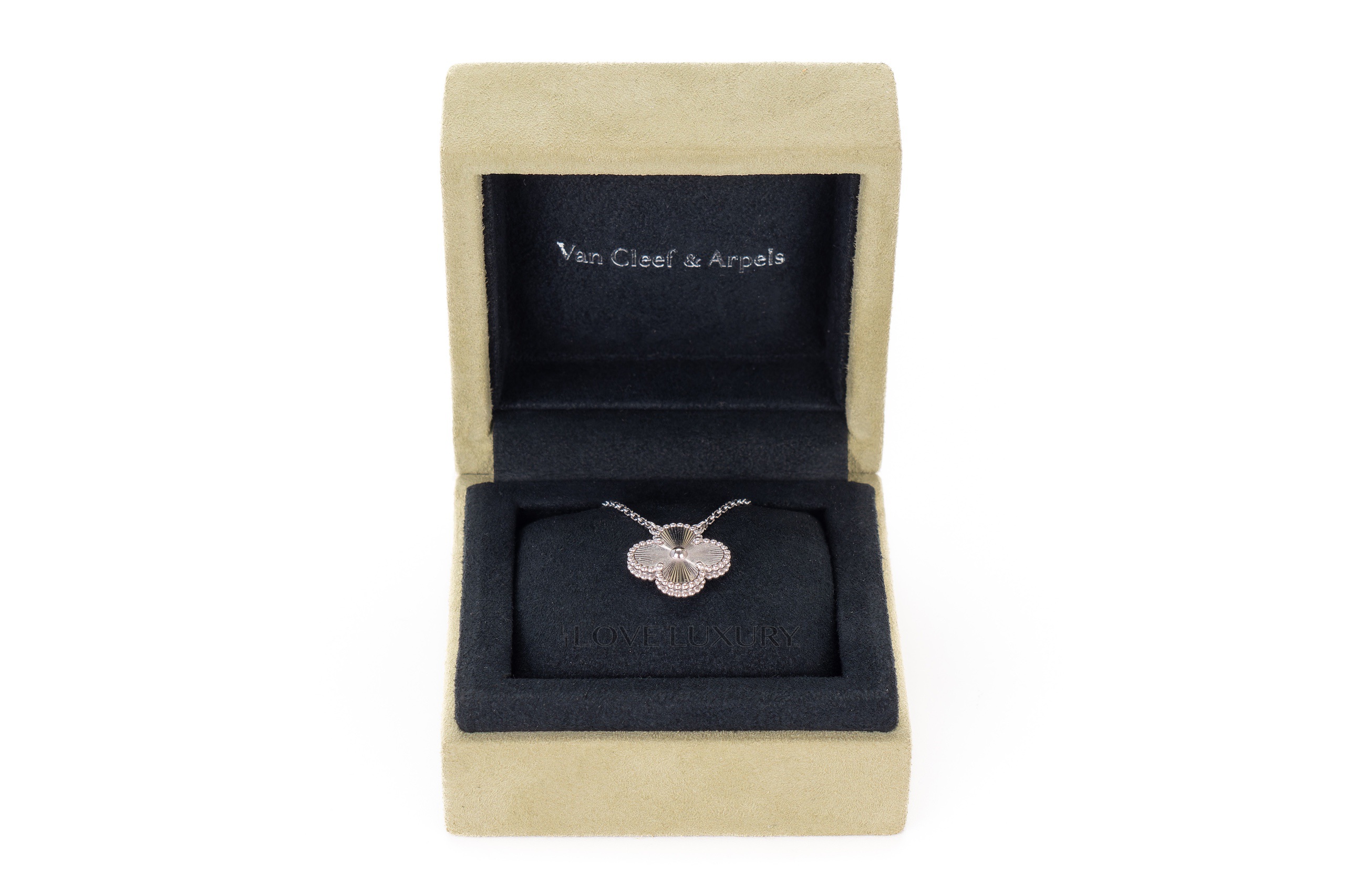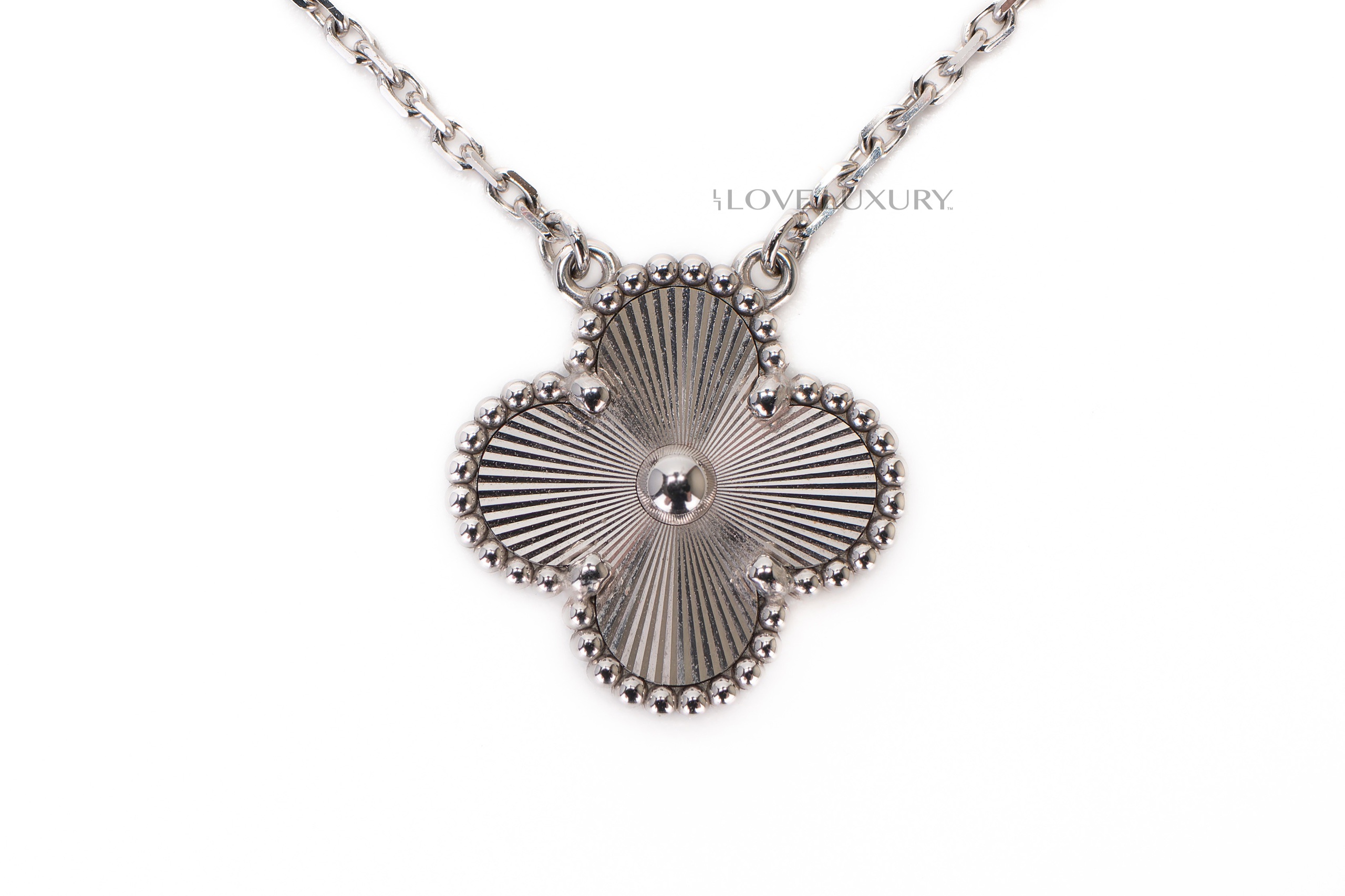 Van Cleef & Arpels White Gold Guilioche Vintage Alhambra Pendant / 2023 Box Fresh Unworn