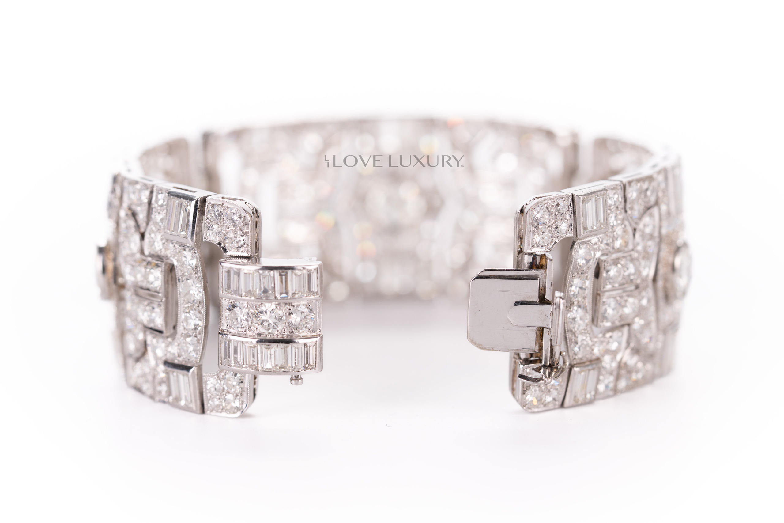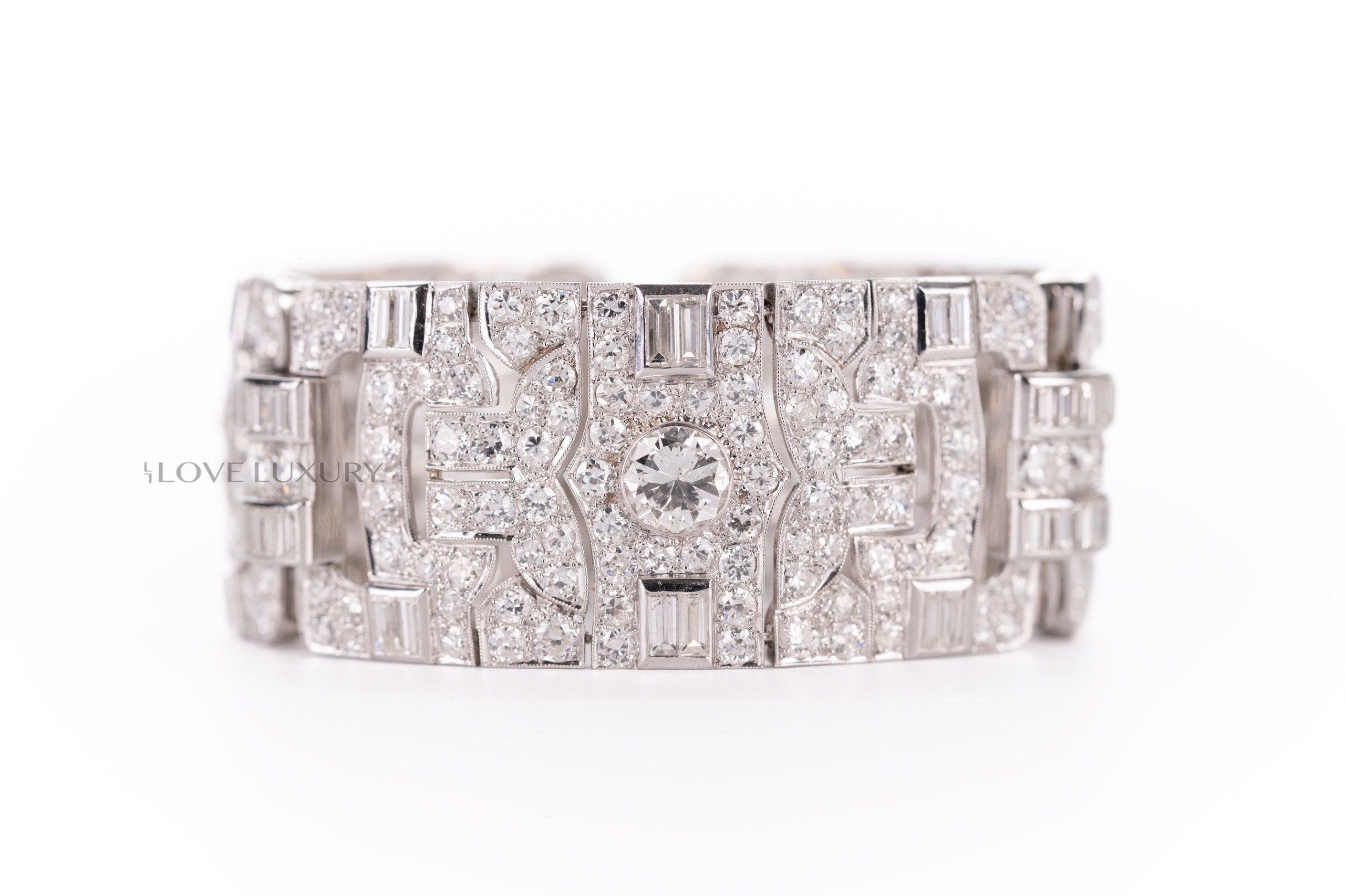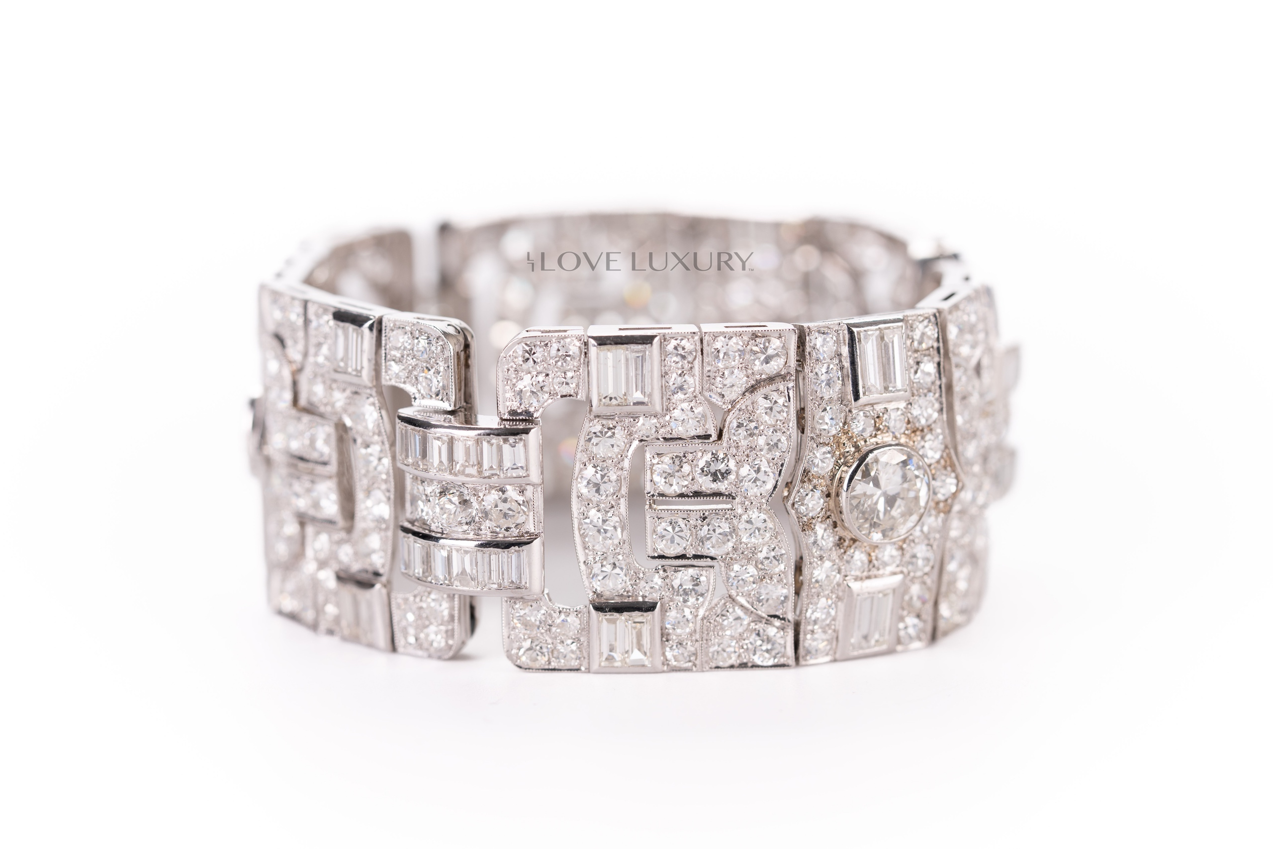 White Gold Bracelet Set with Modified Round & Round Brilliant Cut Center Diamonds & Baugeutte & Taper Baguette Cut & Modified Round & Round Brilliant Cut Diamonds on the side