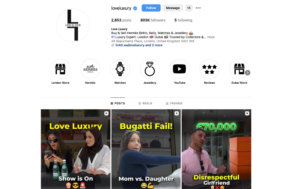WITH 1.4M FOLLOWERS AND MILLIONS OF UNIQUE VIEWS, LOVE LUXURY IS ONE OF THE MOST