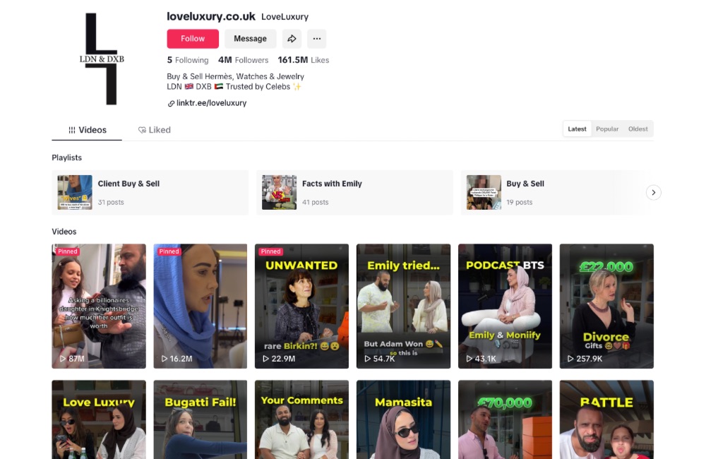Recently, Emily, Adam, and the Love Luxury team have been very active on TikTok, with over 400 million profile views in the past several months. One of our Billionaire Daughter videos even went viral to the tune of 79 million views.