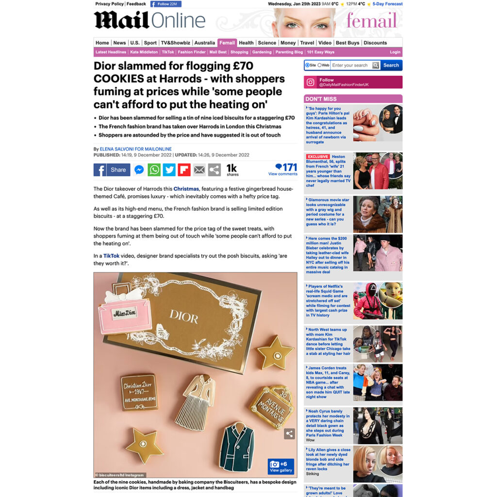 The news media has taken notice of this ascendant growth – the TikTok video we posted about £70 Dior cookies was covered in both the Sun and the Daily Mail. We’re proud of the impact that our videos are having on the local luxury designer goods sector and look forward to making many more for our legion of fans!